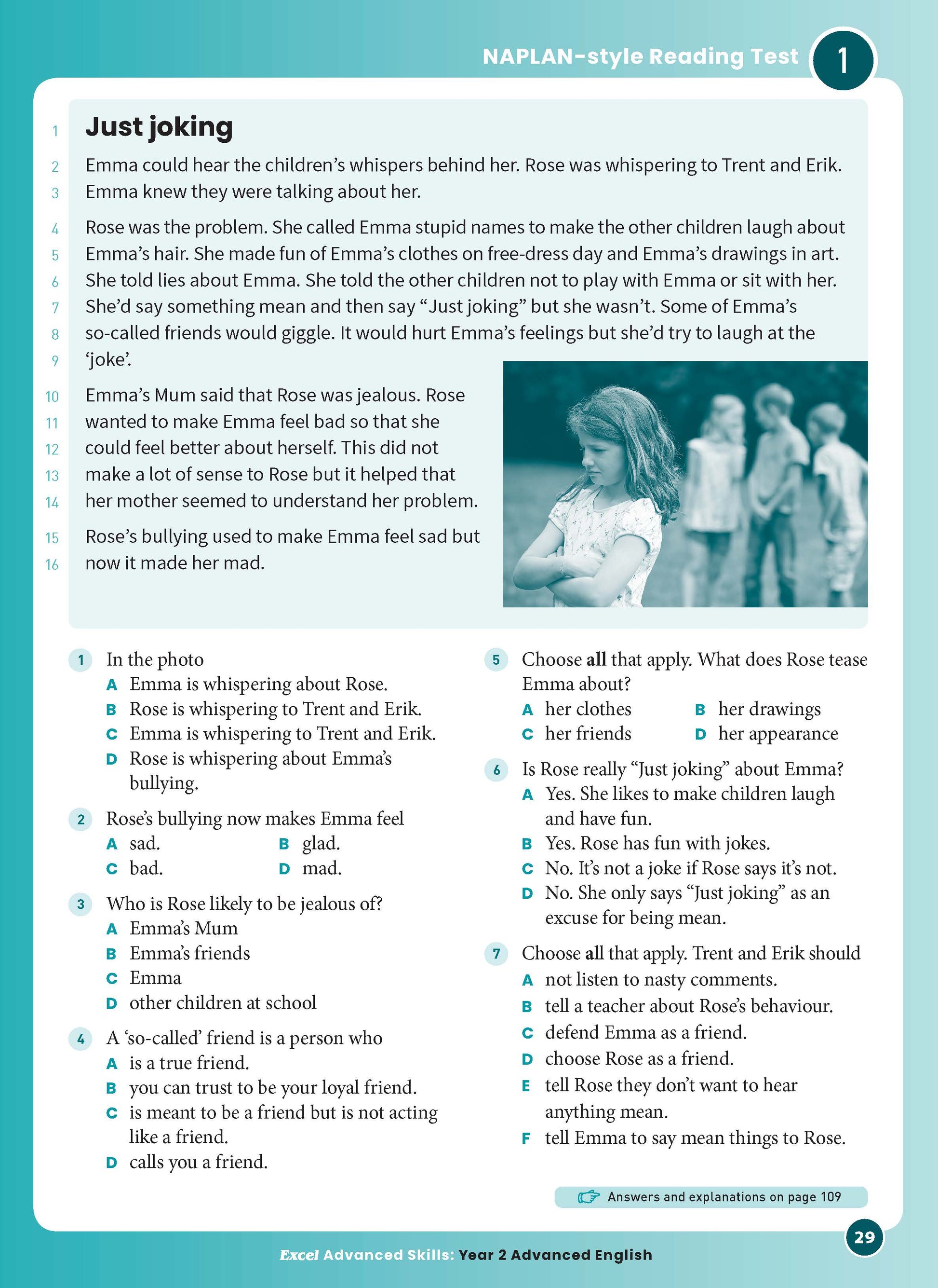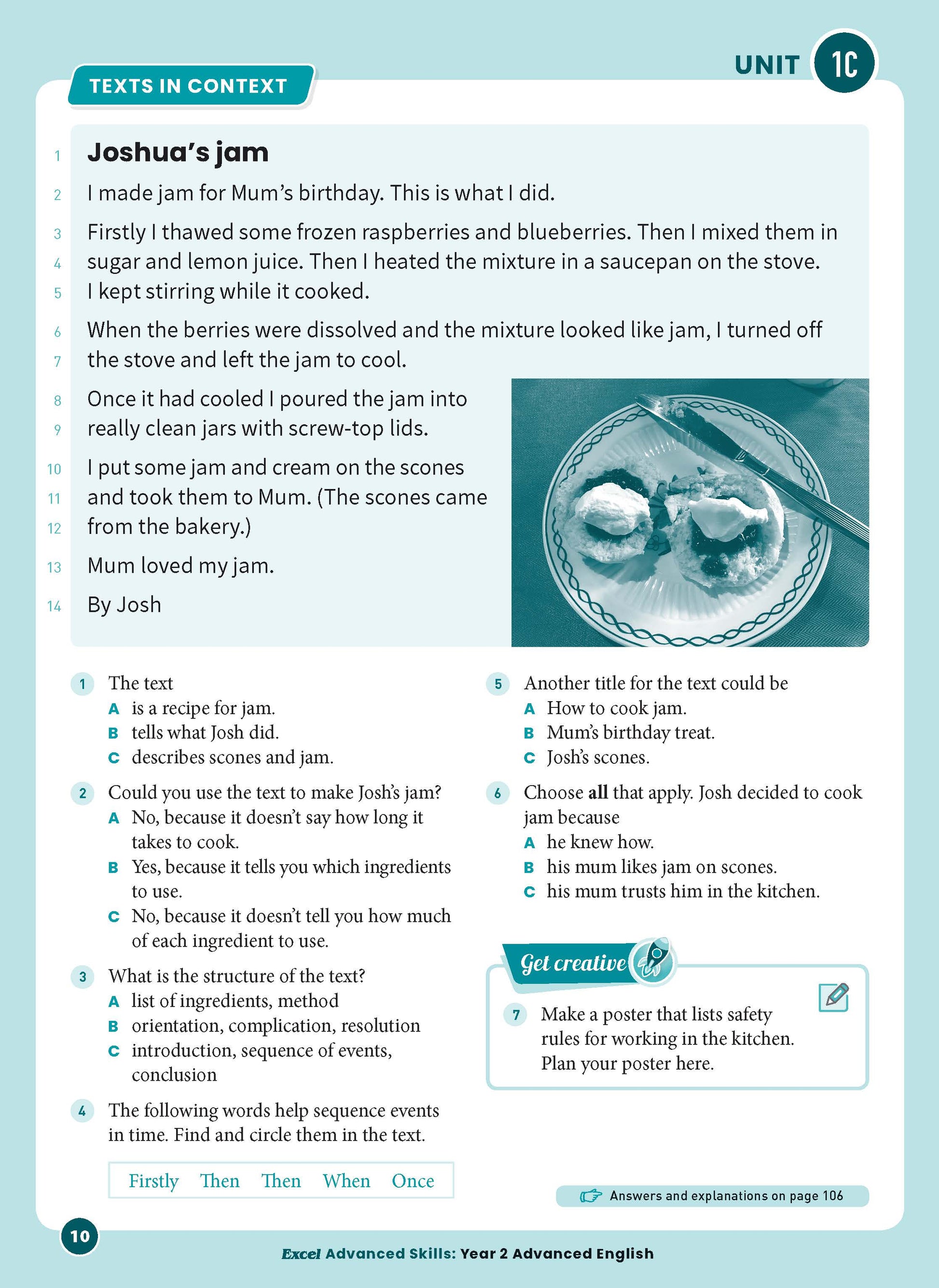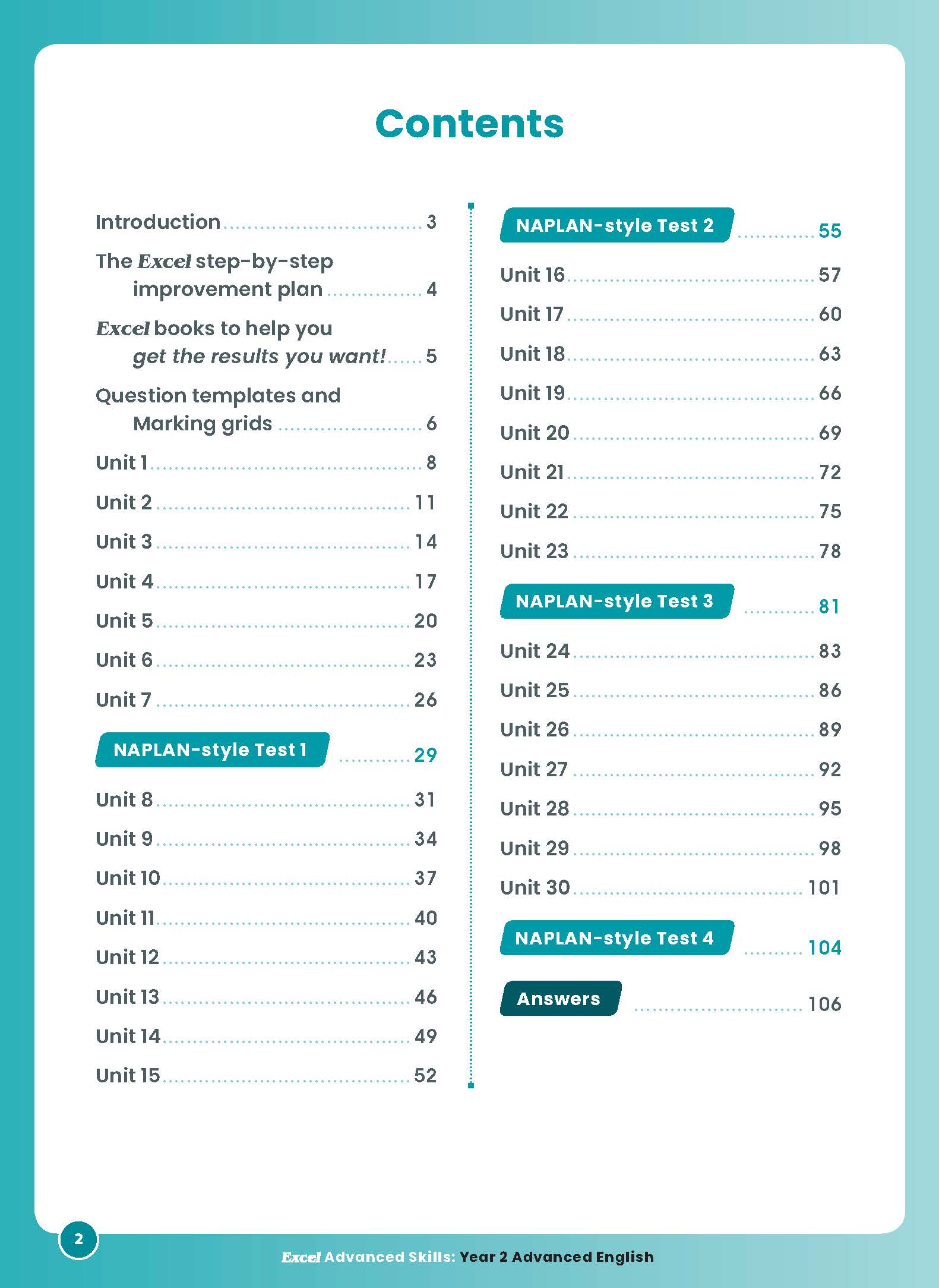 The format of each unit is the same so that students become familiar with the requirements of the questions, which become progressively more difficult as students work through the book. The sequence of units allows for regular practice that will extend the English skills taught in school. Each book in the series supports the requirements of the Australian Curriculum (English) at each year level.