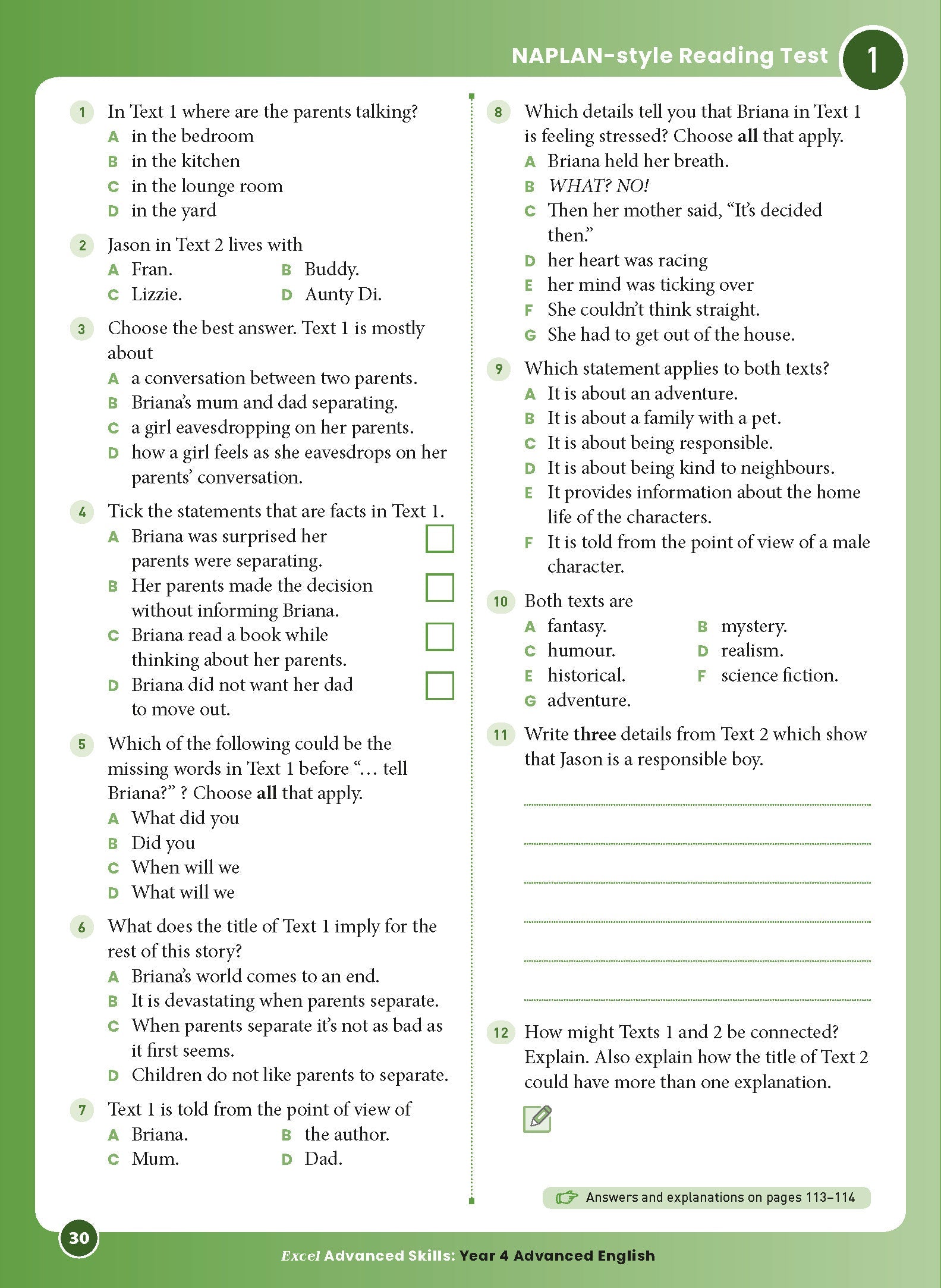 This is easy to use. Broken into six test papers in the different subject fields. Great opportunity for younger students to experience NAPLAN style questioning. Answers are provided and explanations to help improve understanding for future improvement.