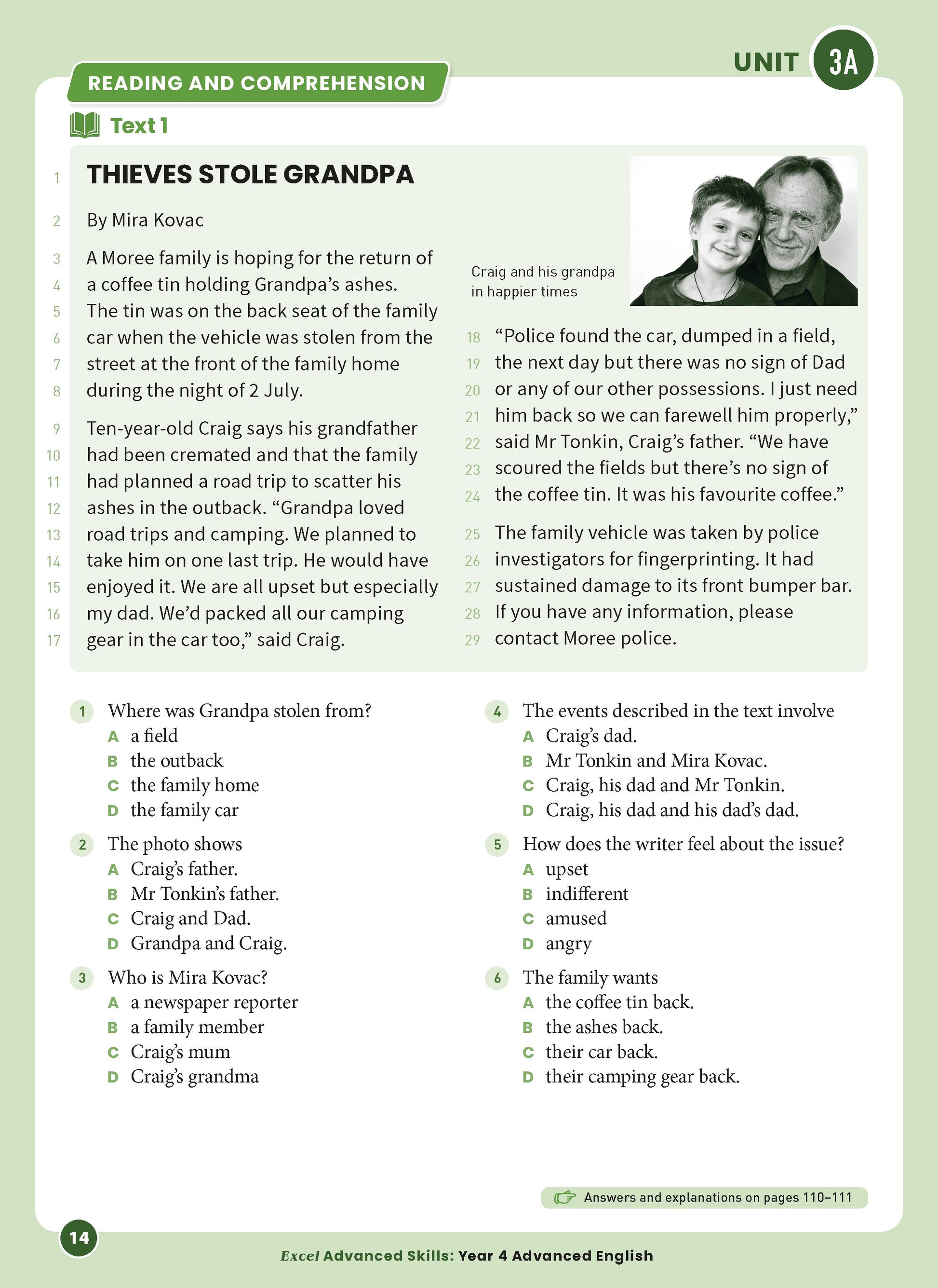 The format of each unit is the same so that students become familiar with the requirements of the questions, which become progressively more difficult as students work through the book. The sequence of units allows for regular practice that will extend the English skills taught in school. Each book in the series supports the requirements of the Australian Curriculum (English) at each year level.