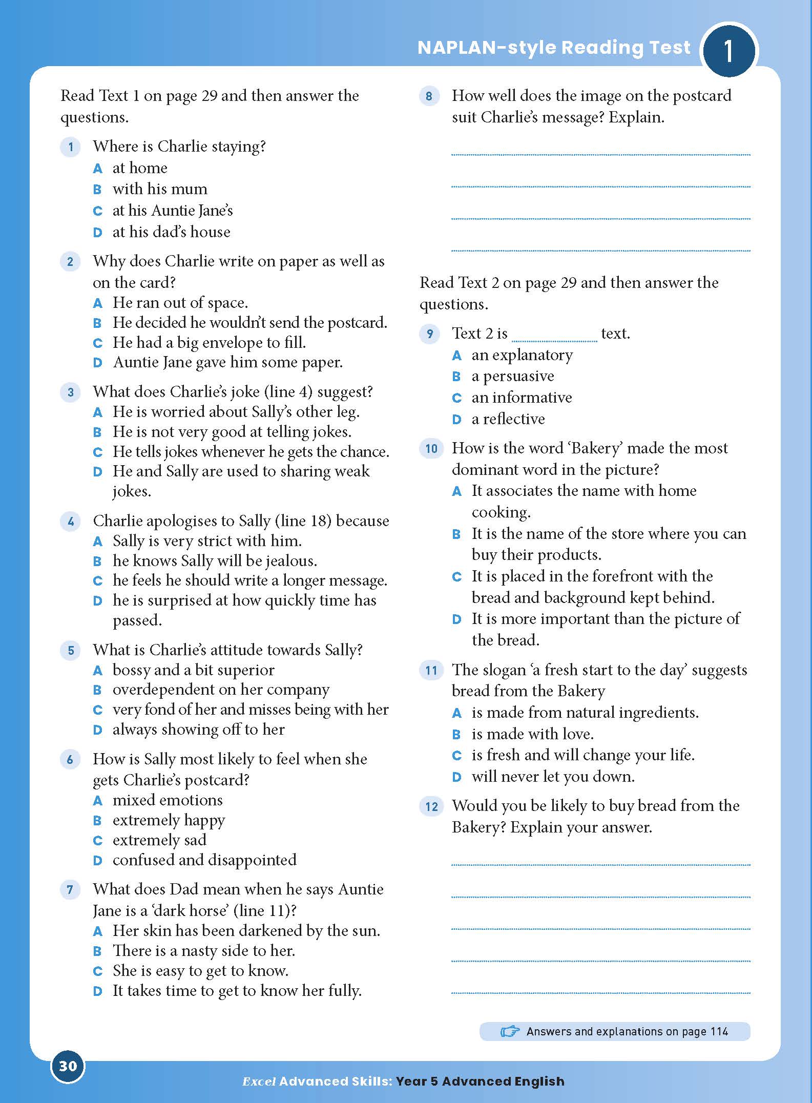 This is easy to use. Broken into six test papers in the different subject fields. Great opportunity for younger students to experience NAPLAN style questioning. Answers are provided and explanations to help improve understanding for future improvement.