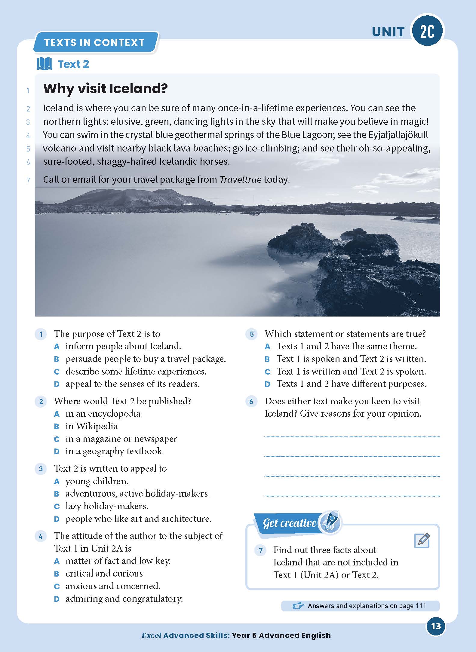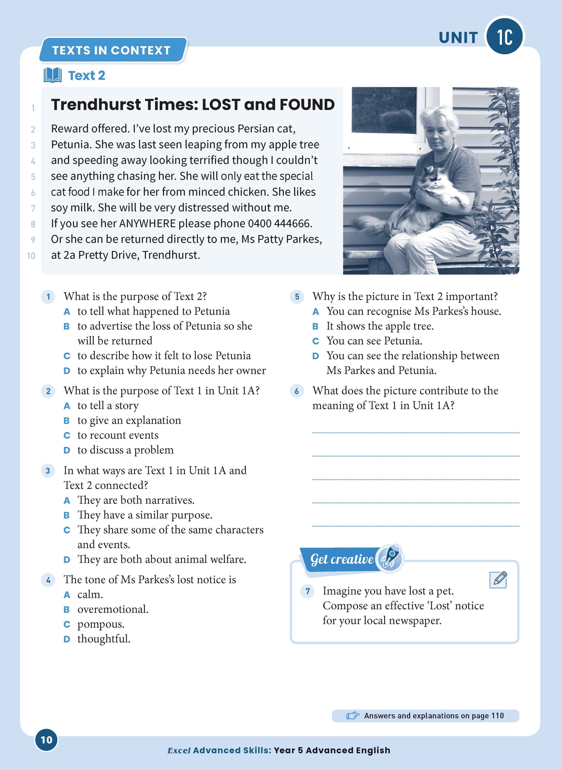 • Texts in context—this extension unit provides a deeper analysis and evaluation of the language choices authors make and the ways that readers make meaning from texts. It focuses on advanced work by comparing purpose and audience, and by examining structural features such as sequencing and paragraphing of texts