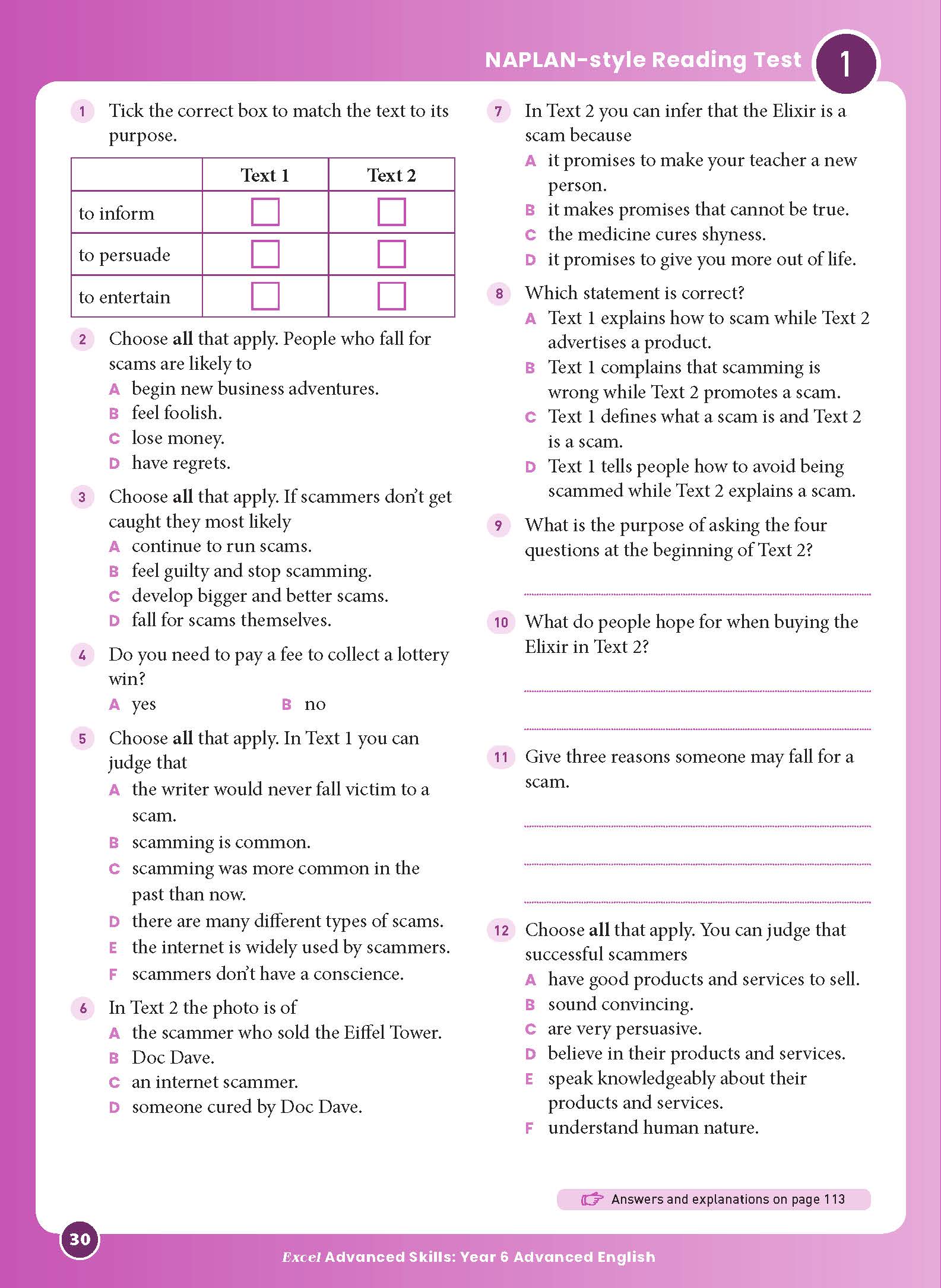 This is easy to use. Broken into six test papers in the different subject fields. Great opportunity for younger students to experience NAPLAN style questioning. Answers are provided and explanations to help improve understanding for future improvement.