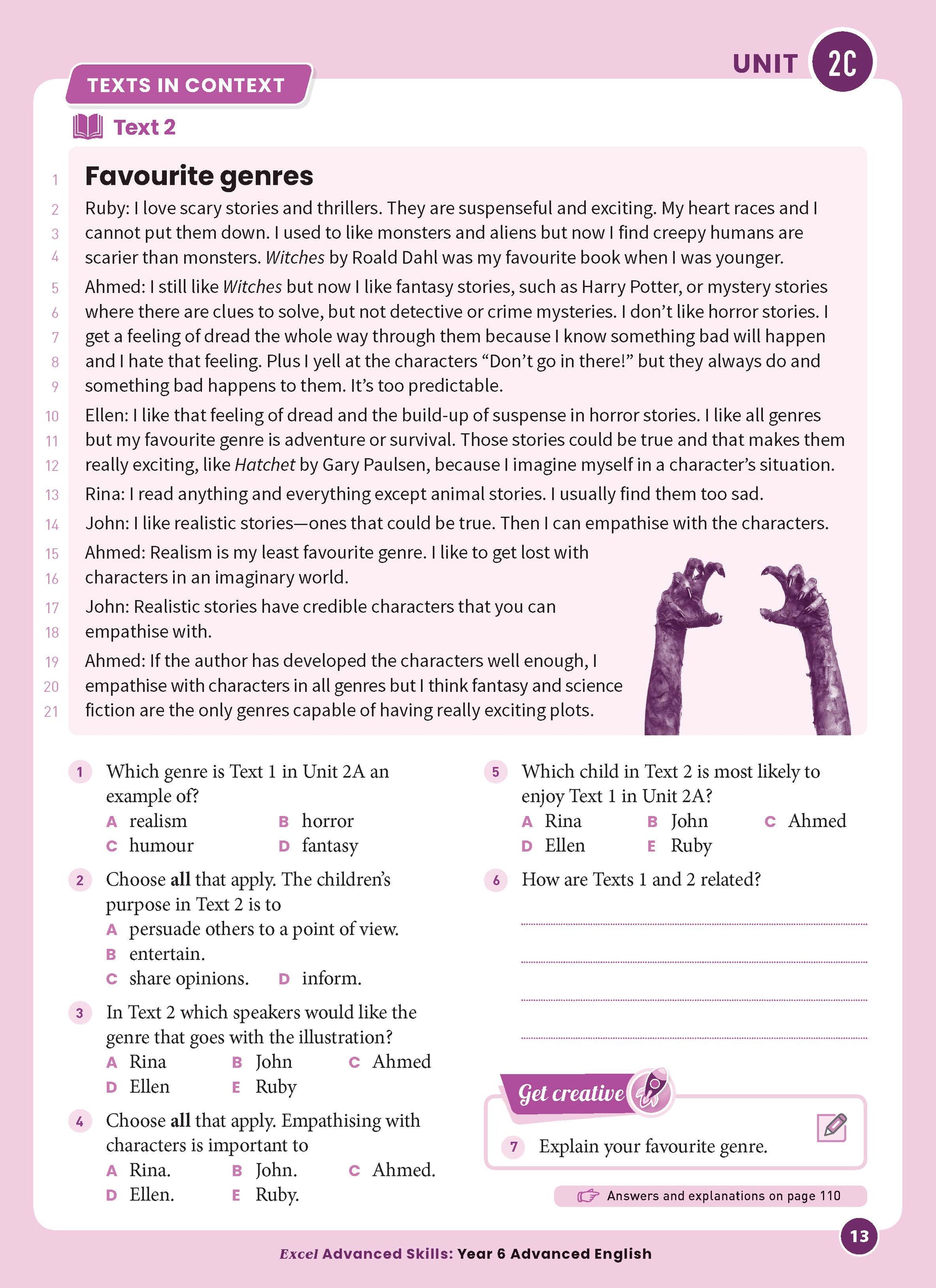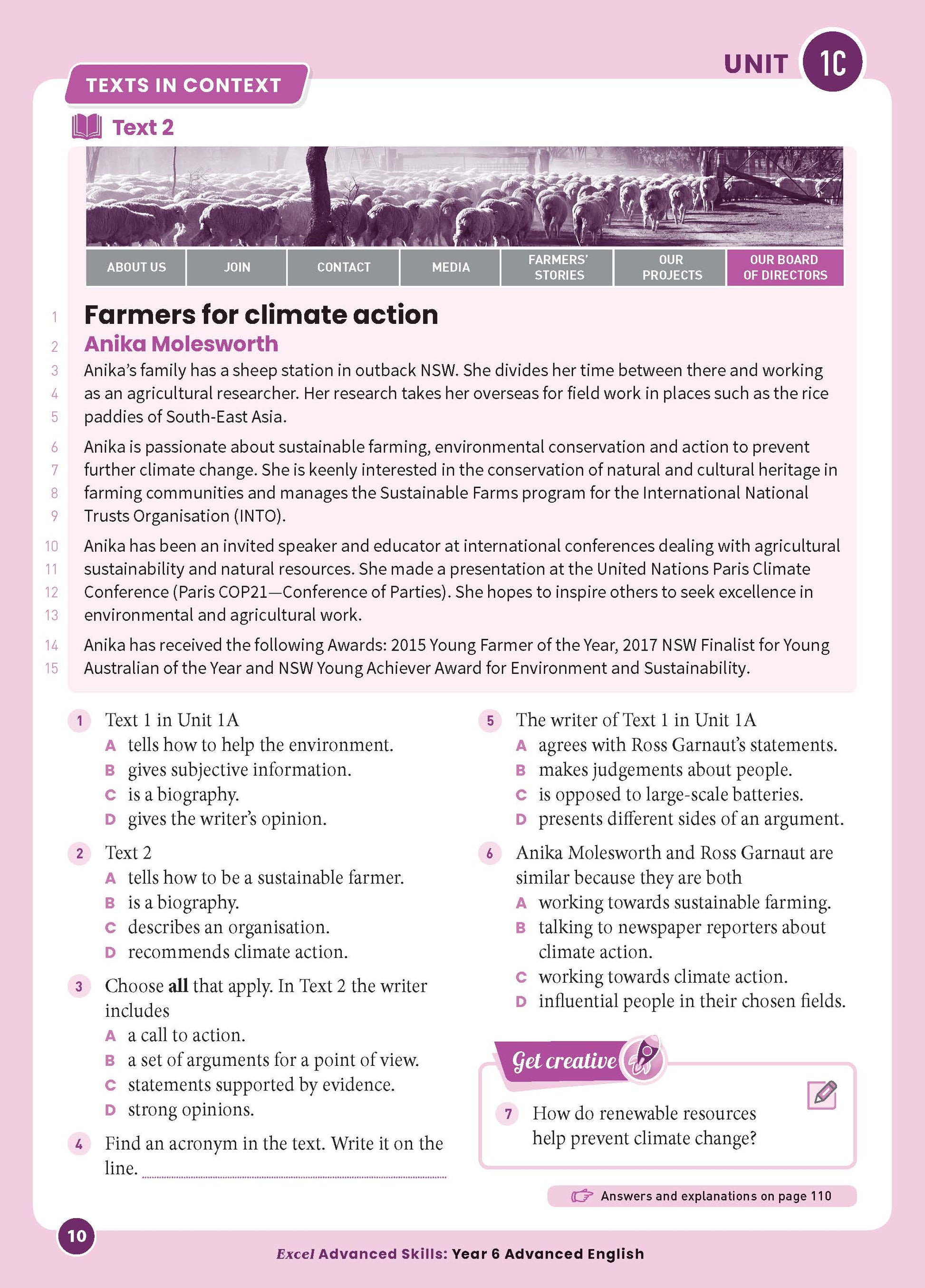 • Texts in context—this extension unit provides a deeper analysis and evaluation of the language choices authors make and the ways that readers make meaning from texts. It focuses on advanced work by comparing purpose and audience, and by examining structural features such as sequencing and paragraphing of texts