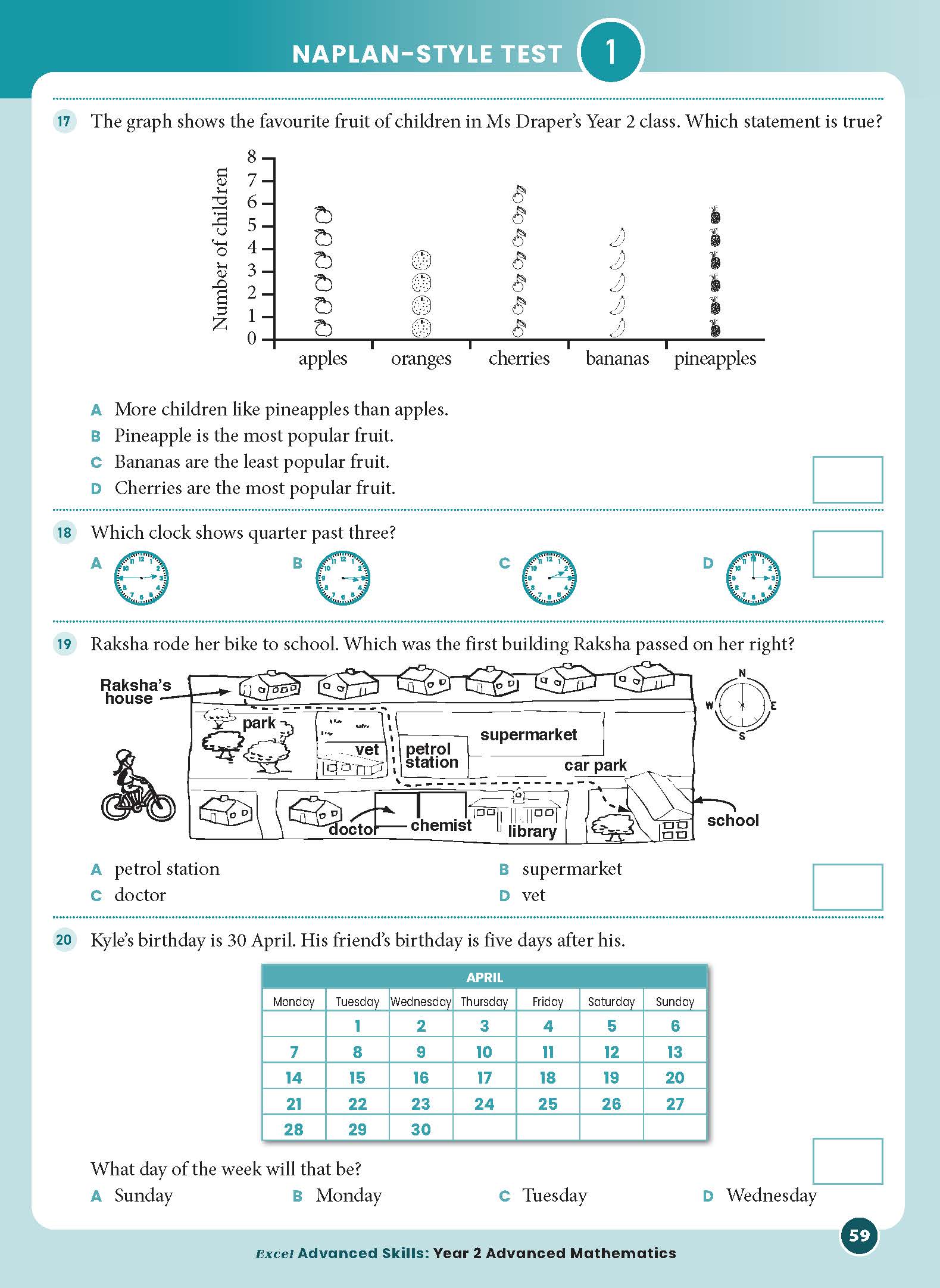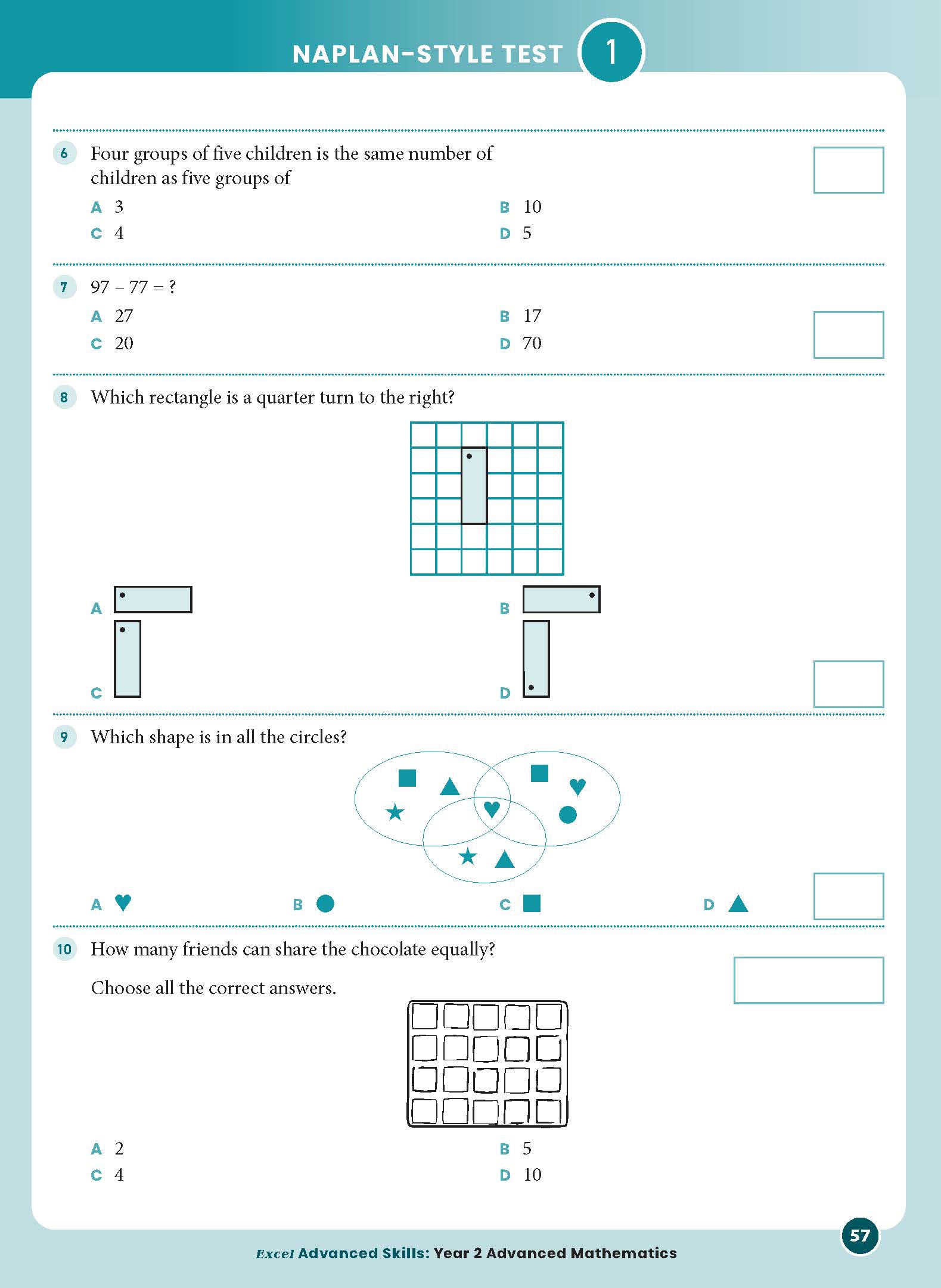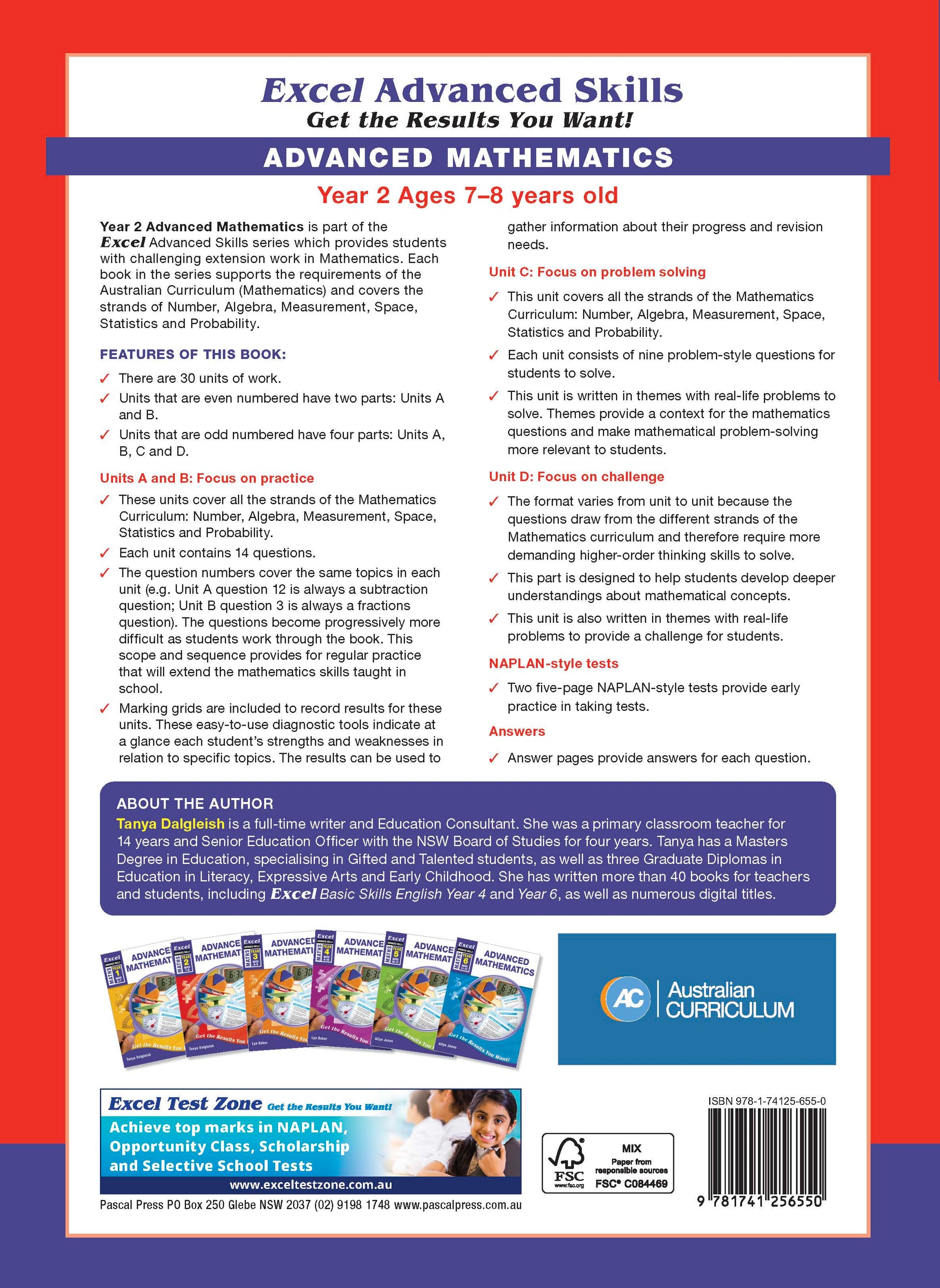 Year 2 Advanced mathematics is part of the Excel Advanced Skills series which provides students with challenging extension work in Mathematics. Each book in the series supports the requirements of the Australian Curriculum (Mathematics) and covers the Strands of Number and Algebra, Measurement and Geometry, and Statistics and Probability.