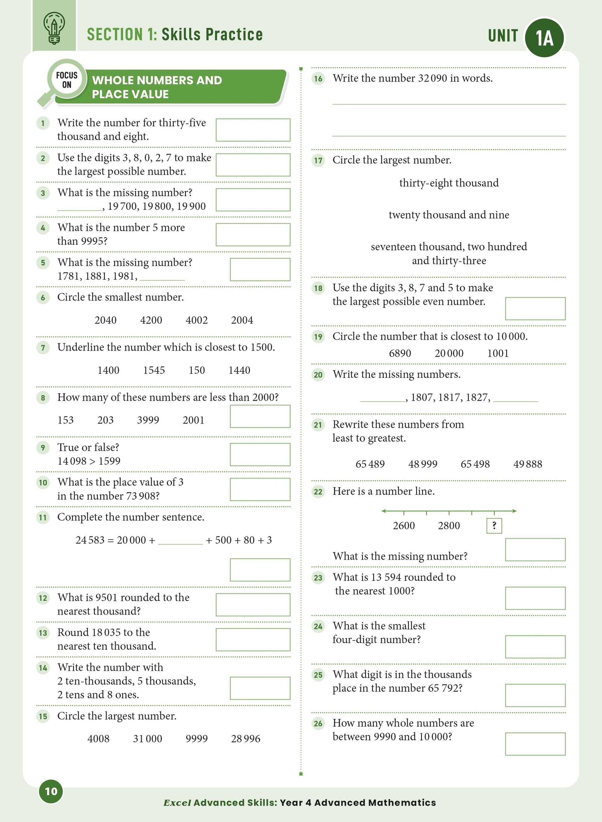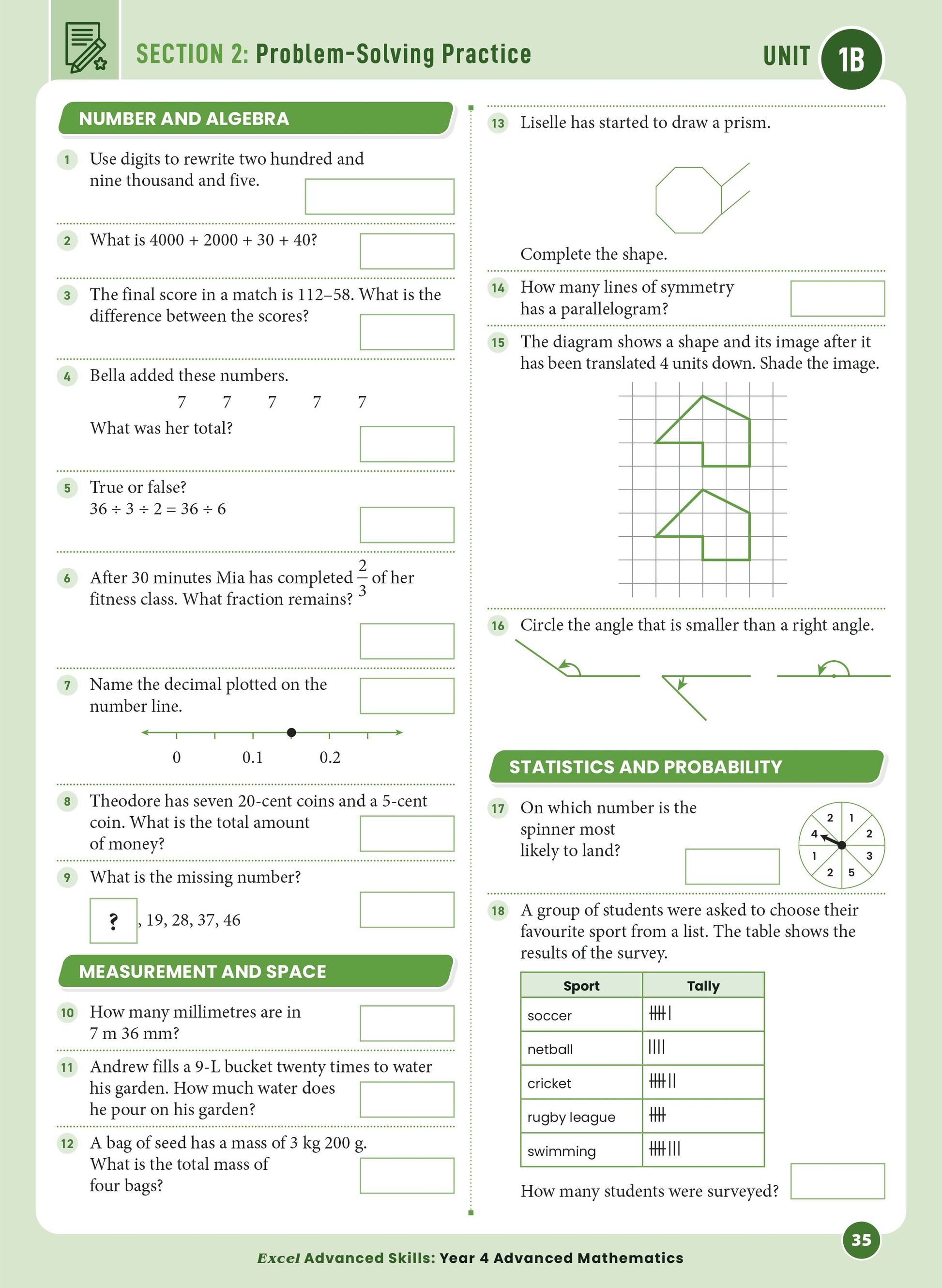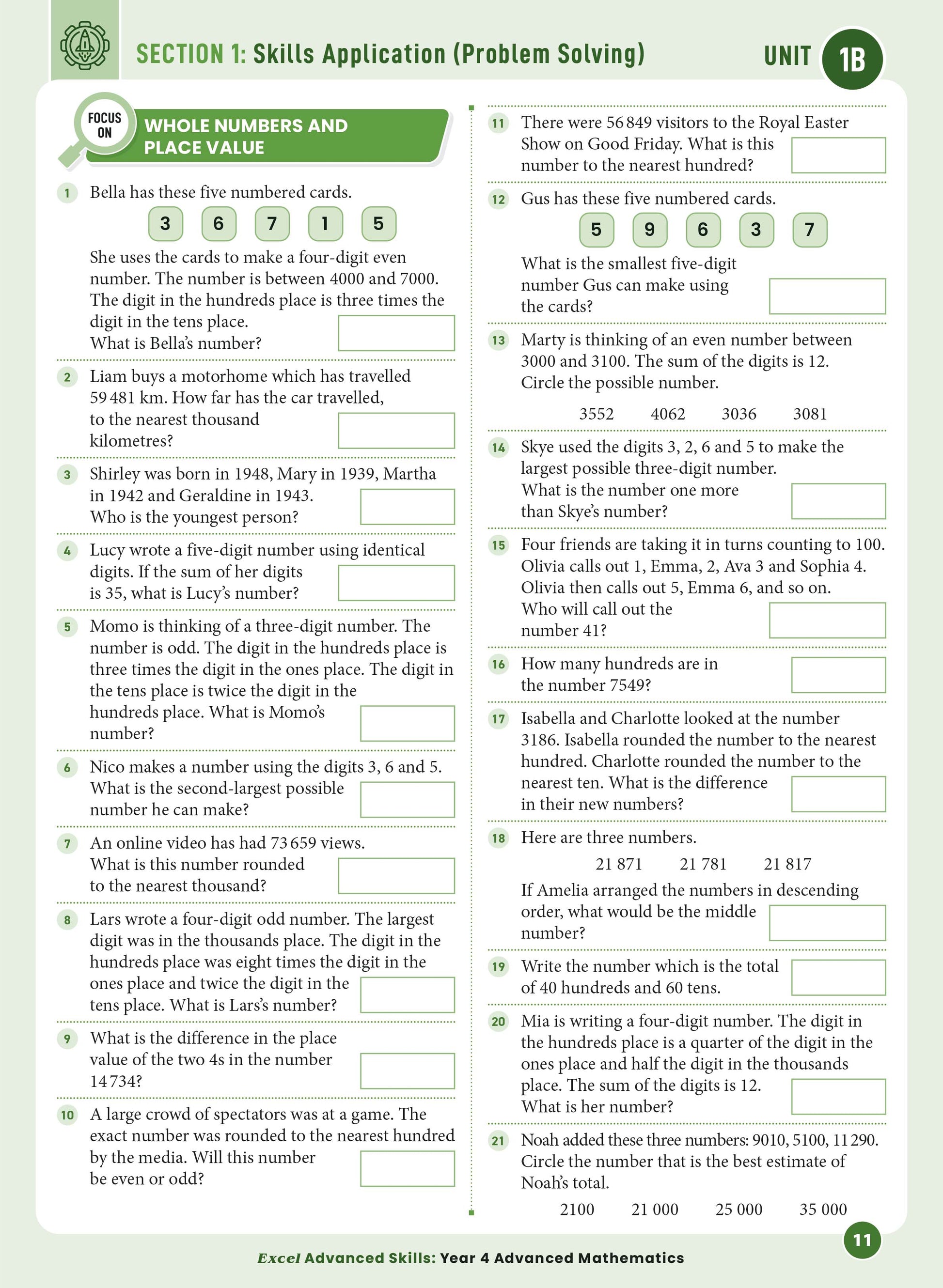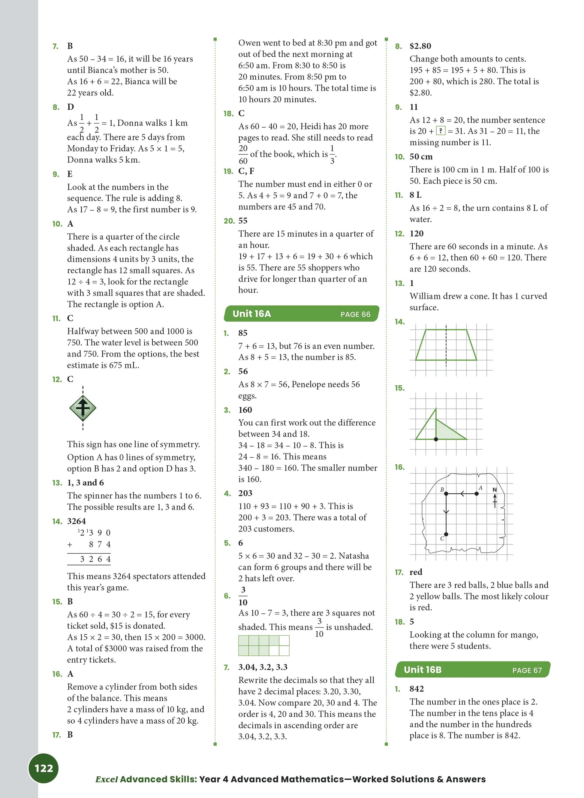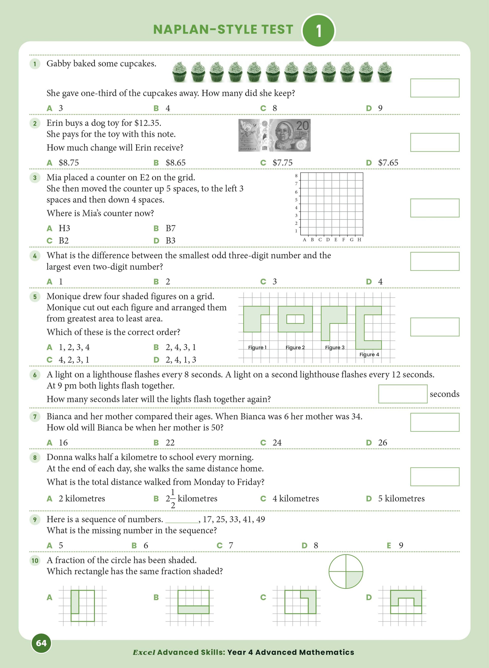 Year 4 Advanced mathematics is part of the Excel Advanced Skills series which provides students with challenging extension work in Mathematics. Each book in the series supports the requirements of the Australian Curriculum (Mathematics) and covers the Strands of Number and Algebra, Measurement, Space, Statistics and Probability.