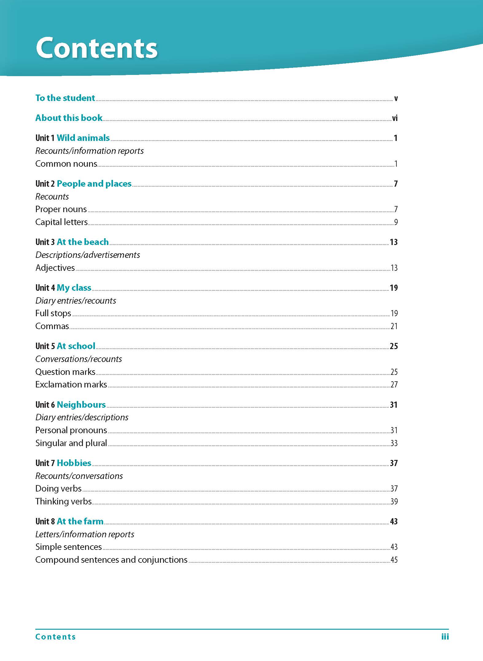 The Excel series of Spelling and Vocabulary Workbooks for Years 1–6 will help primary school students improve their spelling and vocabulary in English and in other subjects. There are 15 self-contained units of work, each with a different theme. Each unit has a different theme and focuses on a set of work dealing with words: what they mean and how to spell them. All activities are designed to encourage students to think about and enjoy language, and to give them meaningful practice in using it.