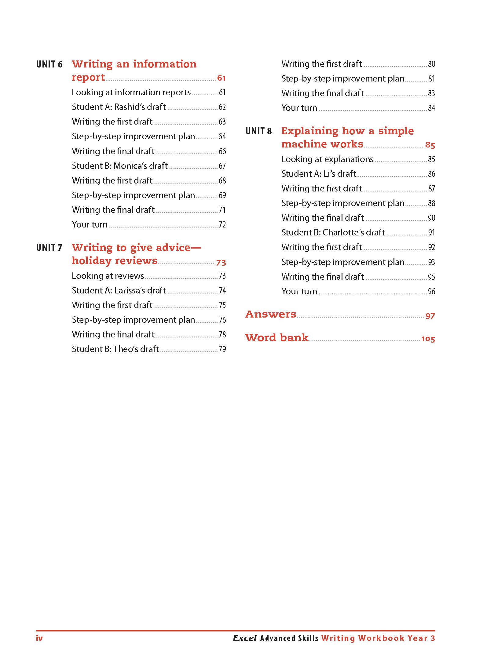 The Excel Advanced Skills - Writing Workbook contains 30 carefully graded, self-contained units of teaching and learning activities. The book includes questions on spelling, vocabulary, grammar punctuation, reading and comprehension, and has a focus on higher-level inferring and evaluative questions that will challenge students to think critically. There are also 4 NAPLAN-style tests included.