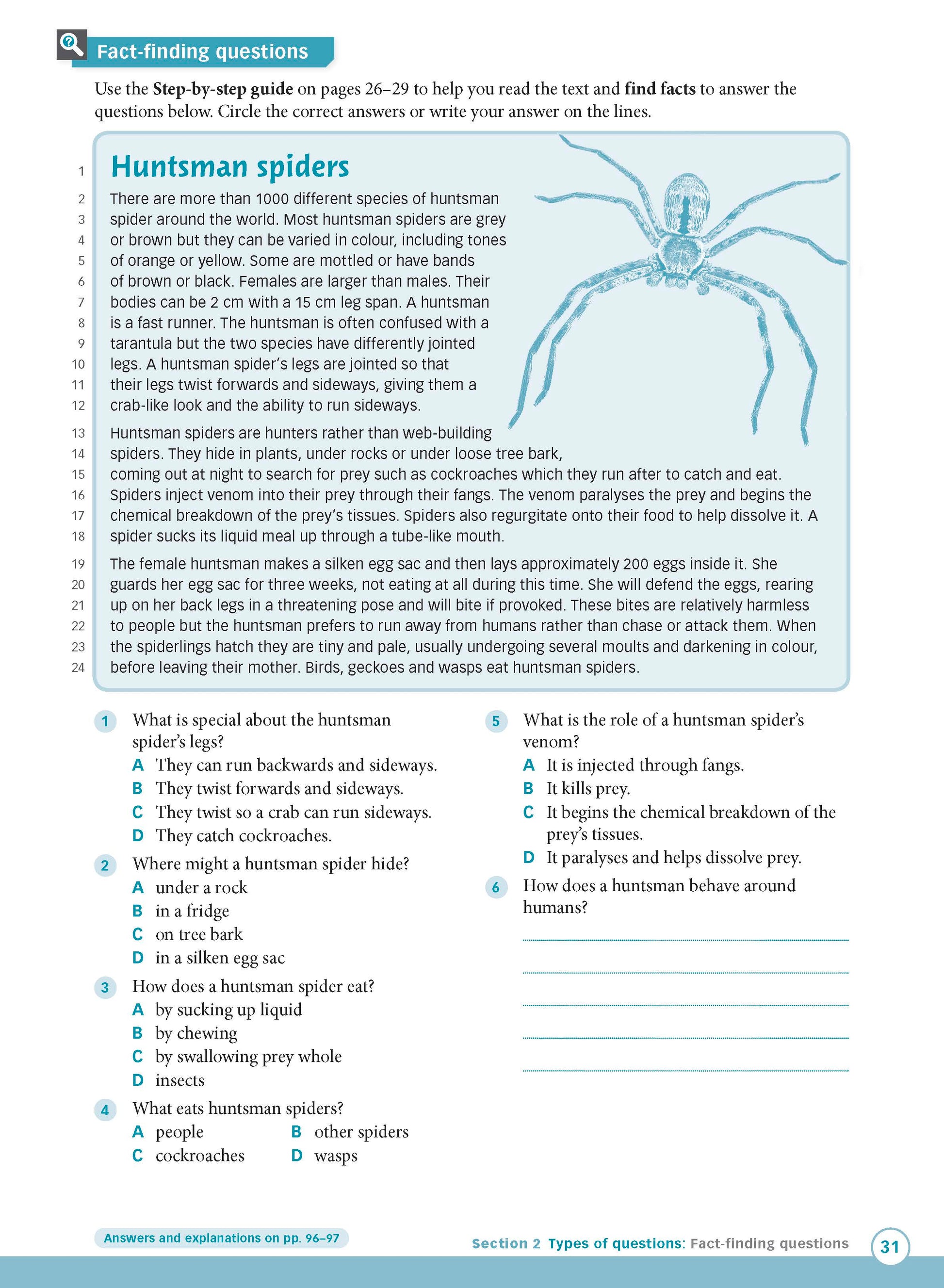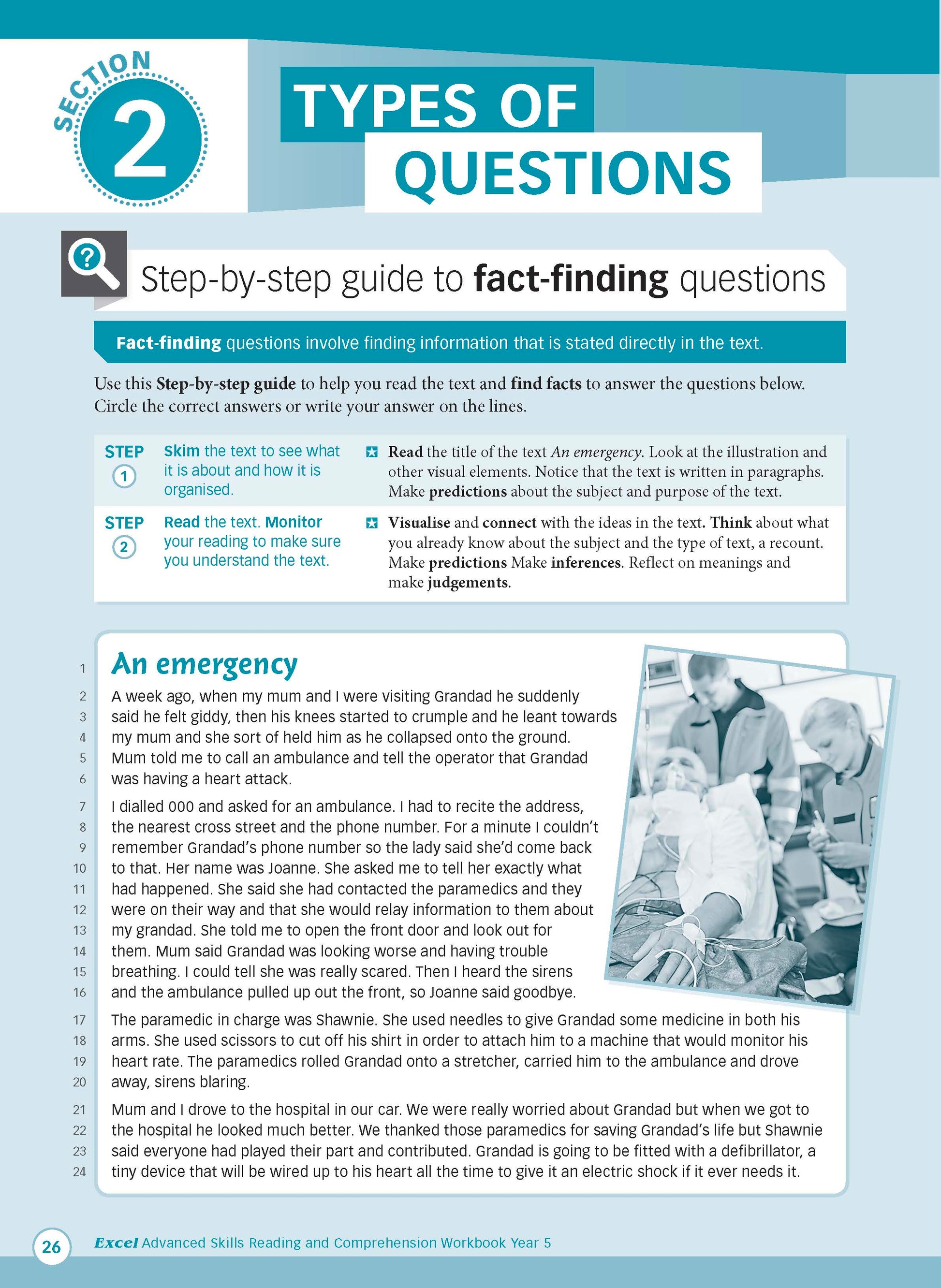 The second part of the book shows students how to answer the five types of comprehension questions they are likely to encounter during their primary school years: fact-finding, synthesis, inferring, language and judgement questions.