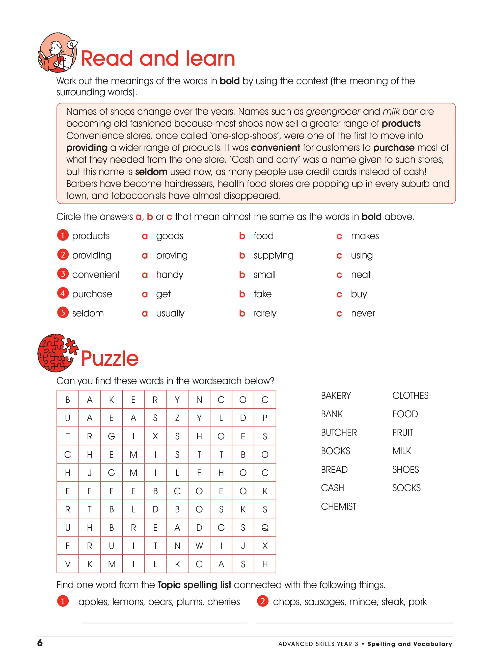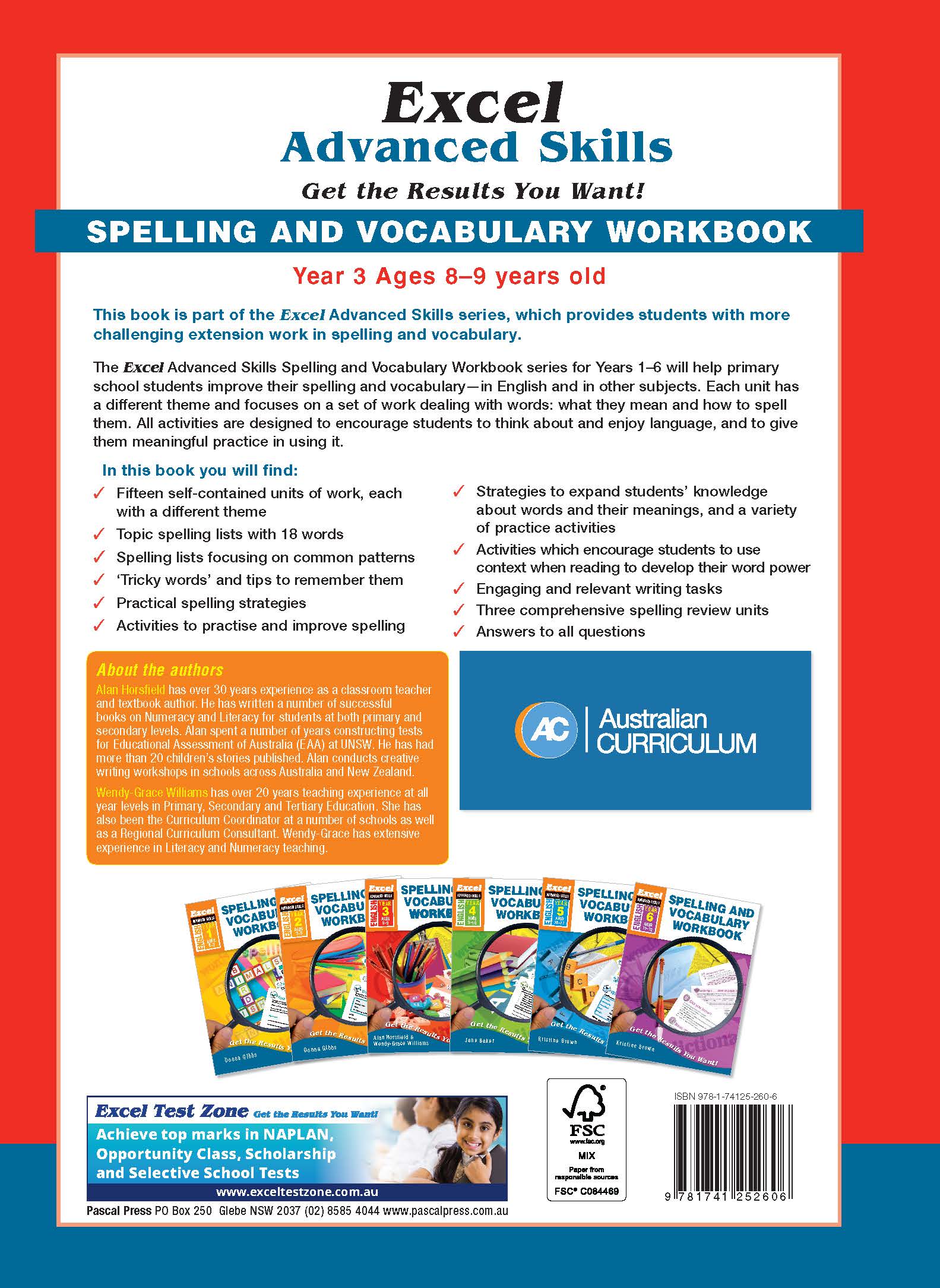 This book is part of the Excel Advanced Skills series, which provides students with more challenging extension work in spelling and vocabulary. The Excel Advanced Skills series of Spelling and Vocabulary Workbooks for Years 3-6 will help primary school students improve their spelling and vocabulary - in English and in other subjects. Each unit has a different theme and focuses on a set of work dealing with words: what they mean and how to spell them. All activities are designed to encourage students to think about and enjoy language, and to give them meaningful practice in using it.