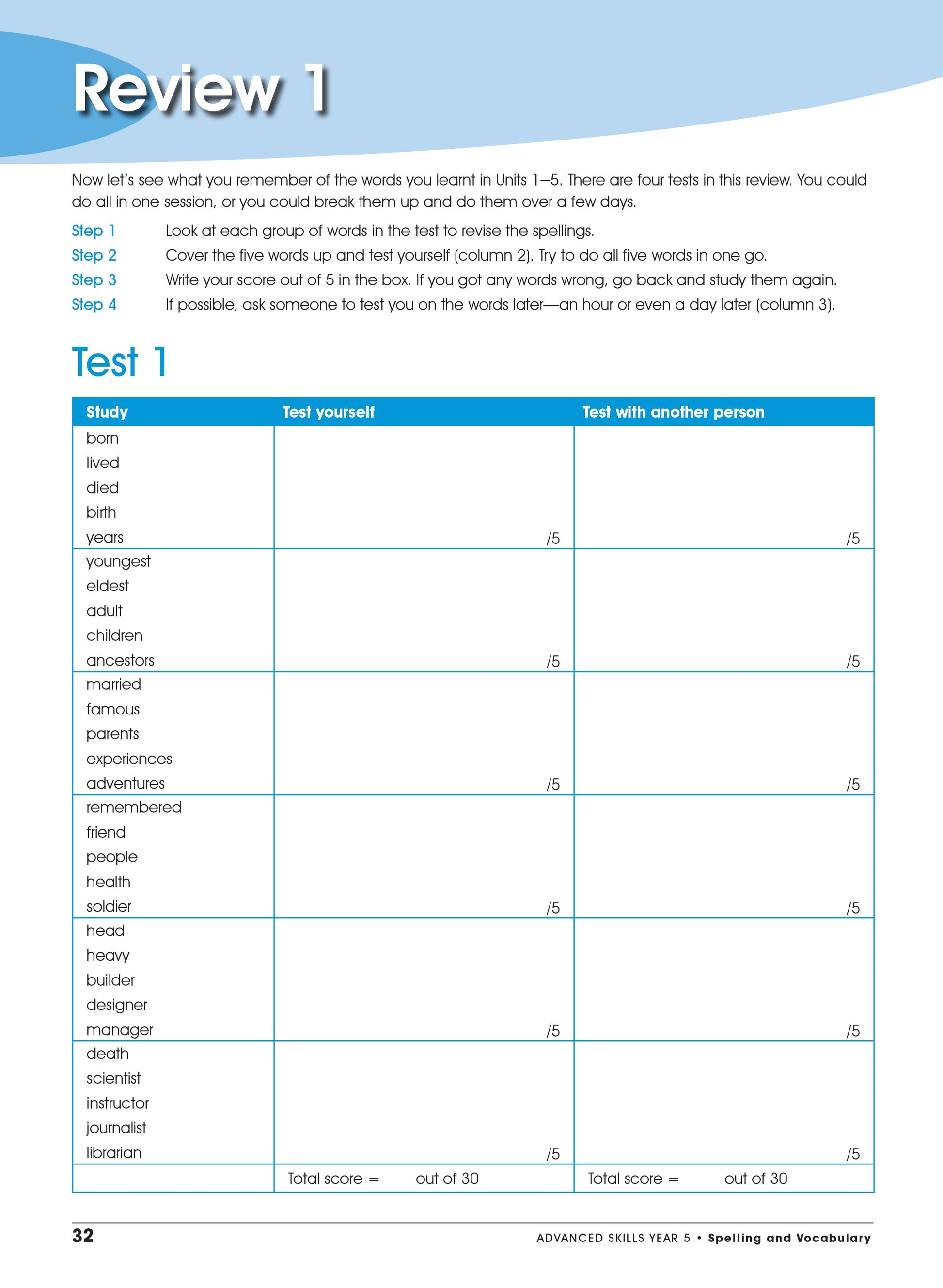 Excel Advanced Skills Spelling and Vocabulary Workbook Year 5 is about words; what they mean and how to spell them. All activities in this book fully align to the Australian Curriculum and are designed to encourage students to think about and enjoy language. Upon completion, students will feel more confident attempting and learning new words and working out their meaning.