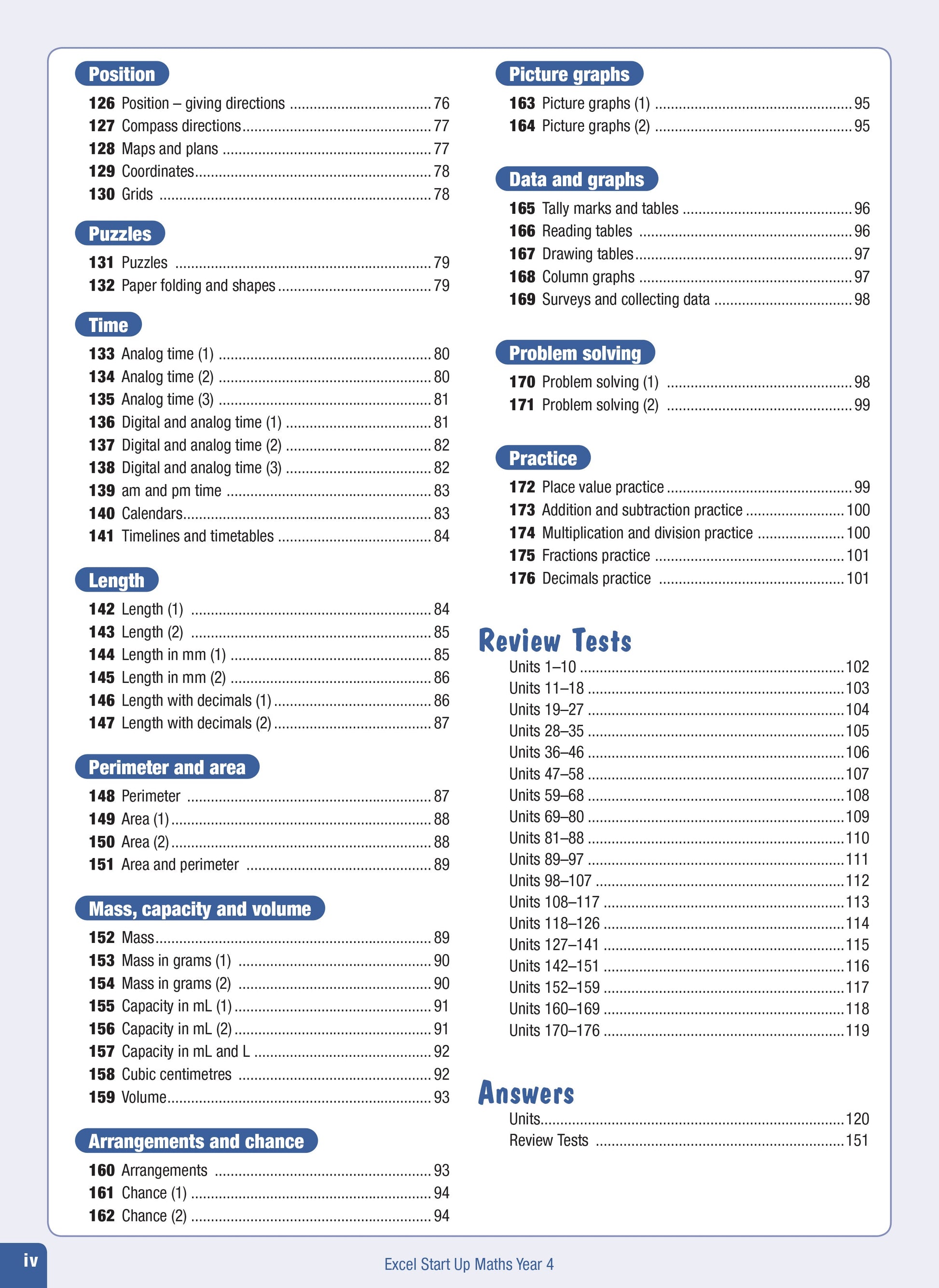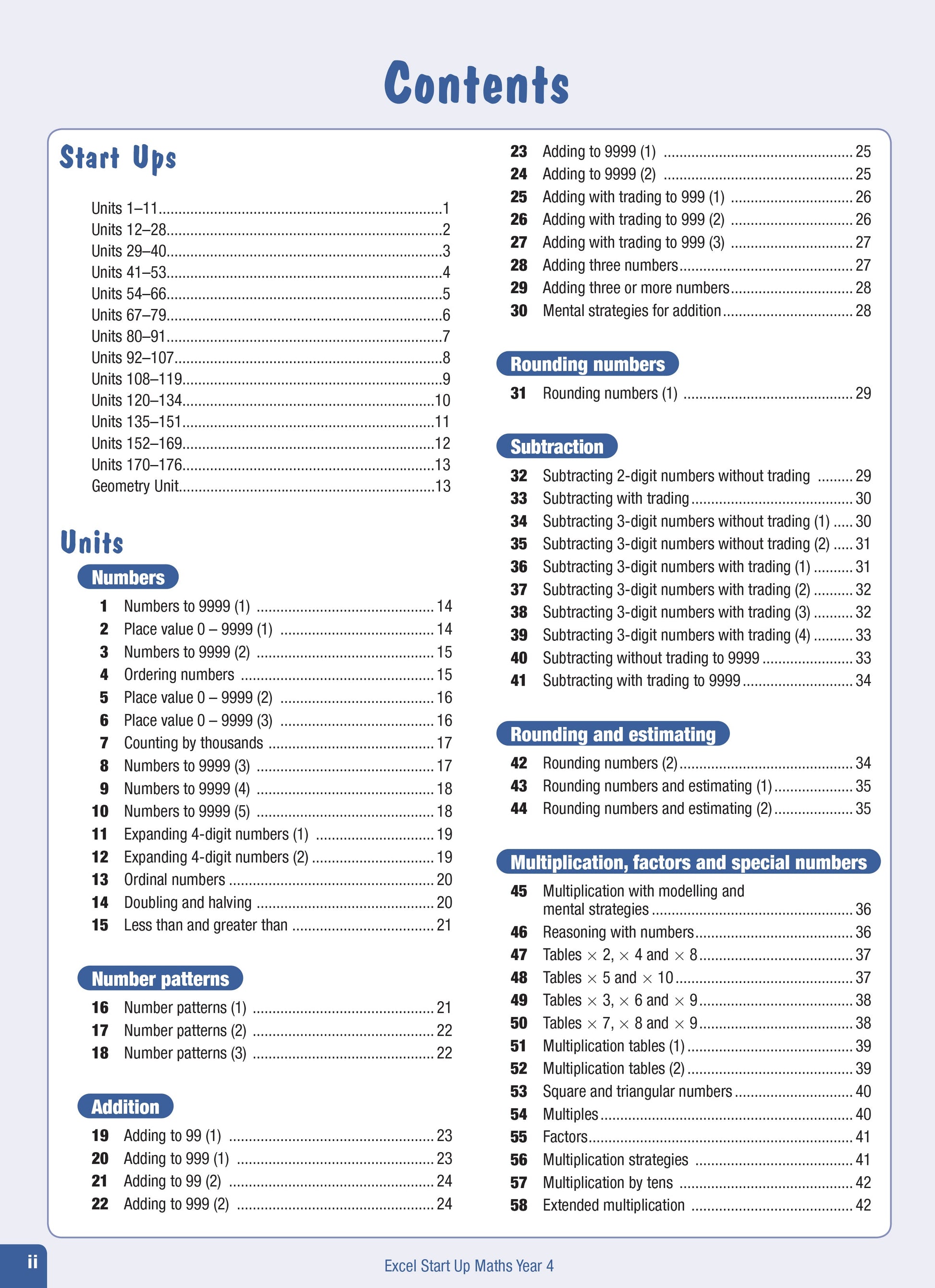 The Excel series of Start Up Maths workbooks for Years 3 - 7 have been specifically designed to be used as classroom or homework books in order to assist students, teachers and parents with their understanding of mathematics. Each book in the series covers the year's work in detail. Innovative features provide an integrated and supportive approach to learning. All units of work, review tests and Start Up sections are interrelated and cross-referenced to each other. This series of books is a must for students who want to cover the year's work comprehensively, with no gaps in their knowledge. The completion of this workbook in Year 4 will ensure that a student will be fully prepared for the work in Year 5.