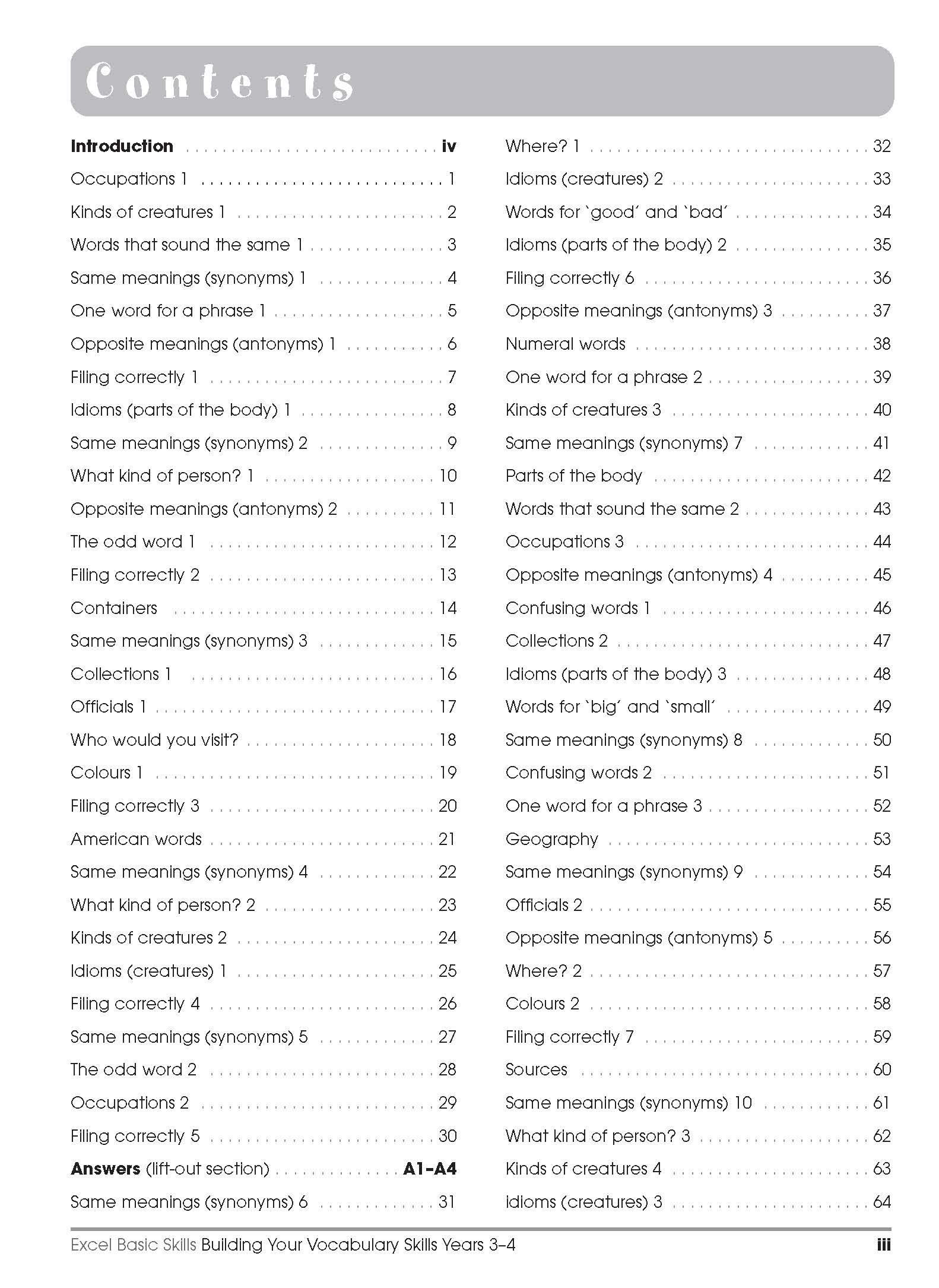 The Building Your Vocabulary Skills series is a three book set of workbooks to help children increase their vocabulary and become more confident in using new words correctly. Each book is divided into single-page activities with each page using a different strategy or theme to help your child learn new words.