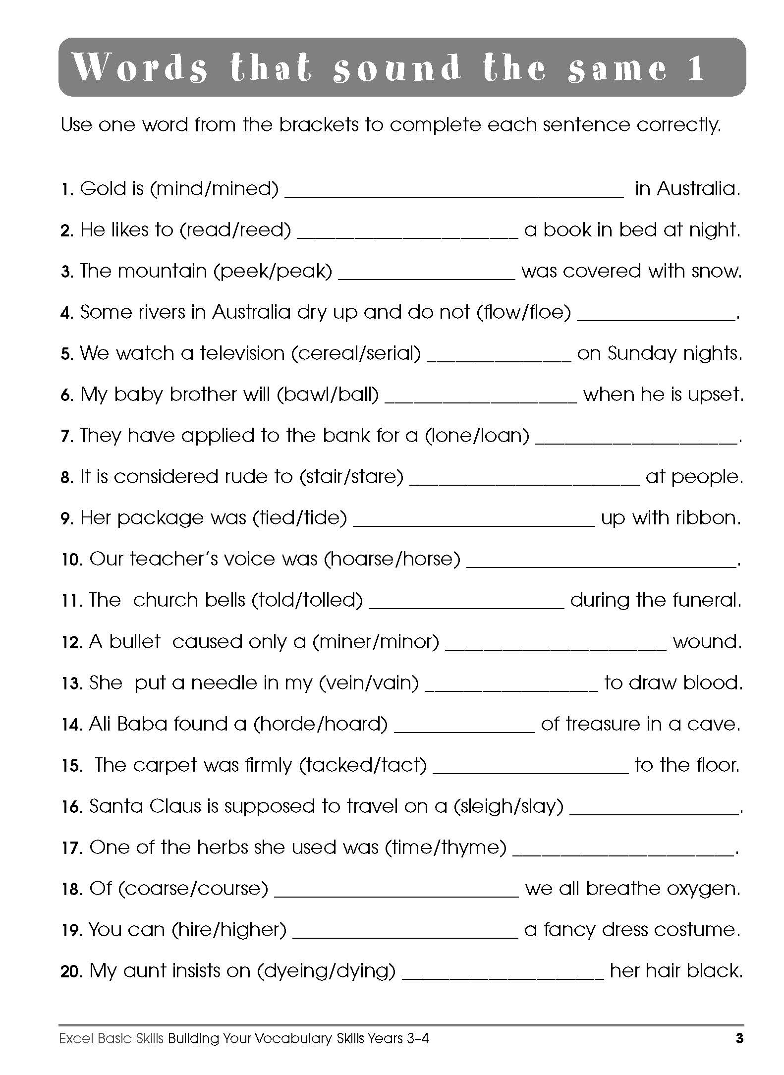 This series of books are designed to help your child at home, which will in turn improve their confidence in reading, writing, spelling and comprehension exercises at school. It would be useful for children to have a quality dictionary at hand when doing these exercises. This can avoid guesswork if they are unsure of an answer. Theoretically, then, there will be no errors for parents to correct, yet children will have still have added new words to their vocabularies.