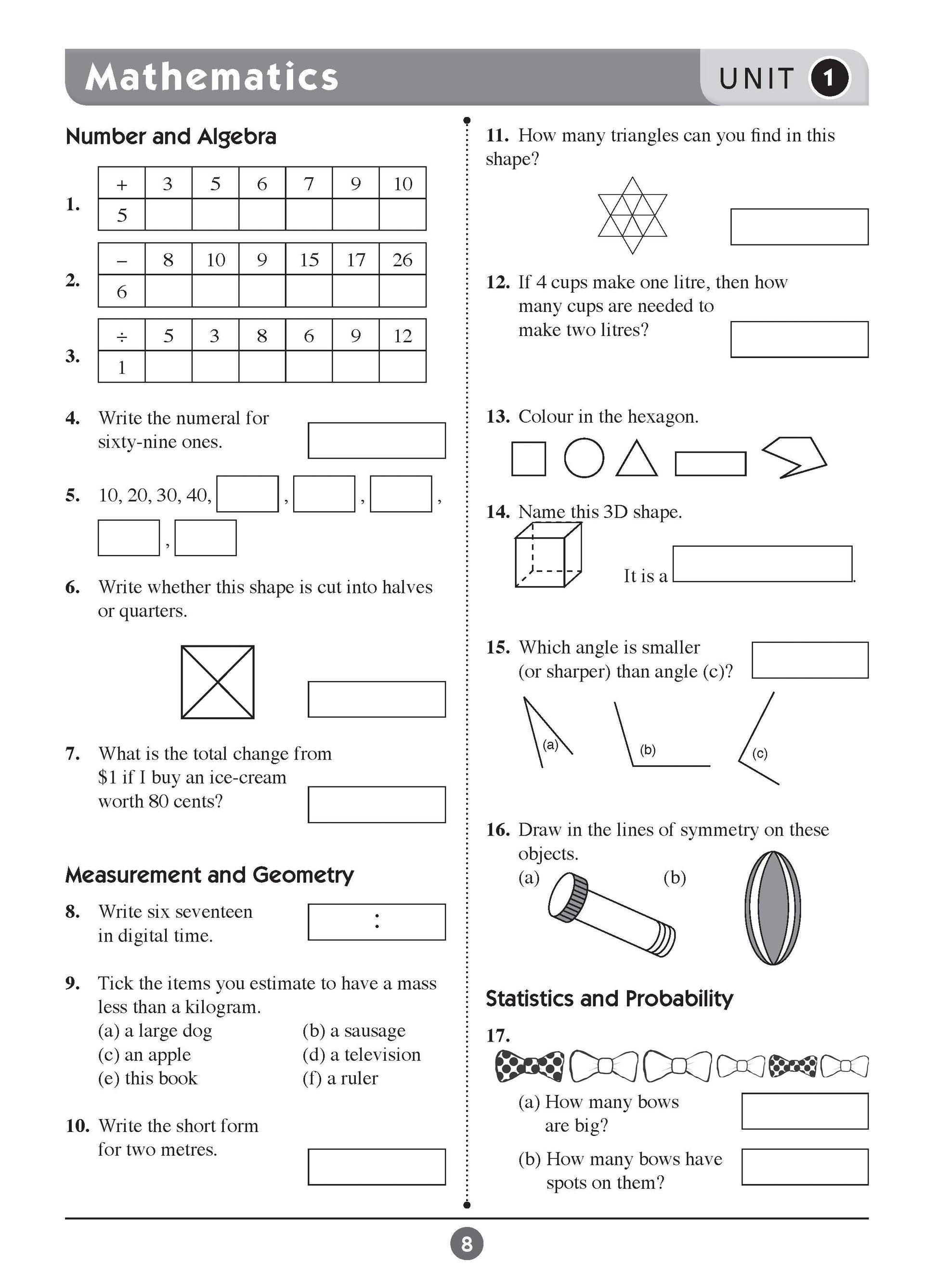 This is easy to use. Broken into six test papers in the different subject fields. Great opportunity for younger students to experience NAPLAN style questioning. Answers are provided and explanations to help improve understanding for future improvement.