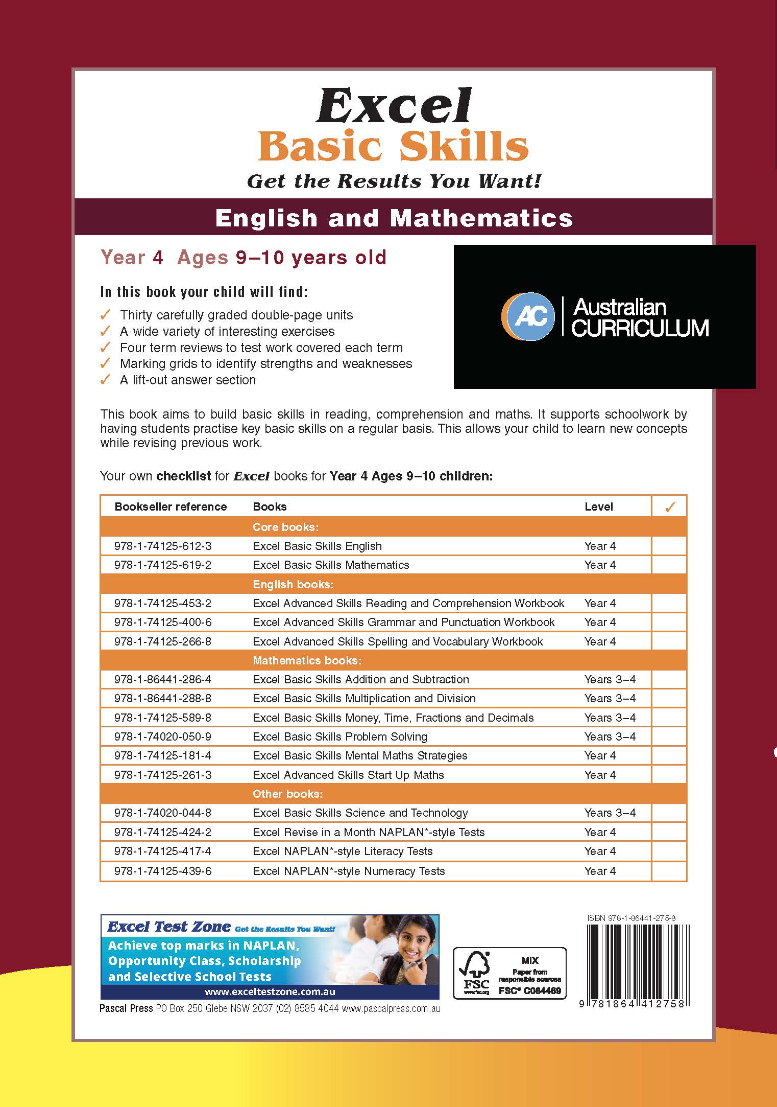 In Excel Basic Skills: English and Mathematics Year 4 your child will find: