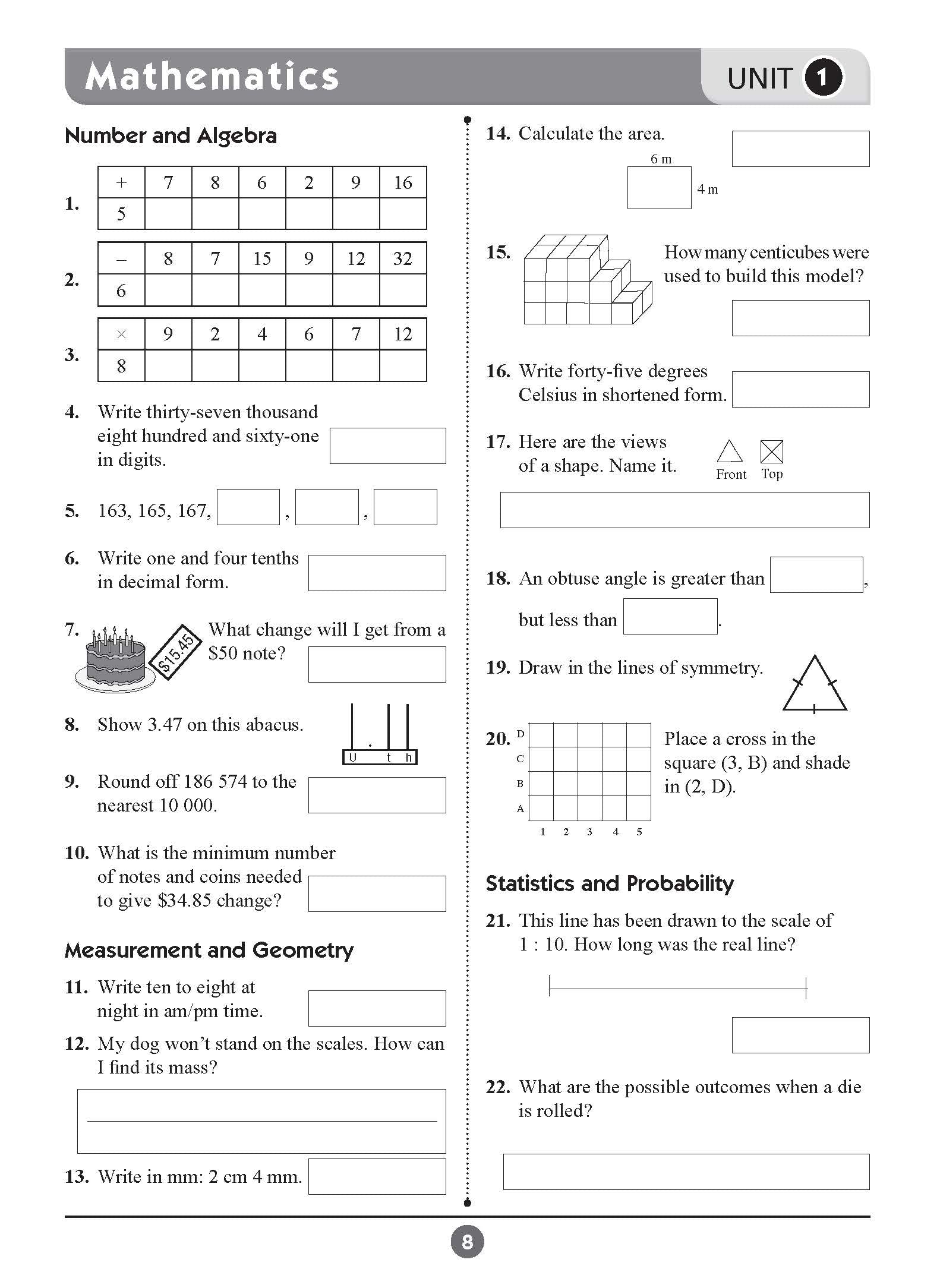 This is easy to use. Broken into six test papers in the different subject fields. Great opportunity for younger students to experience NAPLAN style questioning. Answers are provided and explanations to help improve understanding for future improvement.