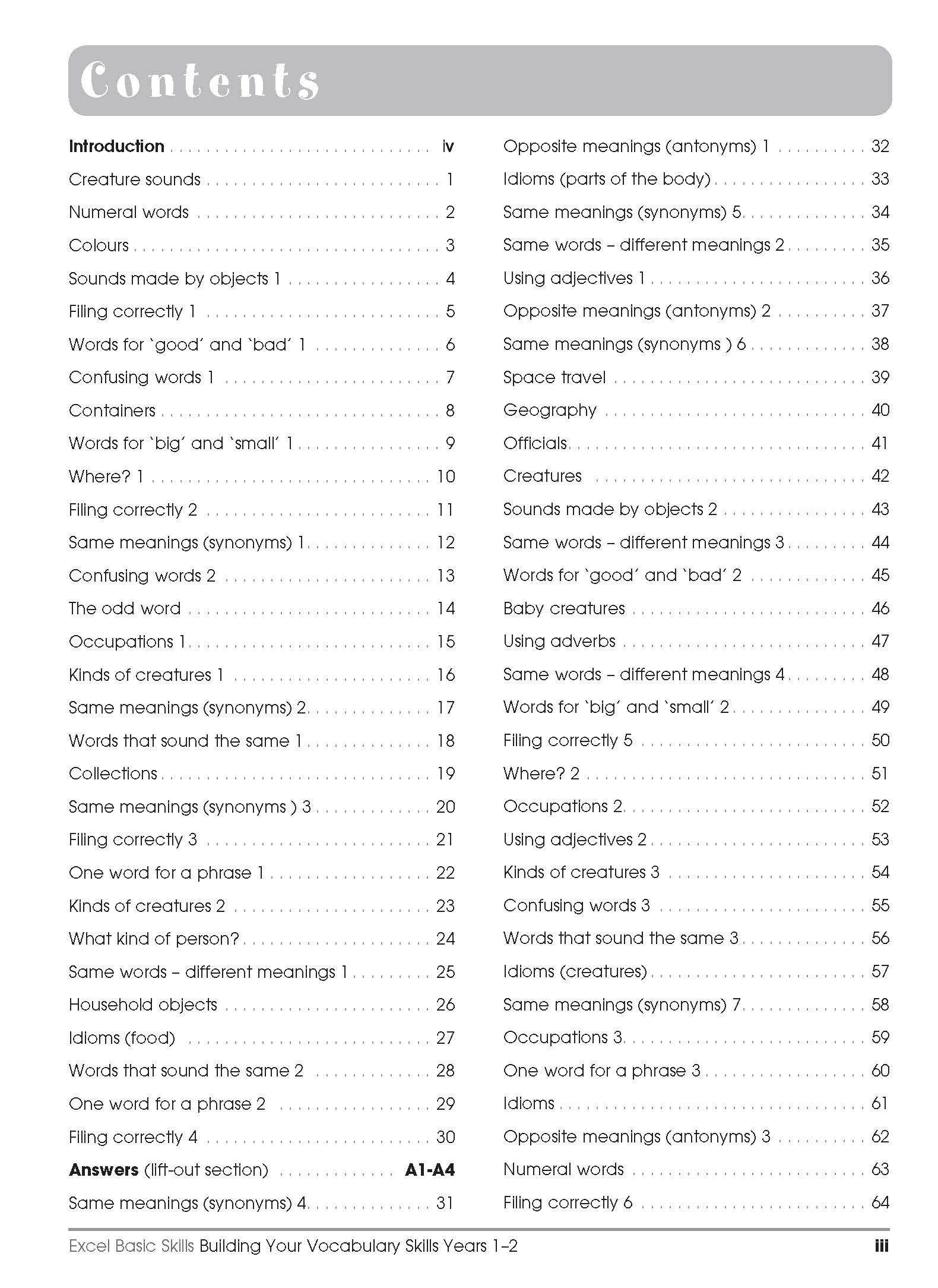 This Excel Basic Skills book will increase your child's vocabulary and become more confident in using new words correctly. Each book is divided into single-page activities with each page using a different strategy or theme to help your child learn new words. Includes Sixty-four units, a range of vocabulary strategies and easy-to-follow tasks.