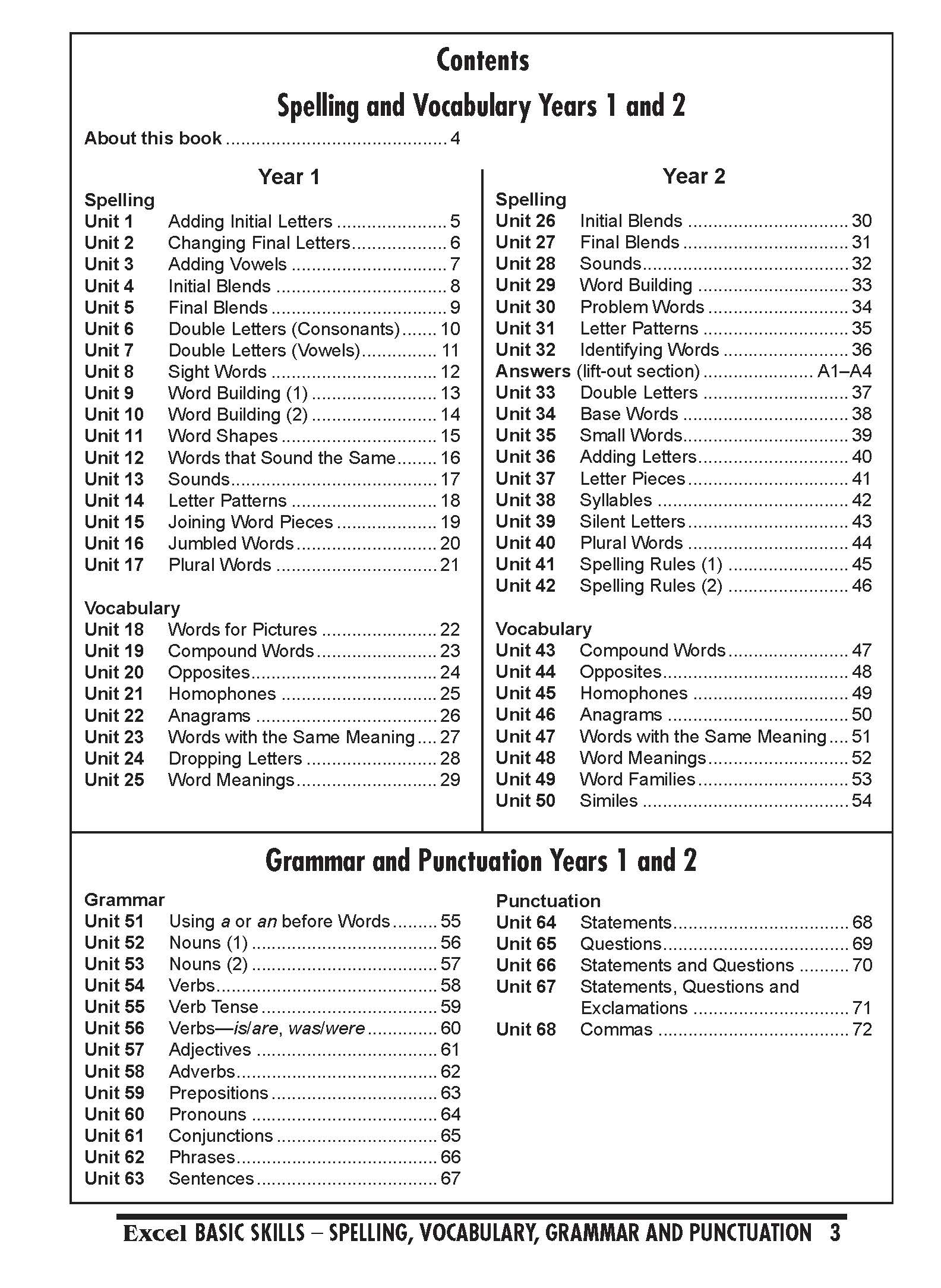 Excel Basic Skills - Spelling, Vocabulary, Grammar and Punctuation Years 1 - 2