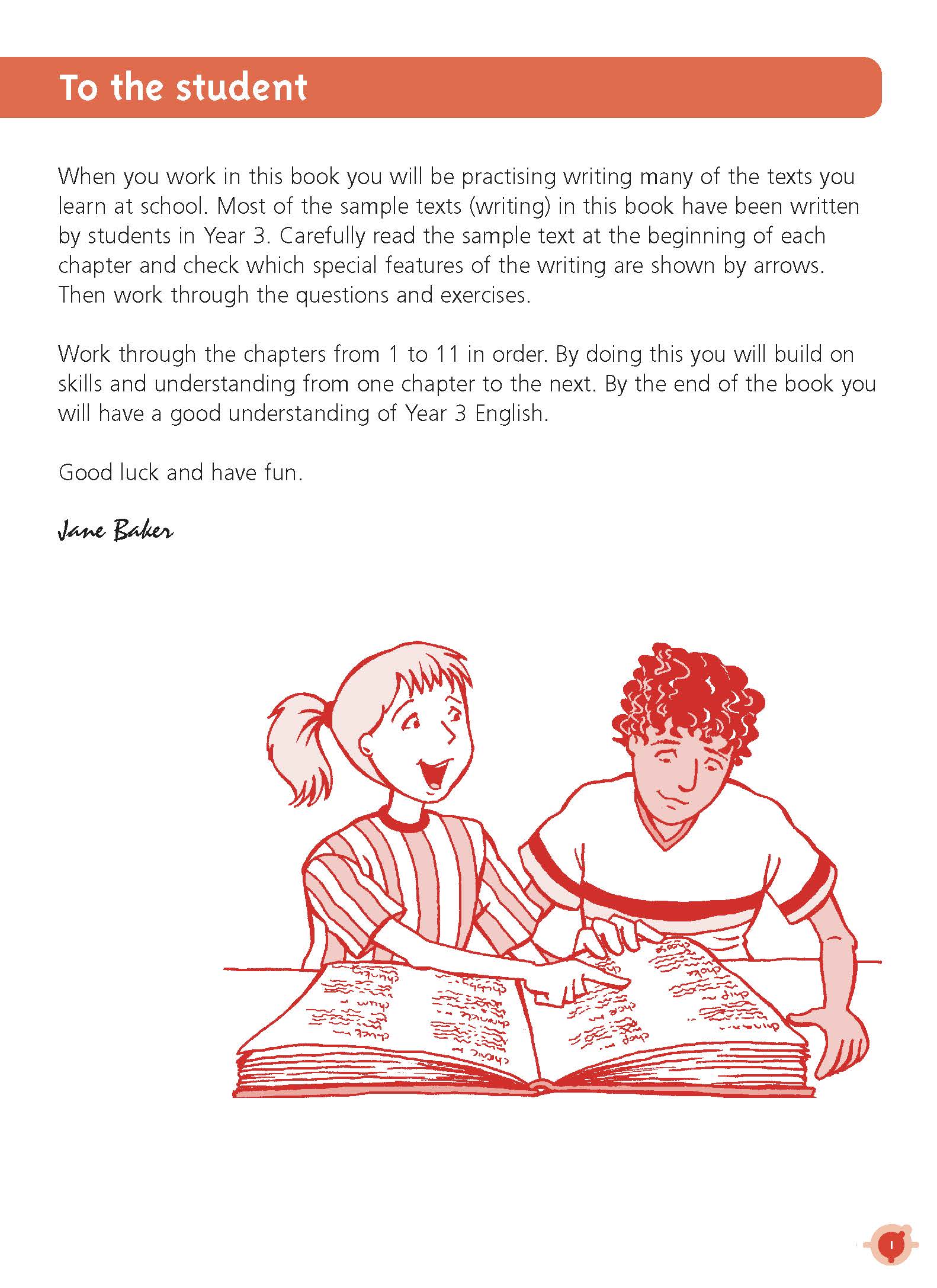 When you work in this book you will be practising writing many of the texts you learn at school. Most of the sample texts have been written by students in Year 3. Work through the chapters from 1 to 11 in rder. By doing this you will build on skills and understanding from one chapter to the next. By the end of the book you will have a good understanding of Year 3 English.