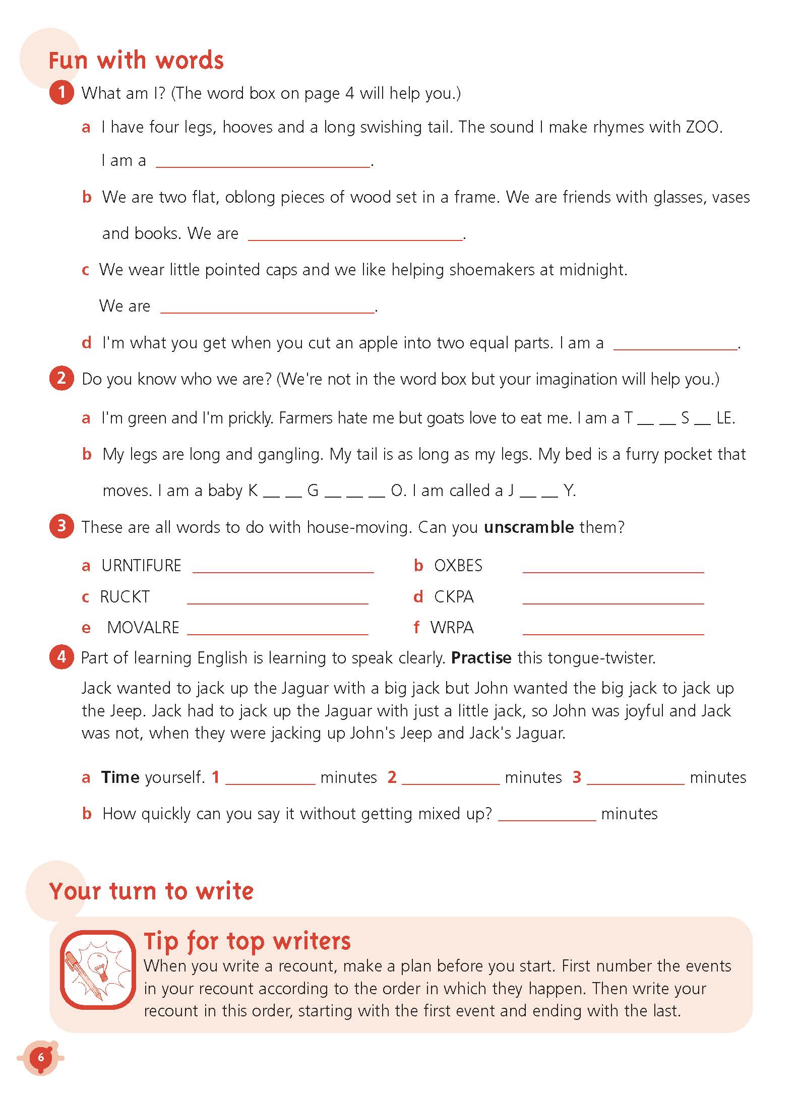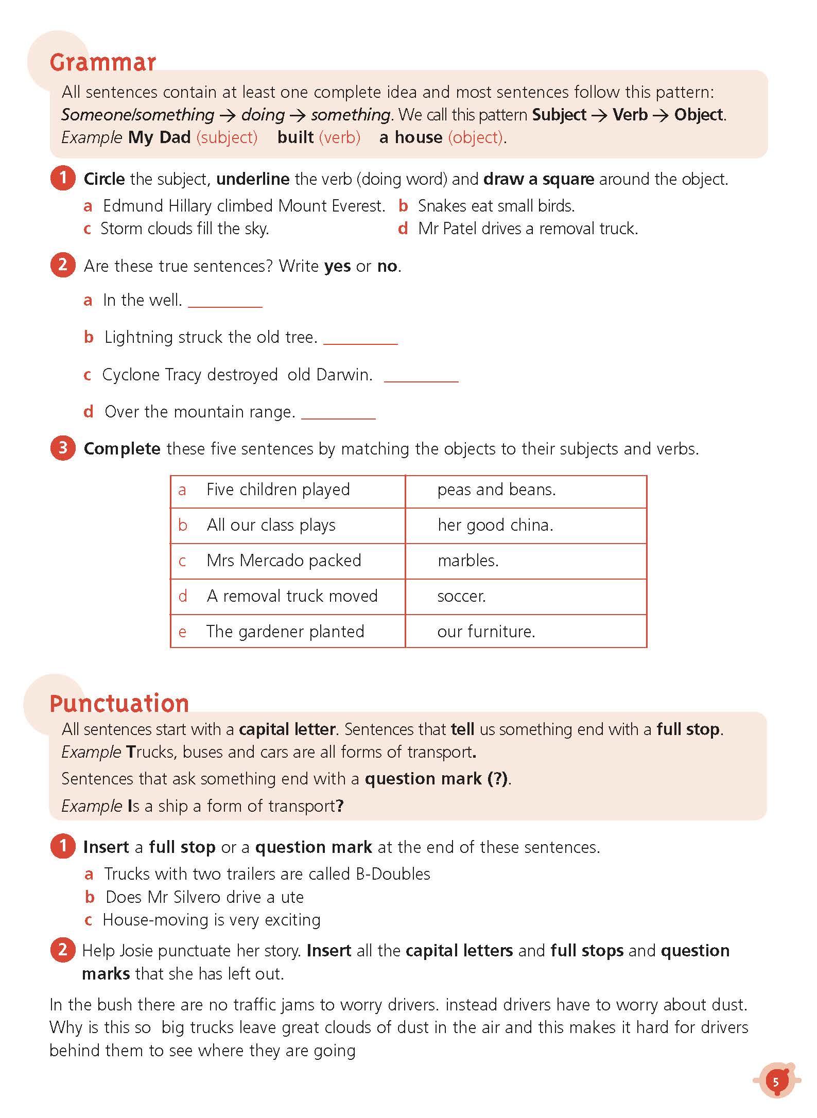 • practice in skills such as spelling, grammar, vocabulary, punctuation and comprehension
