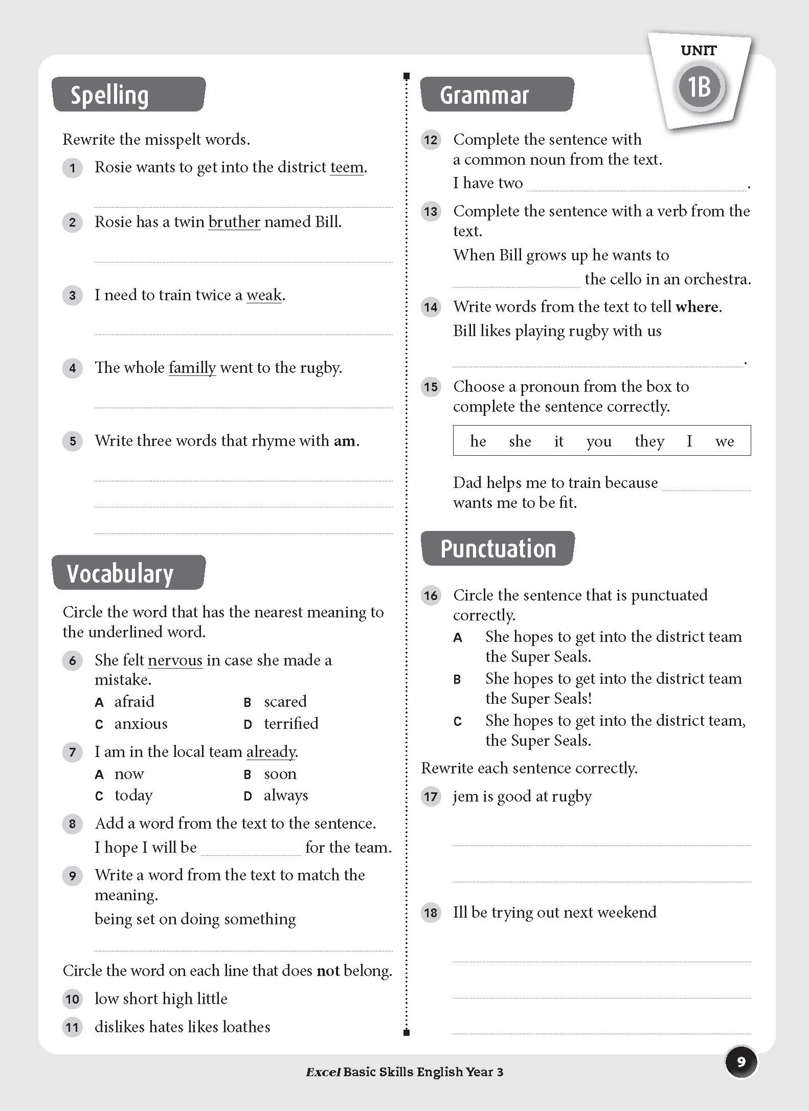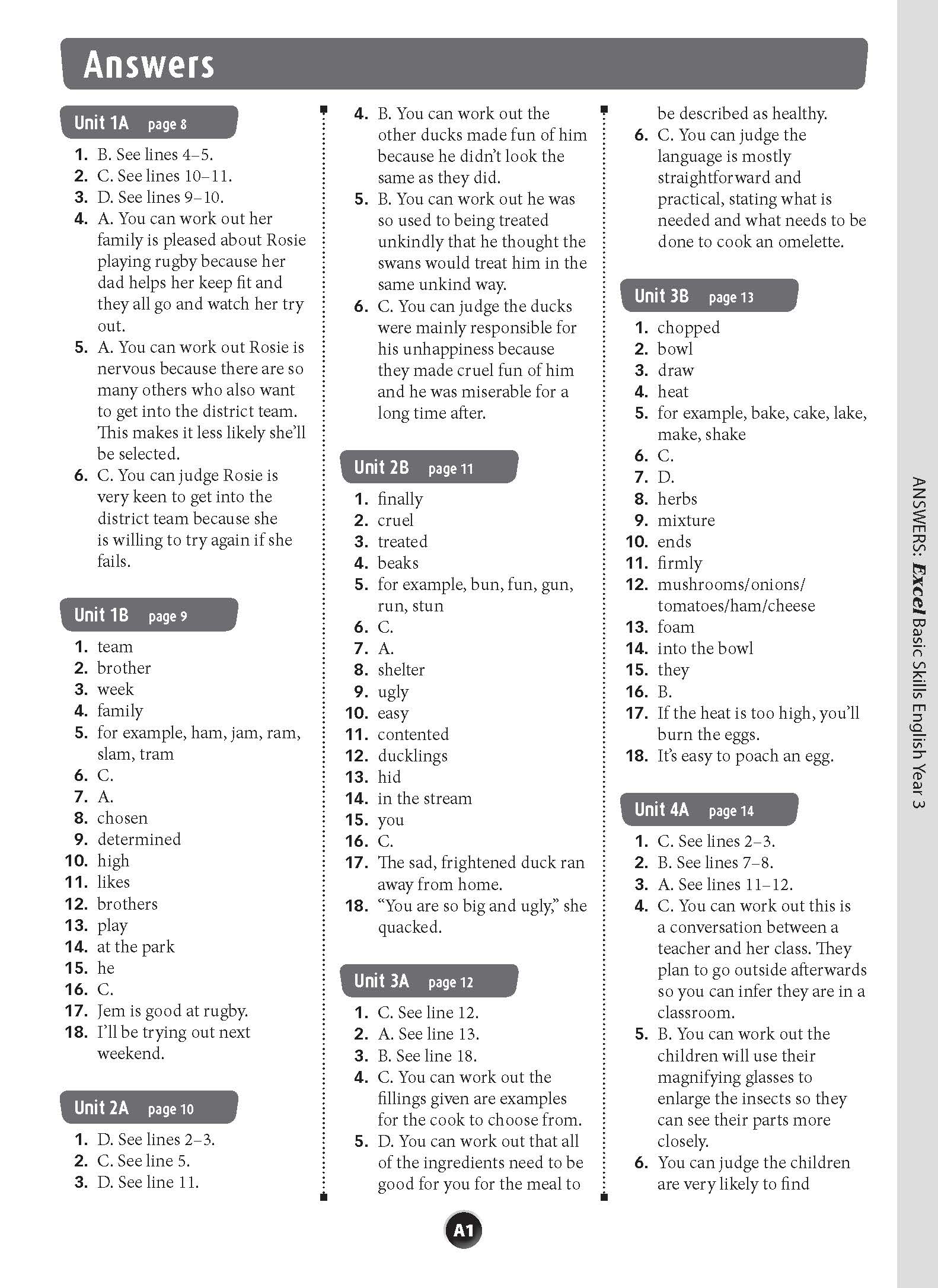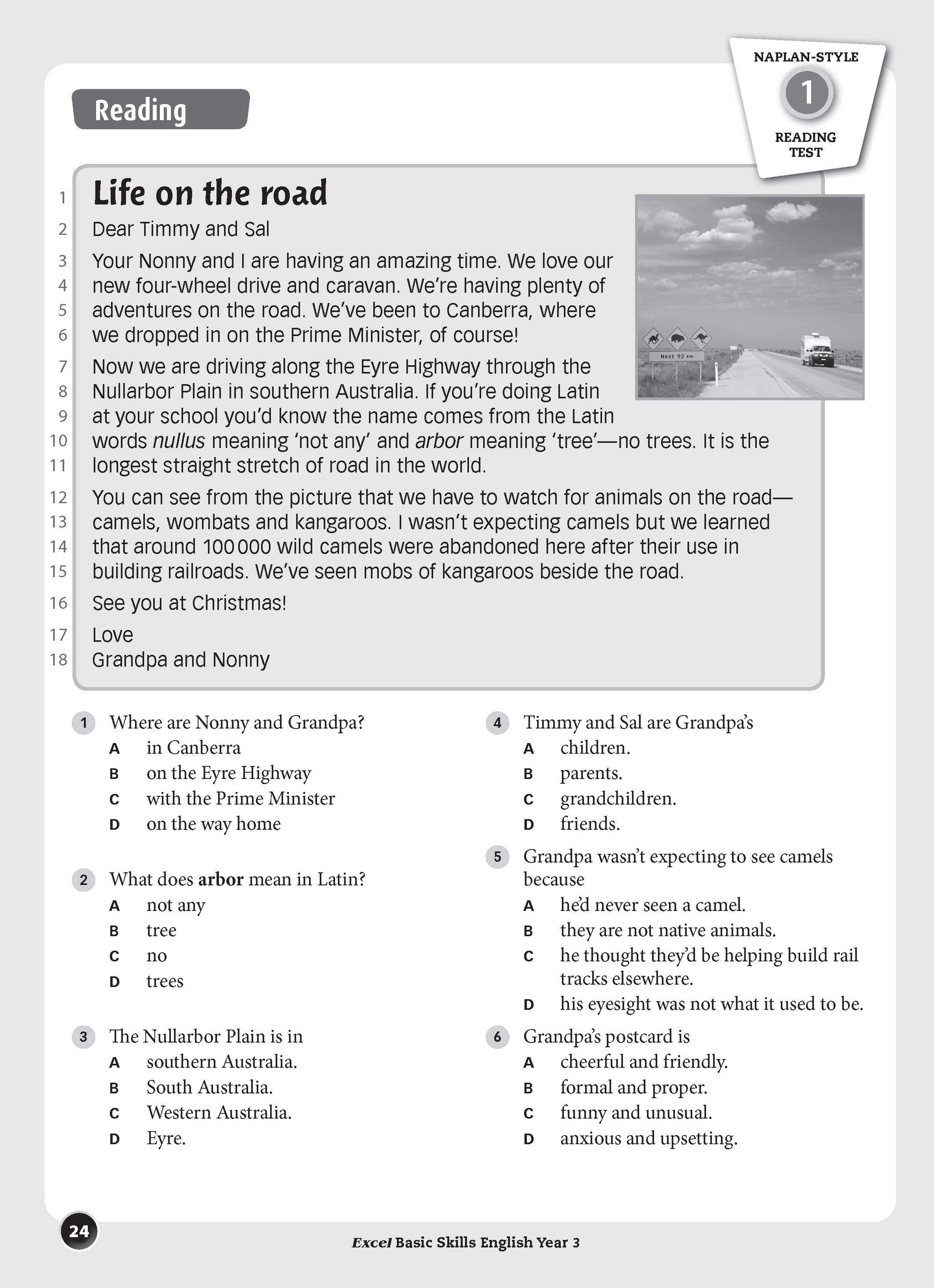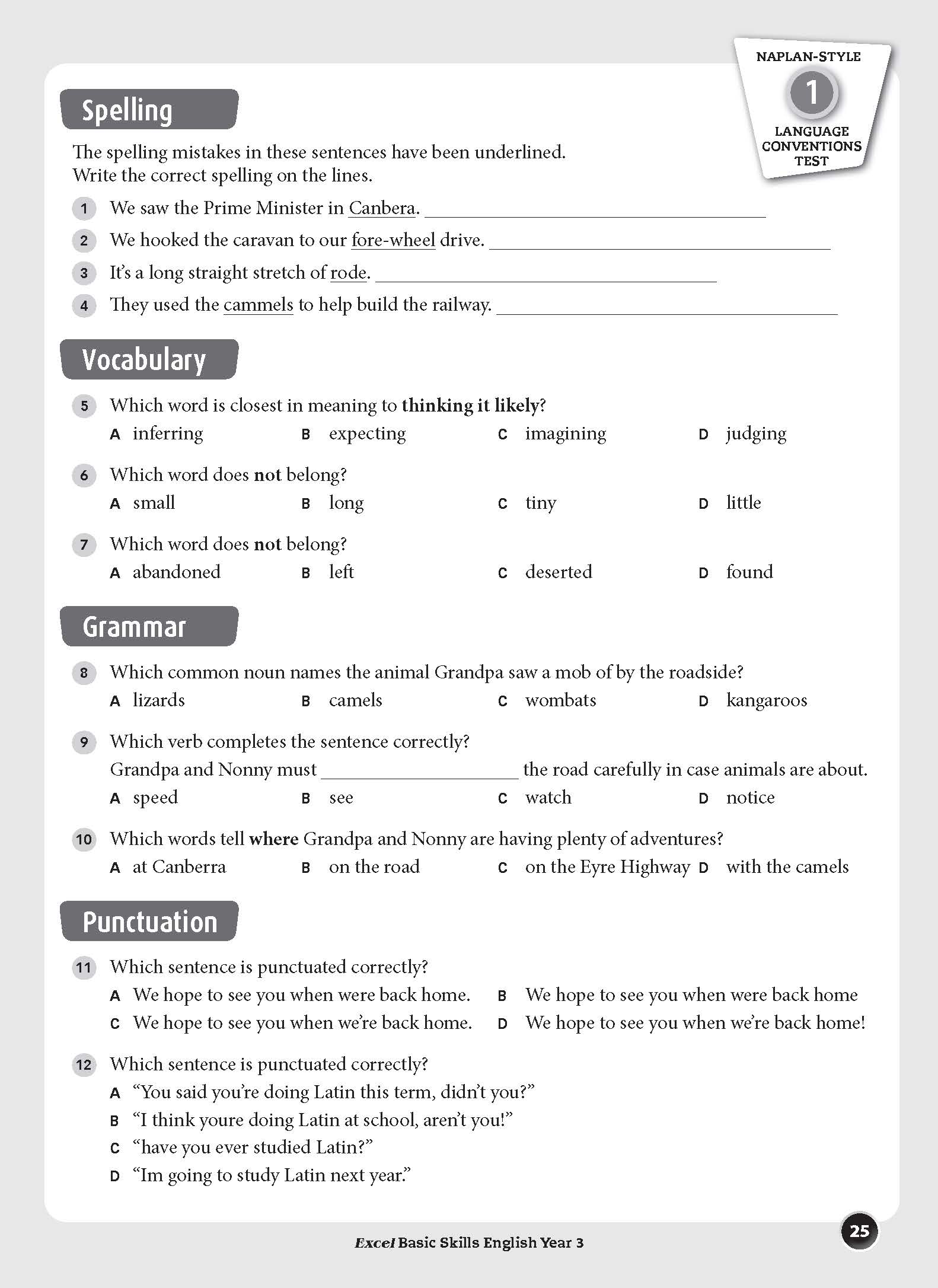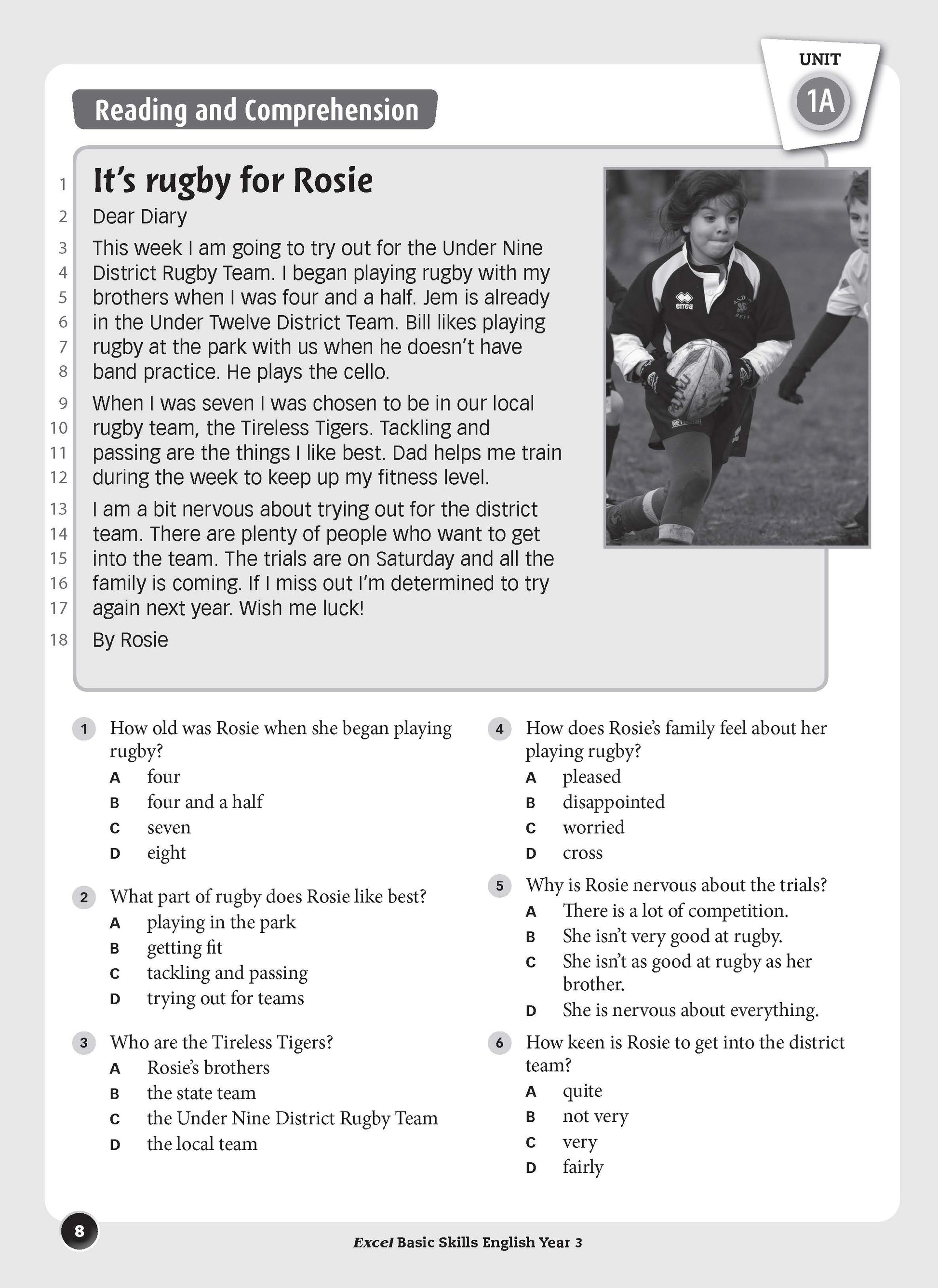 The aim of this book is to build basic skills in reading, comprehension, spelling, vocabulary, grammar and punctuation. The format of each unit is the same so that students become familiar with the requirements of each question, which become progressively more difficult as students work through the book. The sequence of units allows for regular practice that will reinforce the basic English skills taught in schools.