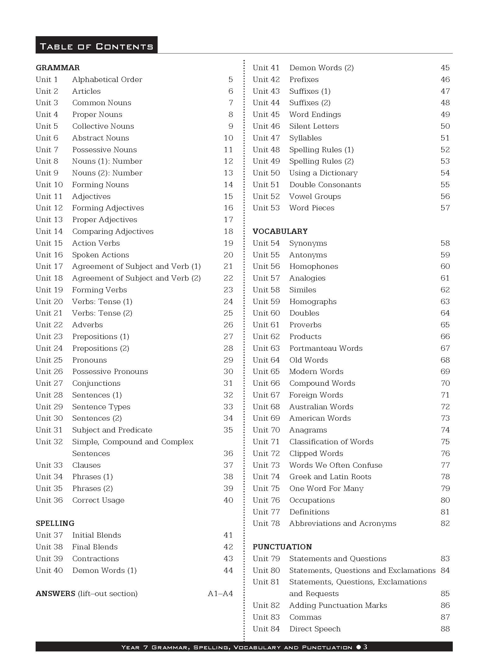 The series supports schoolwork by maintaining skills, therefore allowing students to learn new concepts while constantly reinforcing previously learnt concepts. This book contains all the elements of grammar, spelling, vocabulary and punctuation relevant to Year 7 students. In this book students will find: