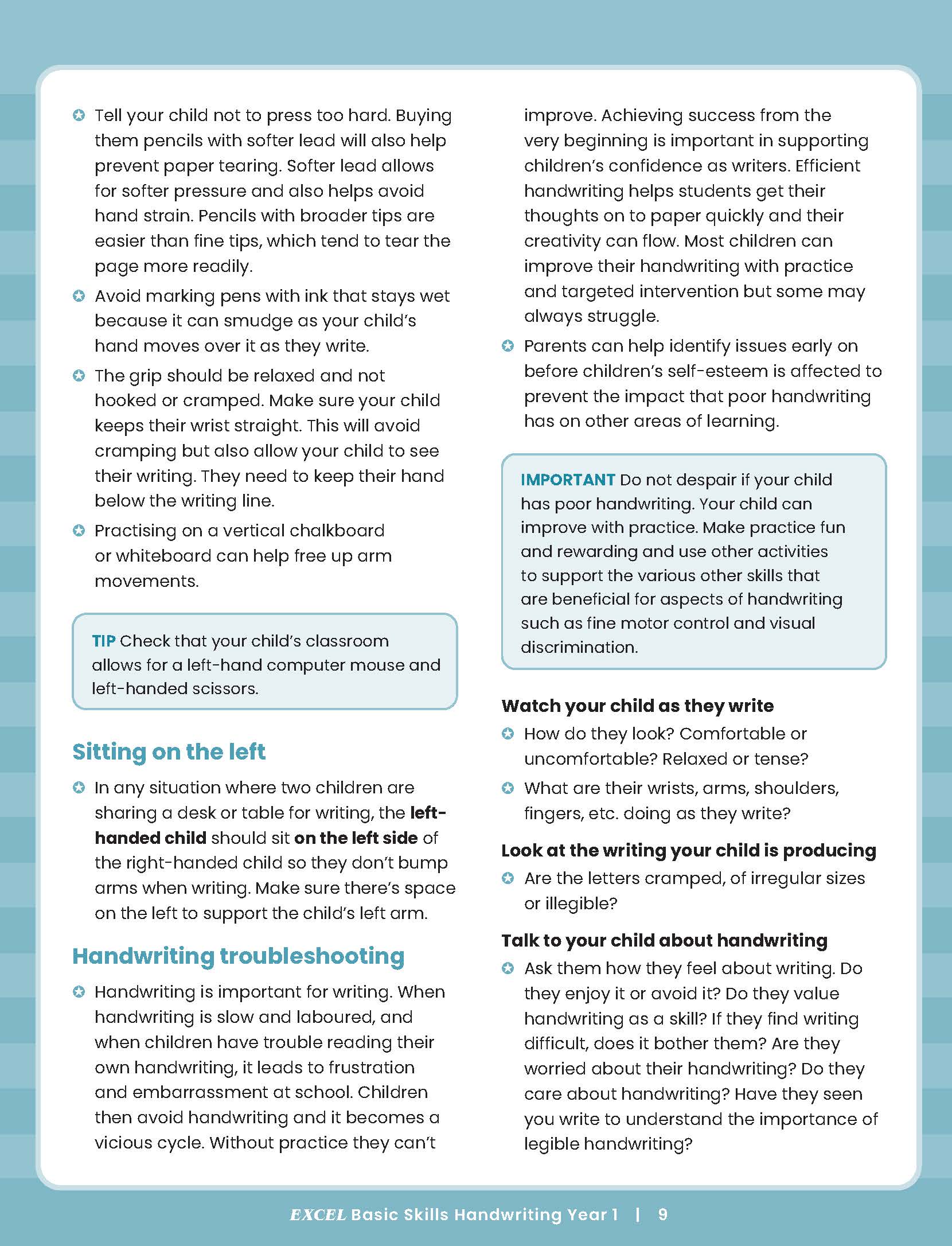 • Tips and advice for parents on how to troubleshoot a wide range of handwriting issues