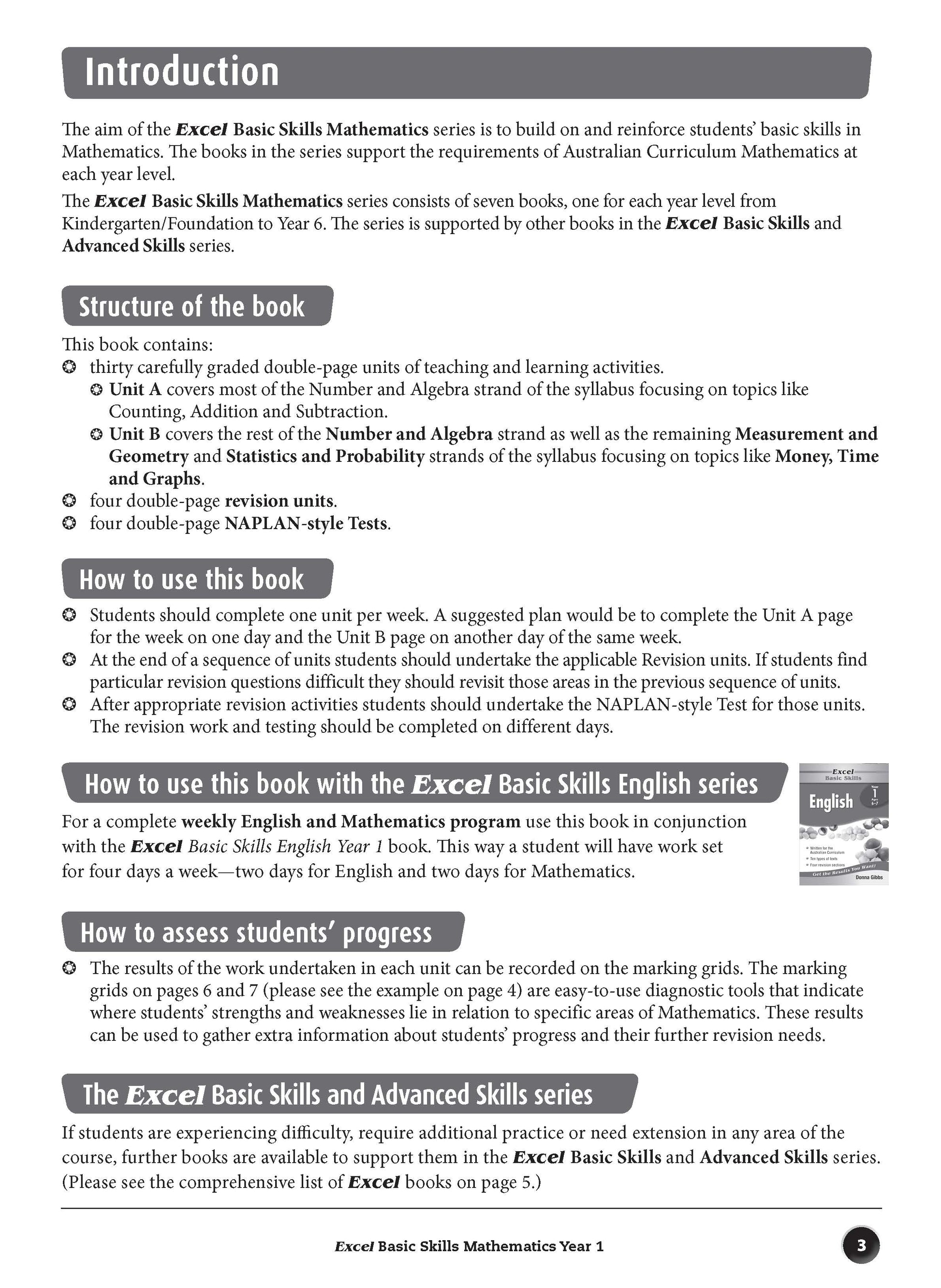 Our Excel Basic Skills Mathematics Year 1 Book Pack gives students the range of skills across Mathematics, Mental Maths Strategies, Money, Time and Fractions they need to get the results they want! Save up to 10% for four Excel Basic Skills resources, that have been specifically written for the Australian Curriculum.
