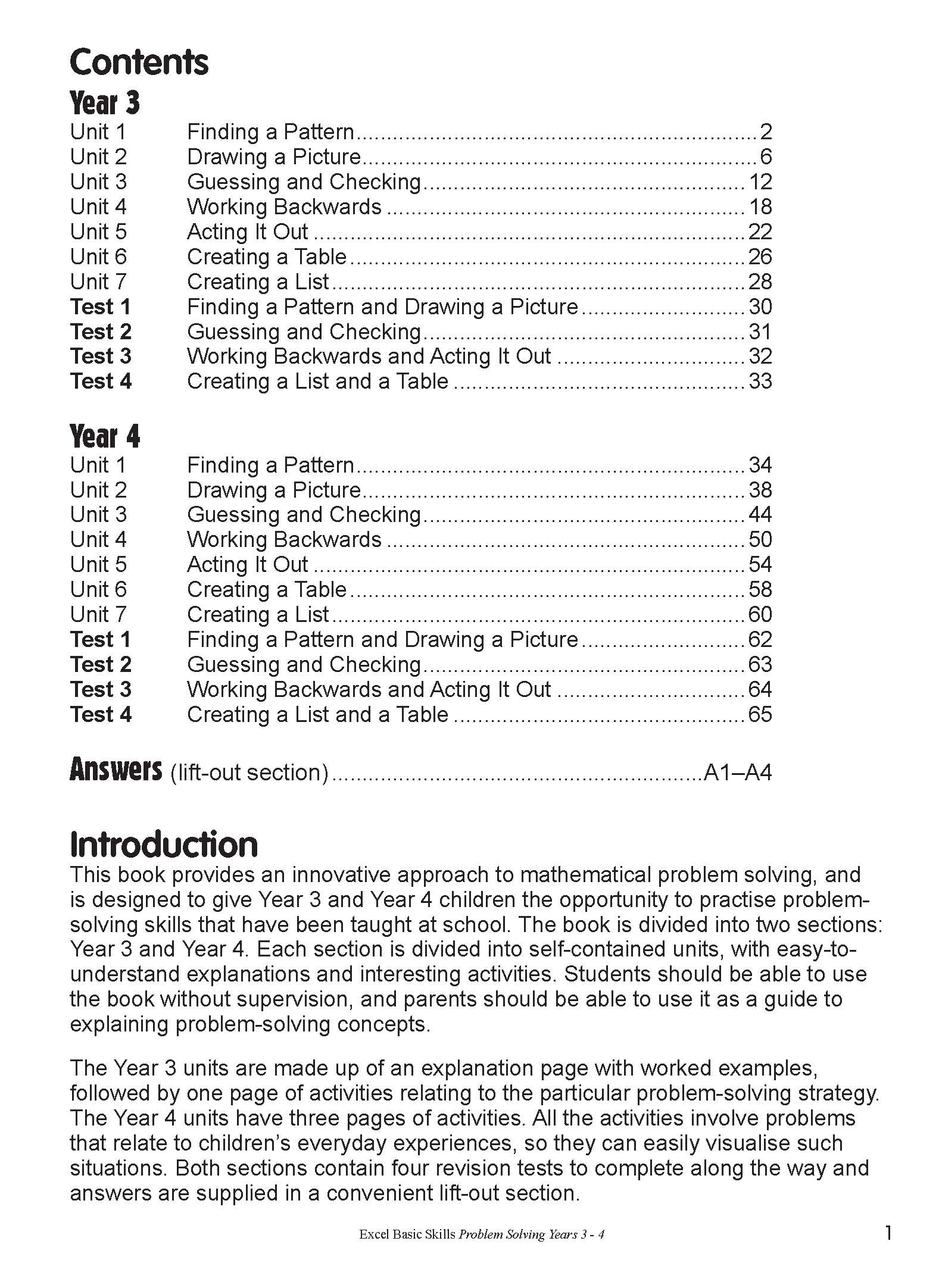 Excel Basic Skills: Problem Solving Years 3-4 is designed to give Year 3 and Year 4 children the opportunity to practise problem solving skills that have been taught at school. It shows students, step-by-step, how to apply basic skills of mathematics and logic to solve problems. In this book your child will find an innovative approach to mathematical problem solving, fourteen self-contained units and eight revision tests.