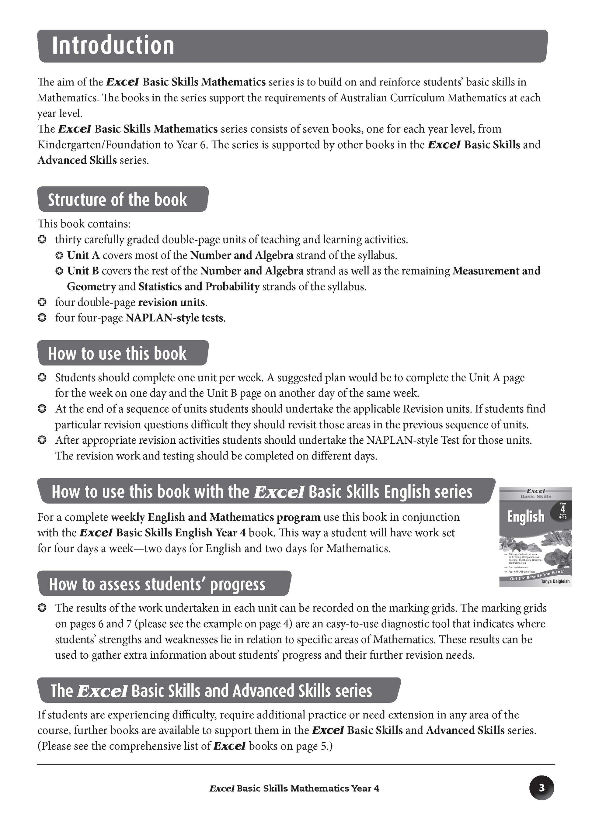 The aim of this book is to build basic skills in Mathematics. The format of each unit is exactly the same, so that each question covers the same Australian Curriculum topics throughout the book. The content of the questions becomes progressively more difficult as students work through the book. The sequence of units allows for regular practice that will reinforce the basic Mathematics skills taught in schools.