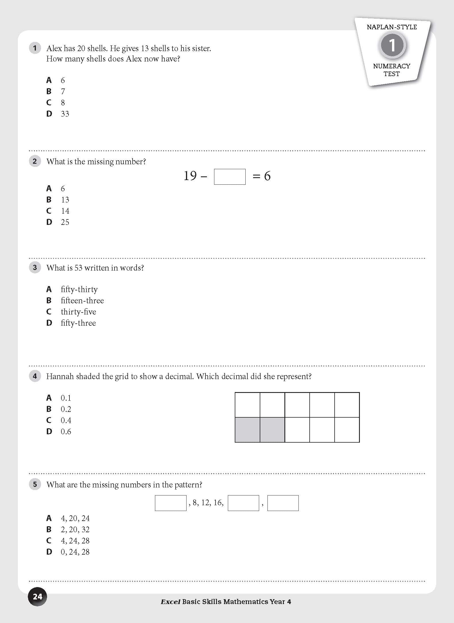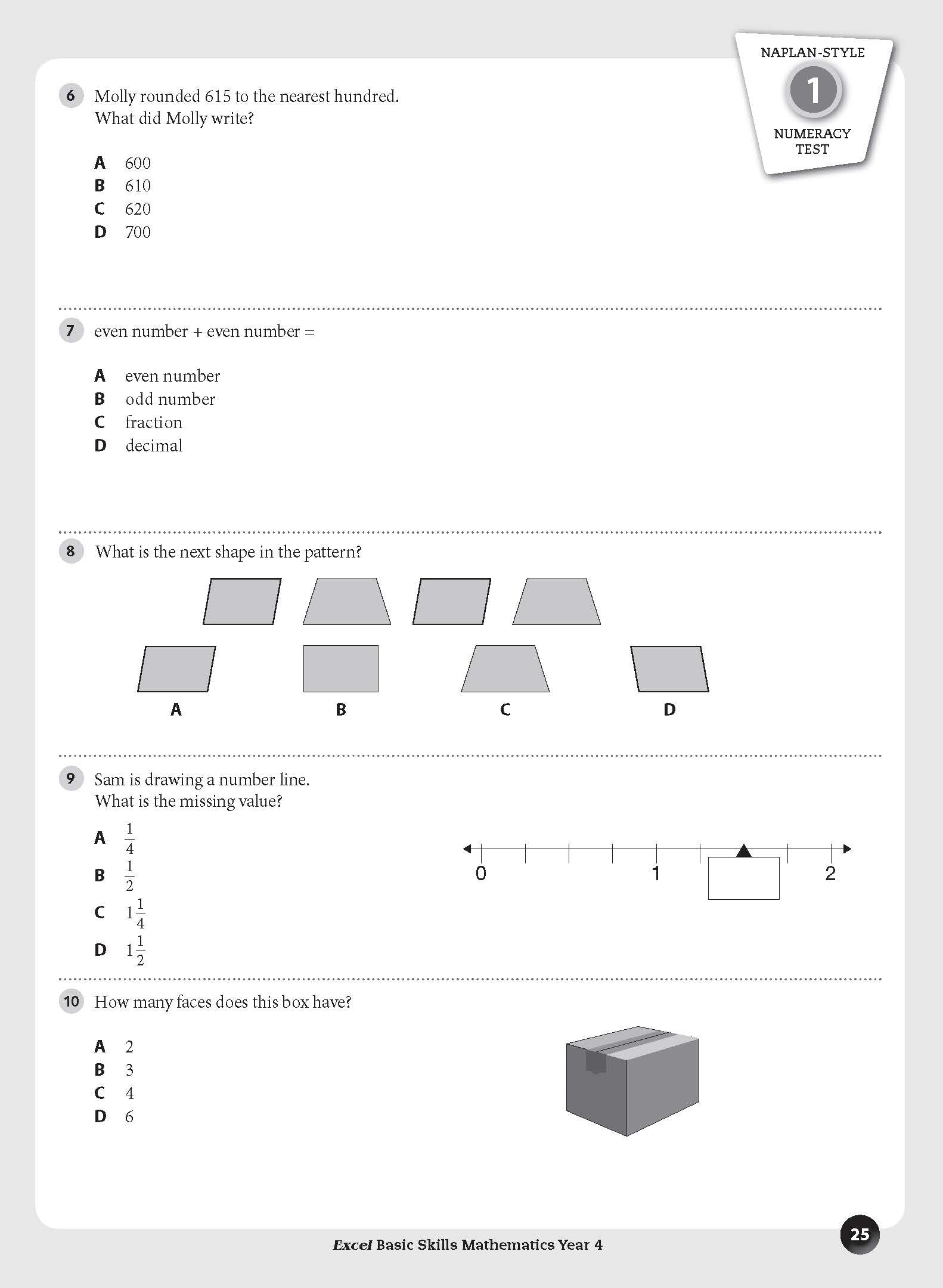 This is easy to use. Broken into six test papers in the different subject fields. Great opportunity for younger students to experience NAPLAN style questioning. Answers are provided and explanations to help improve understanding for future improvement.
