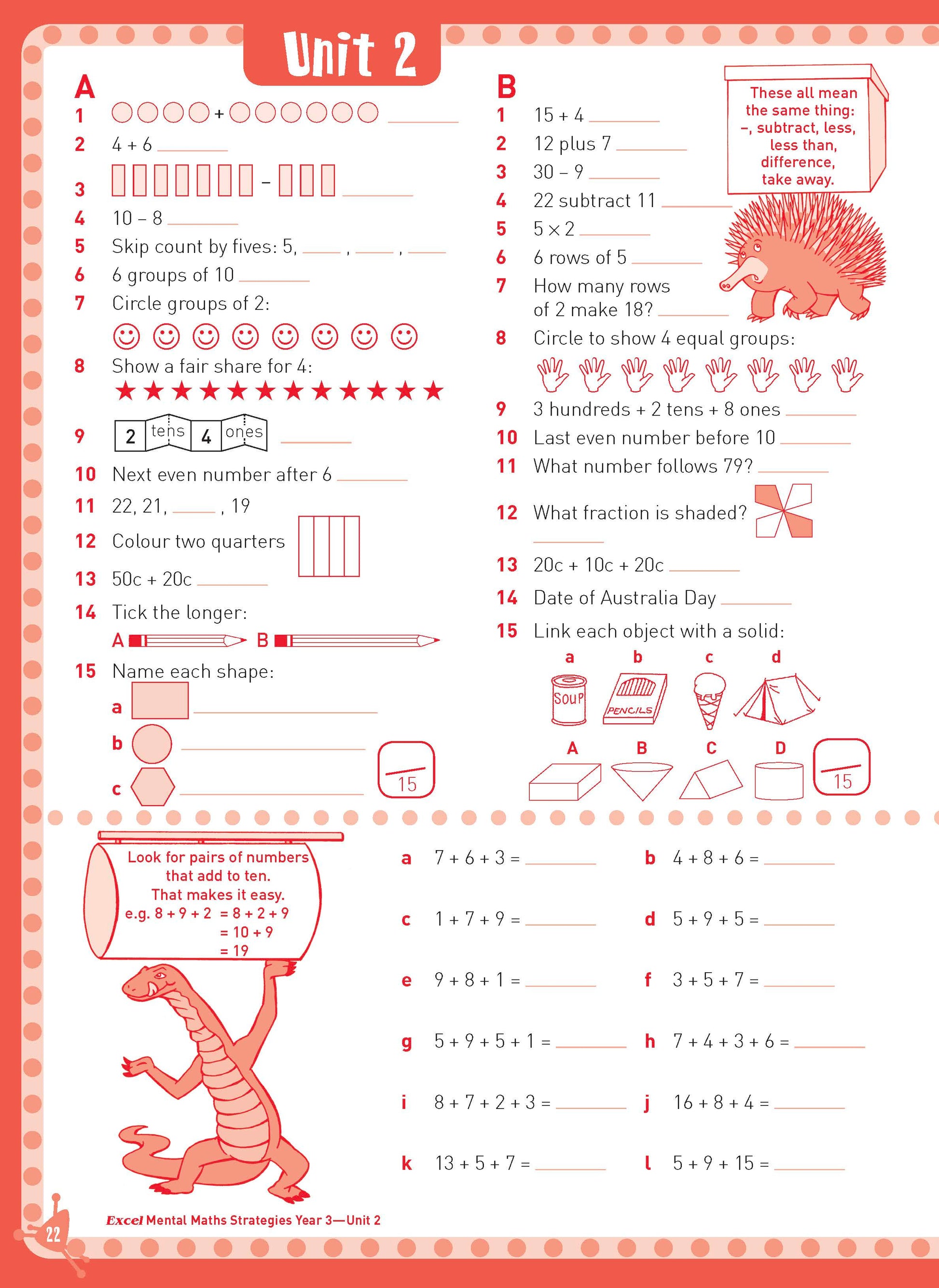 • a special section at the front of the book gives different strategies and explanations to help students solve Mentals problems. These are also numbered so they link to the question numbers in each Mentals unit