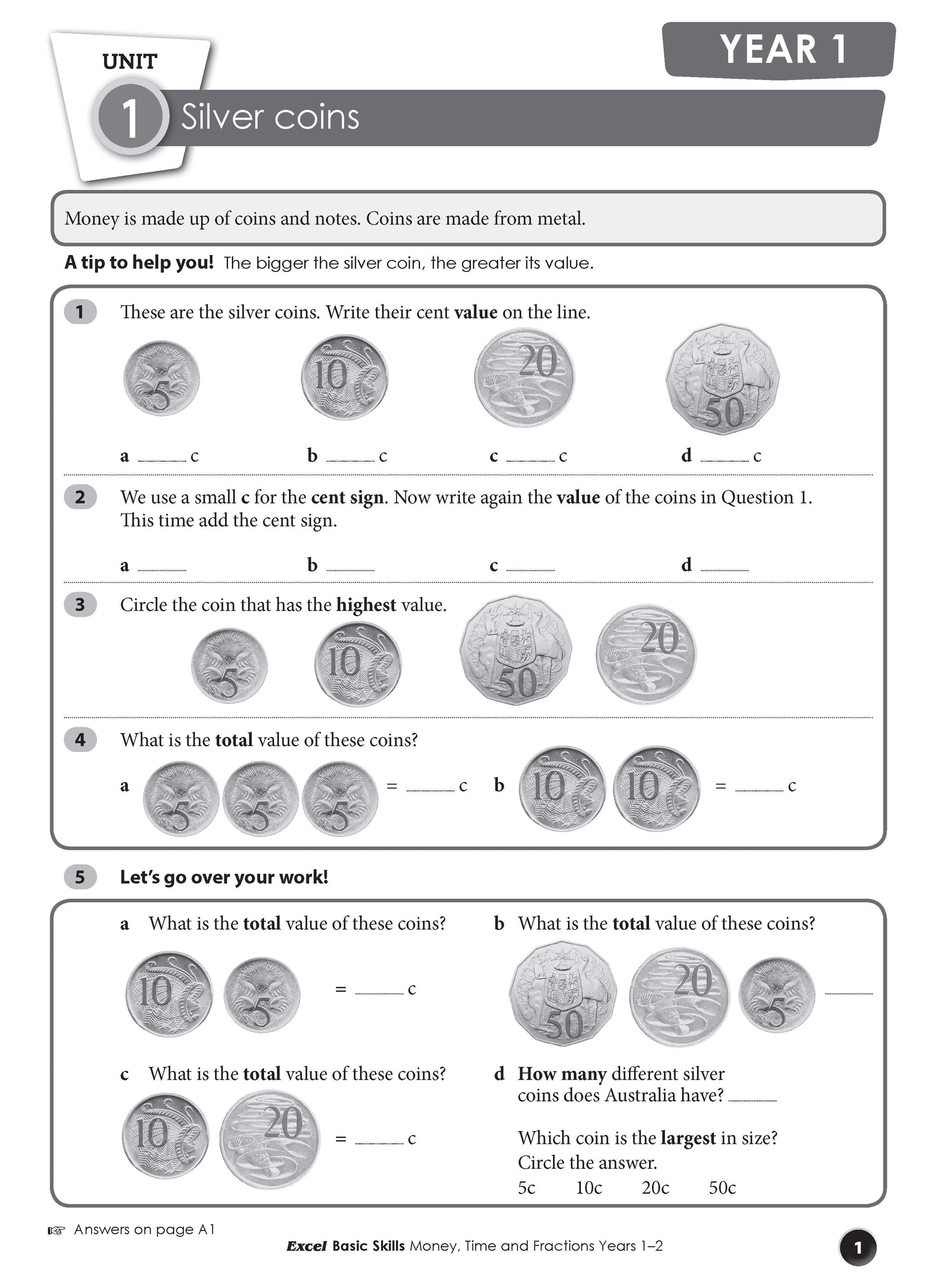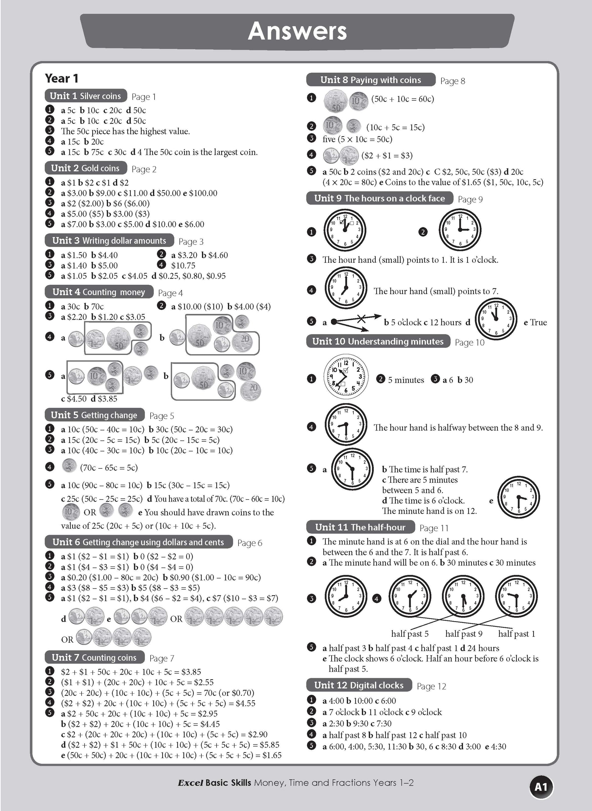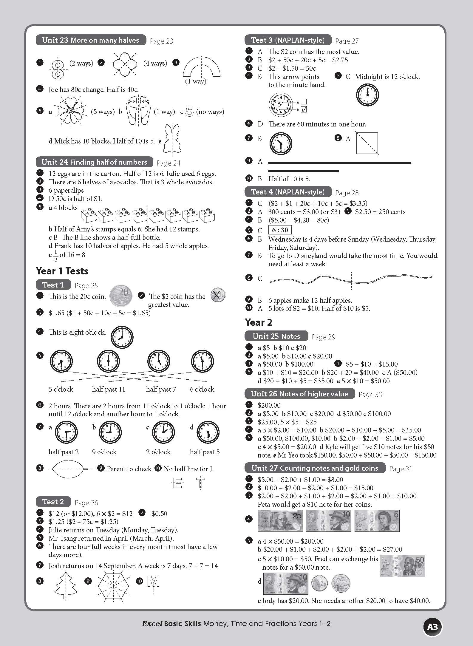 Excel Basic Skills Money, Time and Fractions Years 1–2 will help your child excel in the Australian Curriculum and NAPLAN topics of Money, Time and Fractions. Tips, explanations and numerous exercises are provided in each unit to ensure your child gains the necessary mastery of these important syllabus areas. Upon completing the book, your child will feel confident in these topics.