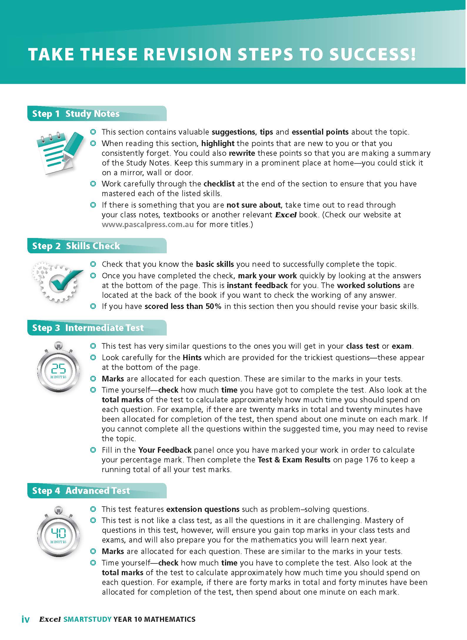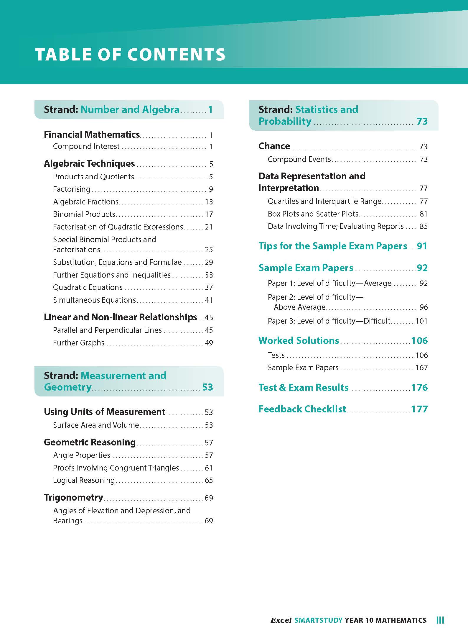 The Excel Smartstudy - Mathematics Year 10 Book has been designed to help students revise for class tests, half-yearly and end-of-year exams. It is structured to consolidate students' understanding in line with Australian Curriculum outcomes.