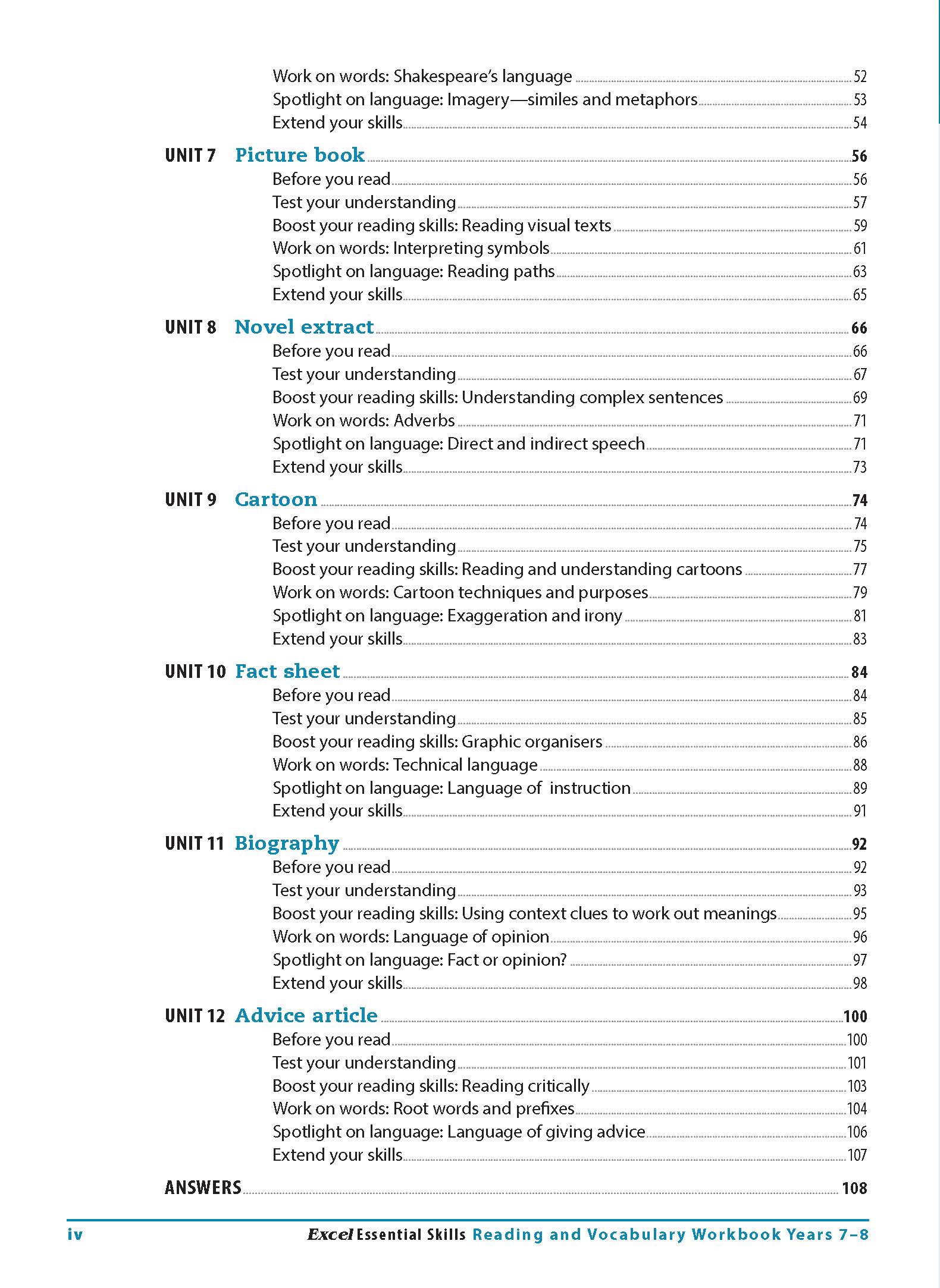 Excel Essential Skills - Reading and Vocabulary Workbook Years 7-8