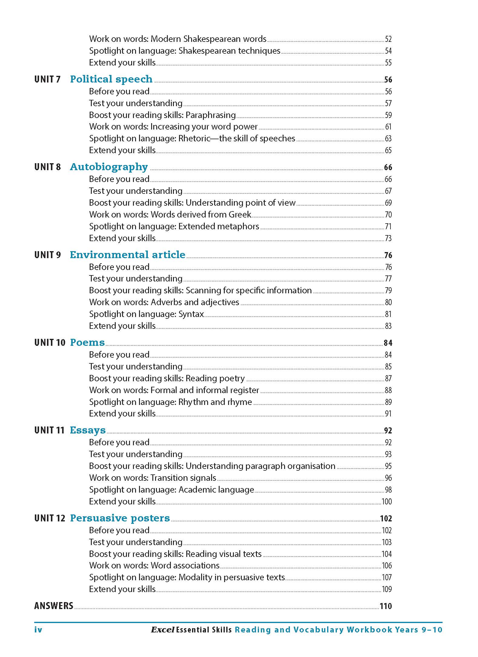 Excel Essential Skills - Reading and Vocabulary Workbook Years 9-10