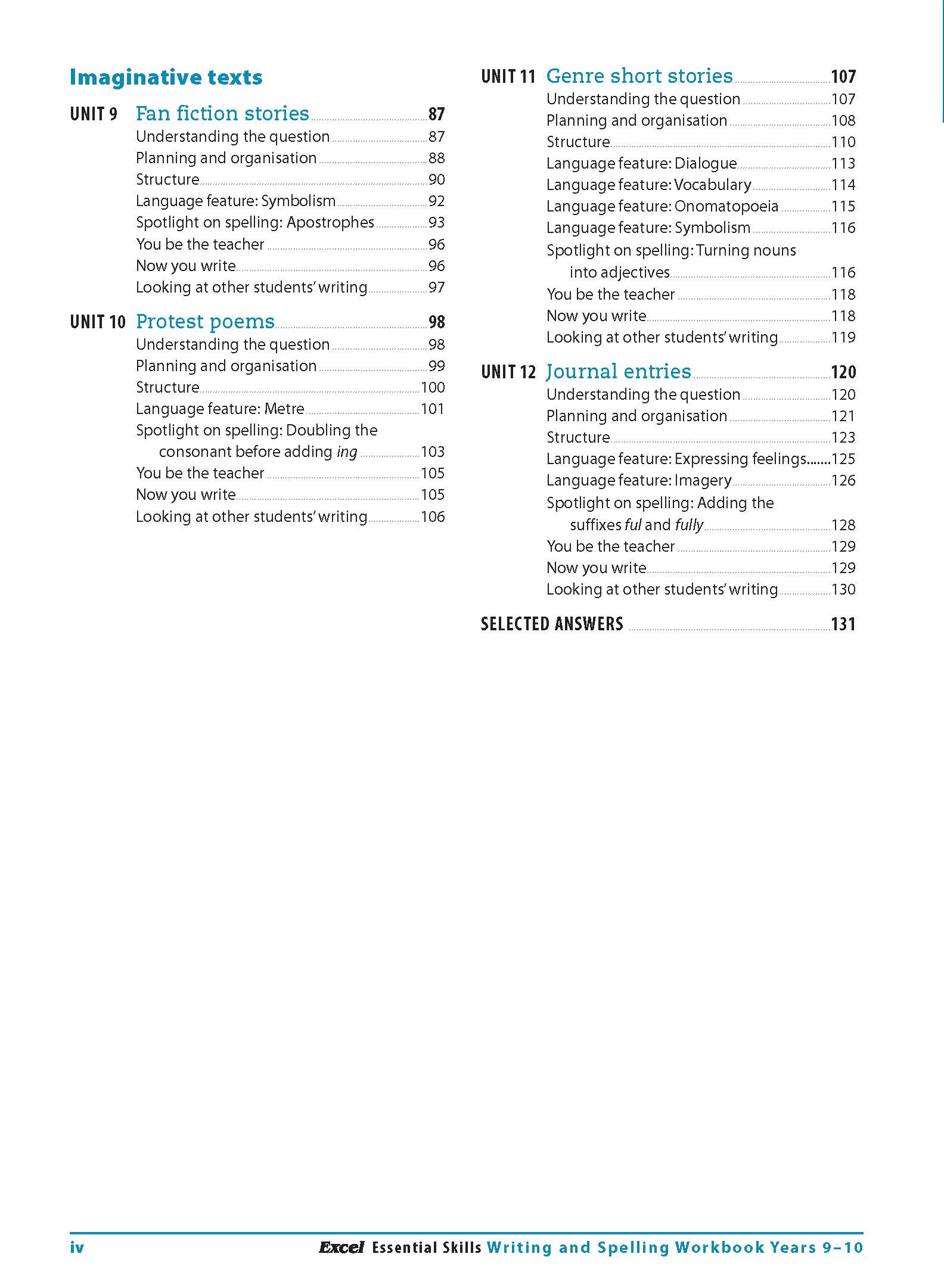 Excel Essential Skills - Writing & Spelling Workbook Years 9-10