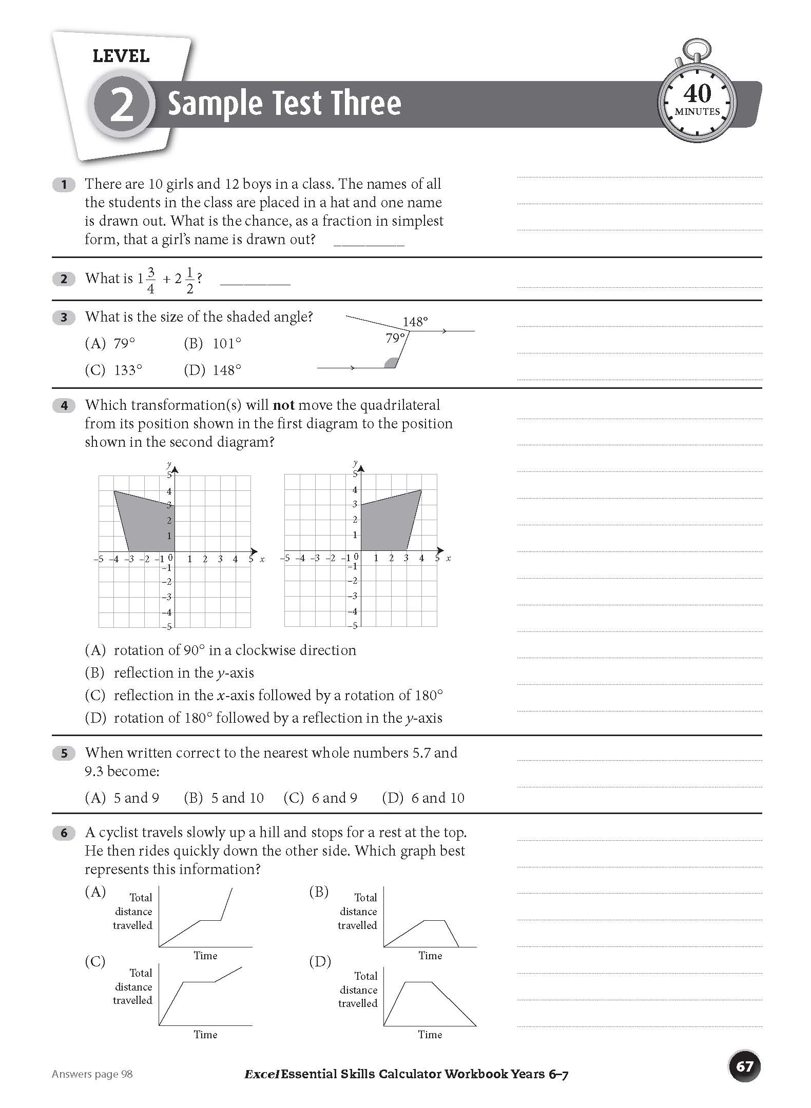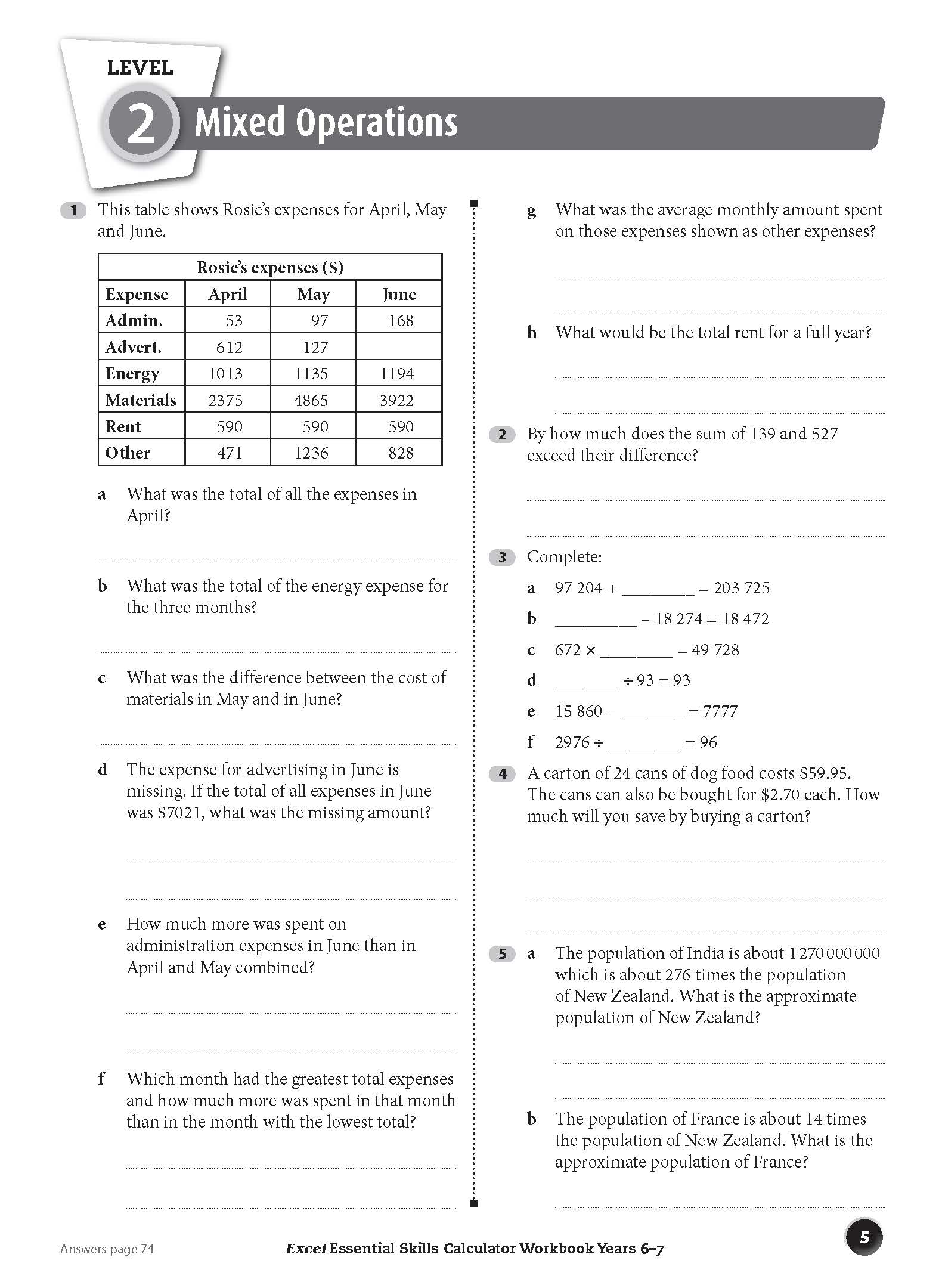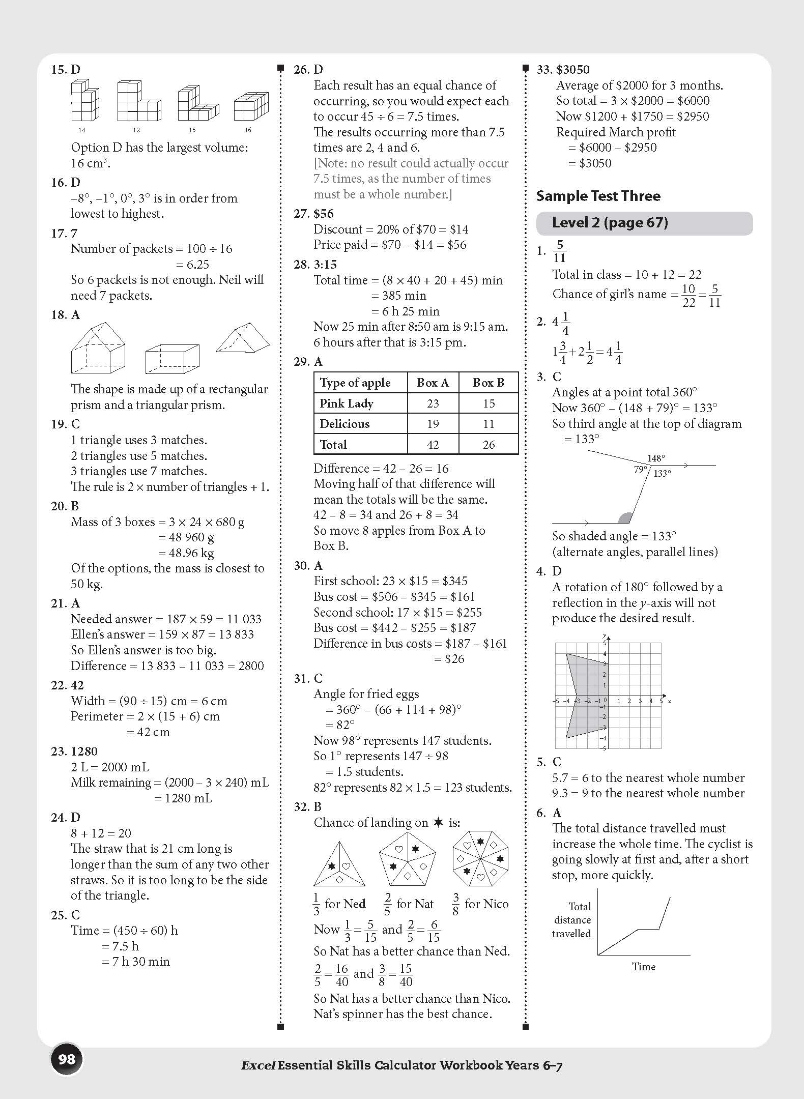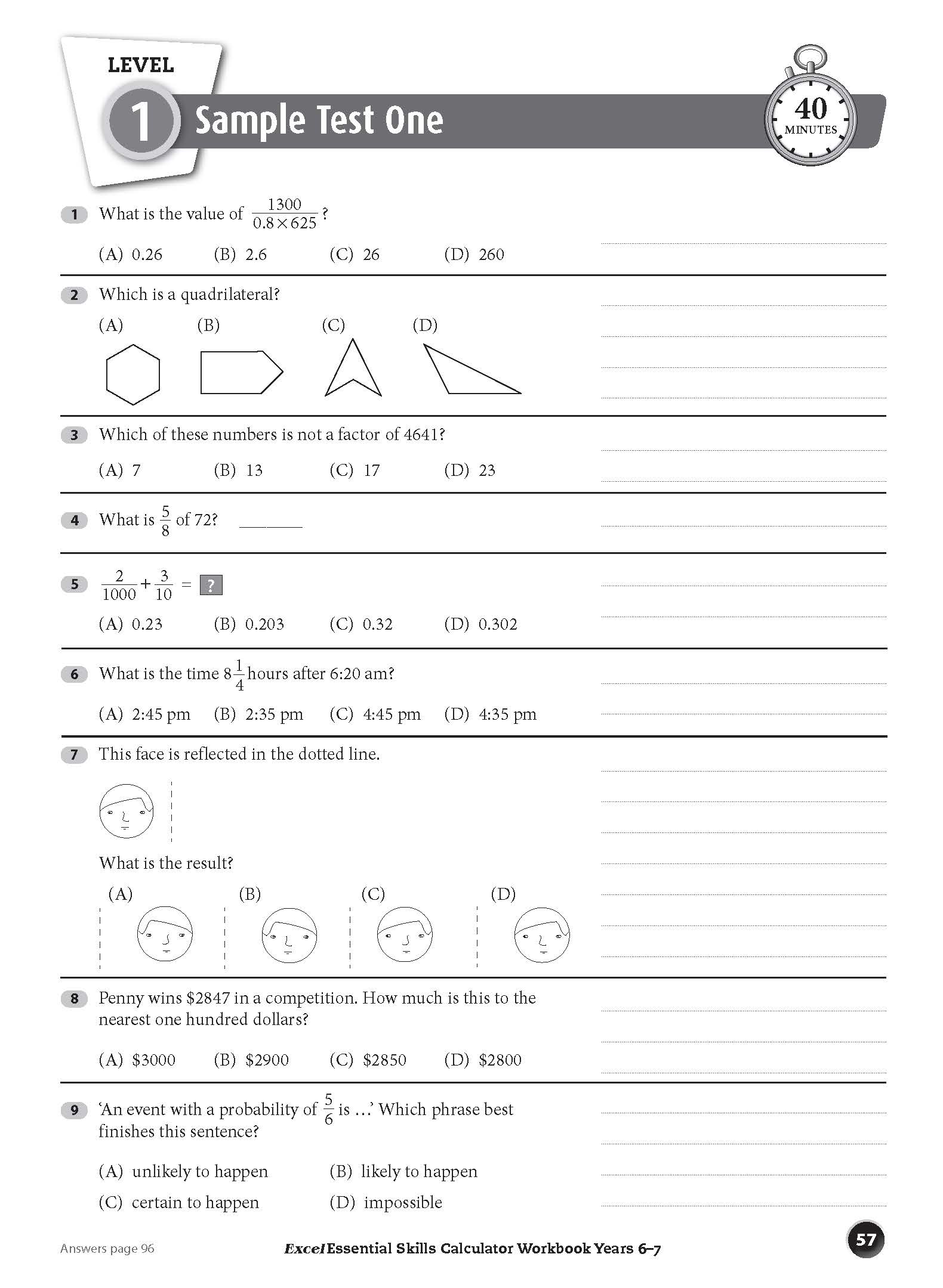 Excel Essential Skills Calculator Workbook Years 6 - 7 has been specifically written for Year 6 and Year 7 Australian Curriculum Mathematics with a focus on improving numeracy skills. It features questions that a student should be able to answer with the use of a calculator in topics such as addition, subtraction, multiplication, division, fractions, decimals and percentages. The book will also encourage the application of strategies from these topics in questions from the following strands of the syllabus: Measurement and Geometry, and Statistics and Probability.