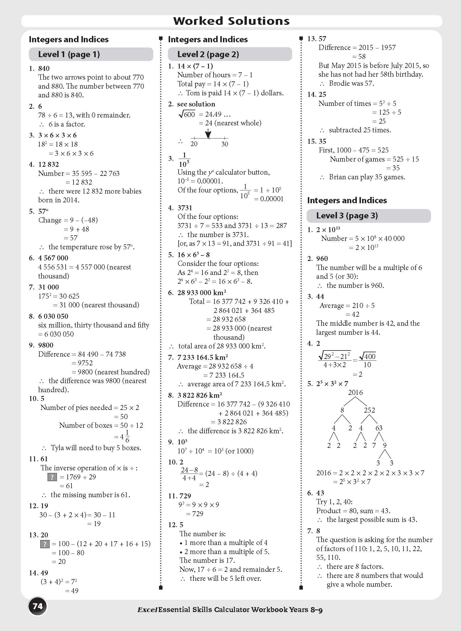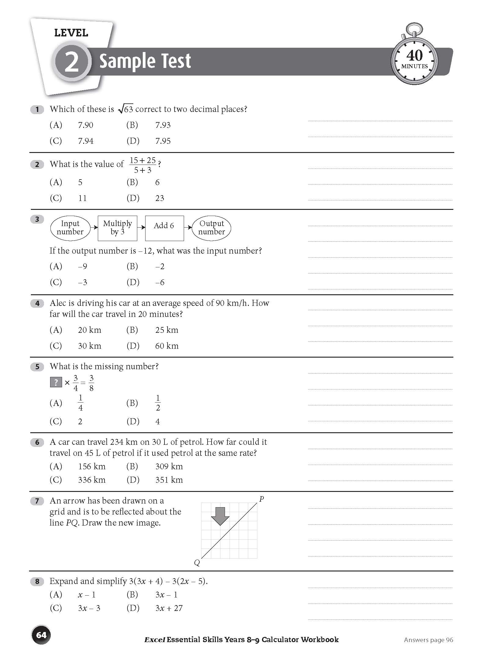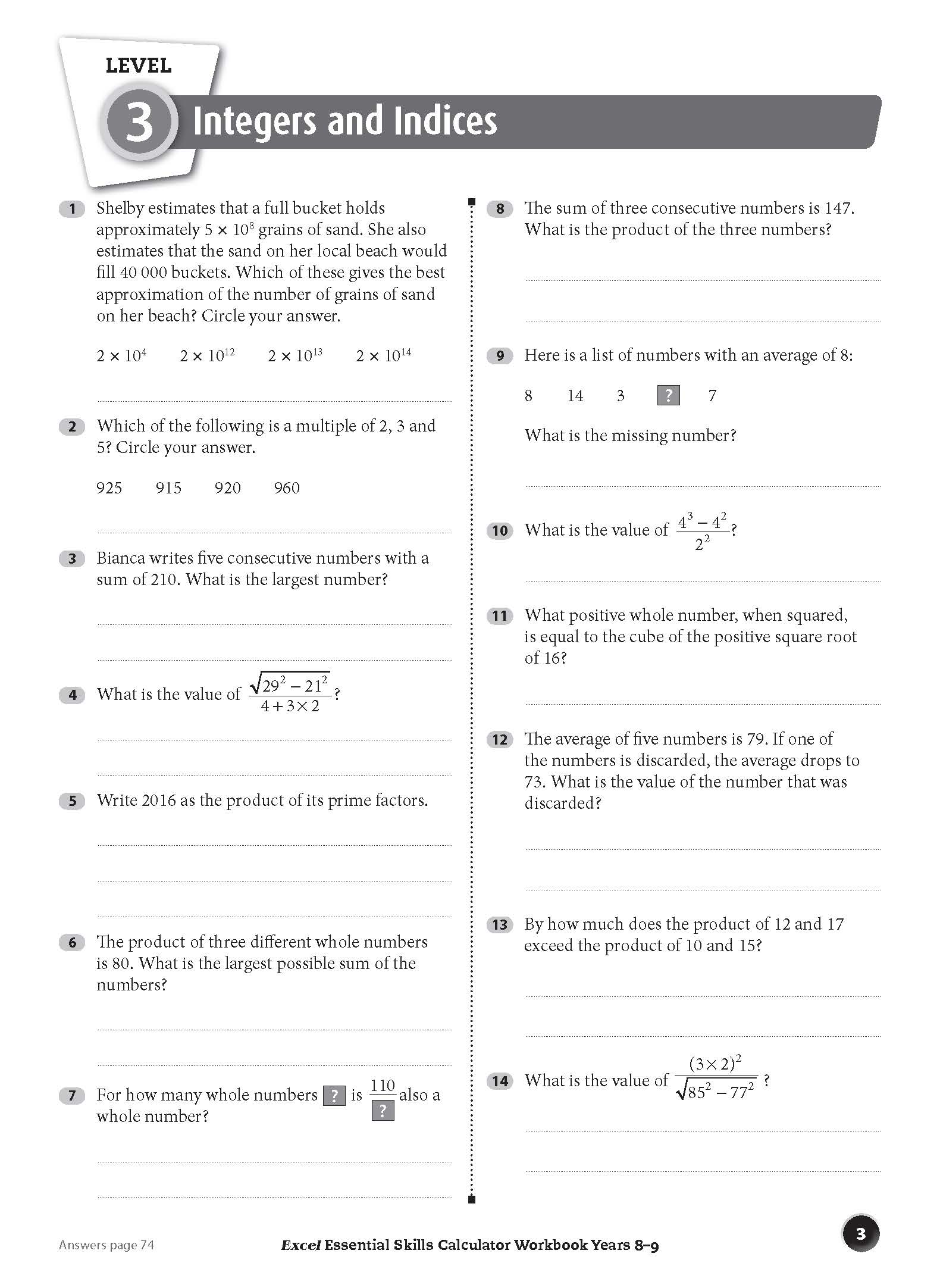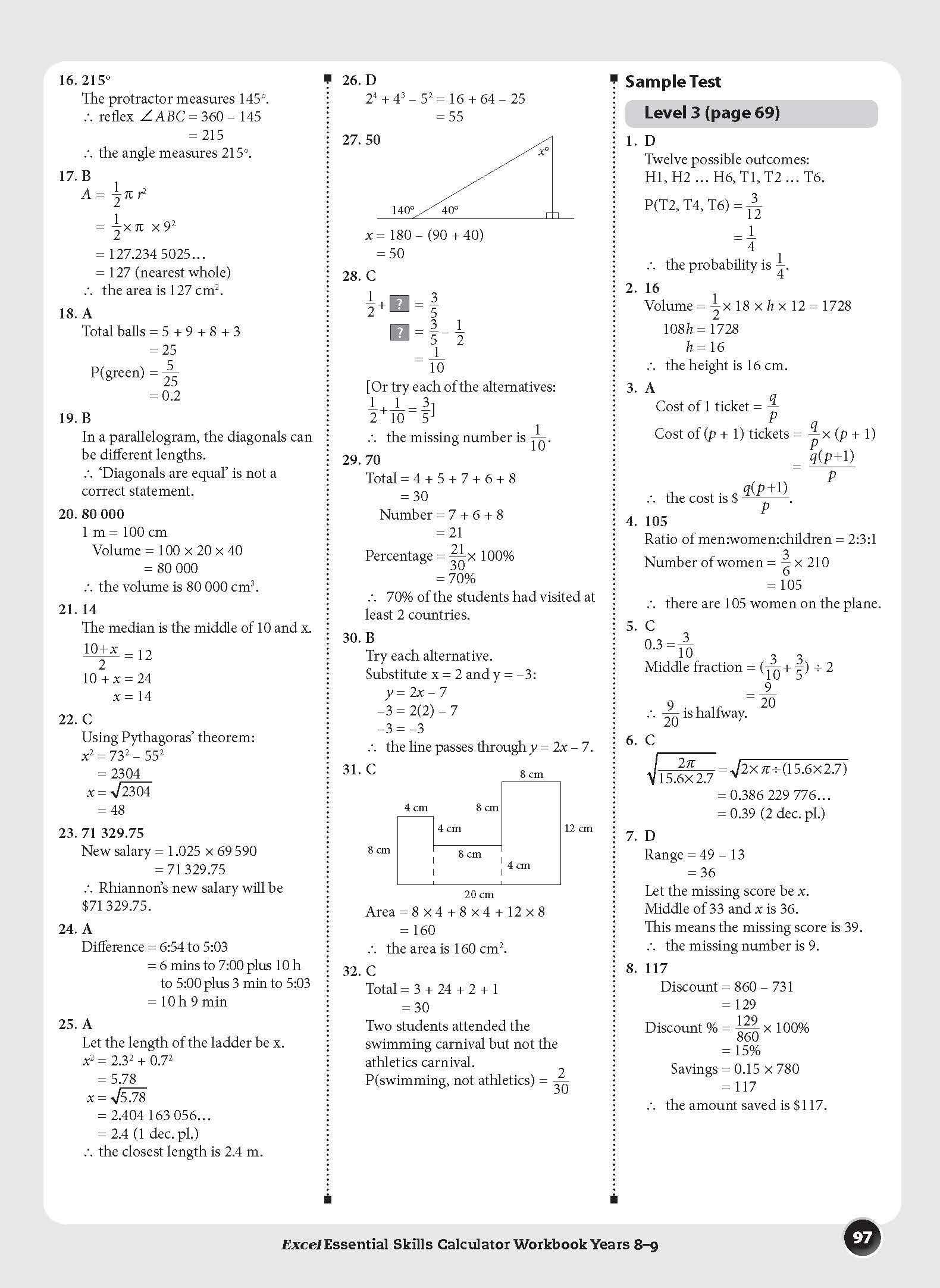The Excel Essential Skills Calculator Workbook Years 8 - 9 has been specifically written for Year 8 and Year 9 Australian Curriculum Mathematics with a focus on improving numeracy skills. It features questions that will test students numerical, algebraic, spatial, graphical and statistical concepts and skills. Questions are designed to be completed with the use of a calculator and will provide pportunities for skills development in the topics of fractions, decimals, percentages and integers. The book is divided into units of work from the Number and Algebra, Measurement and Geometry, and Statistics and Probability strands.