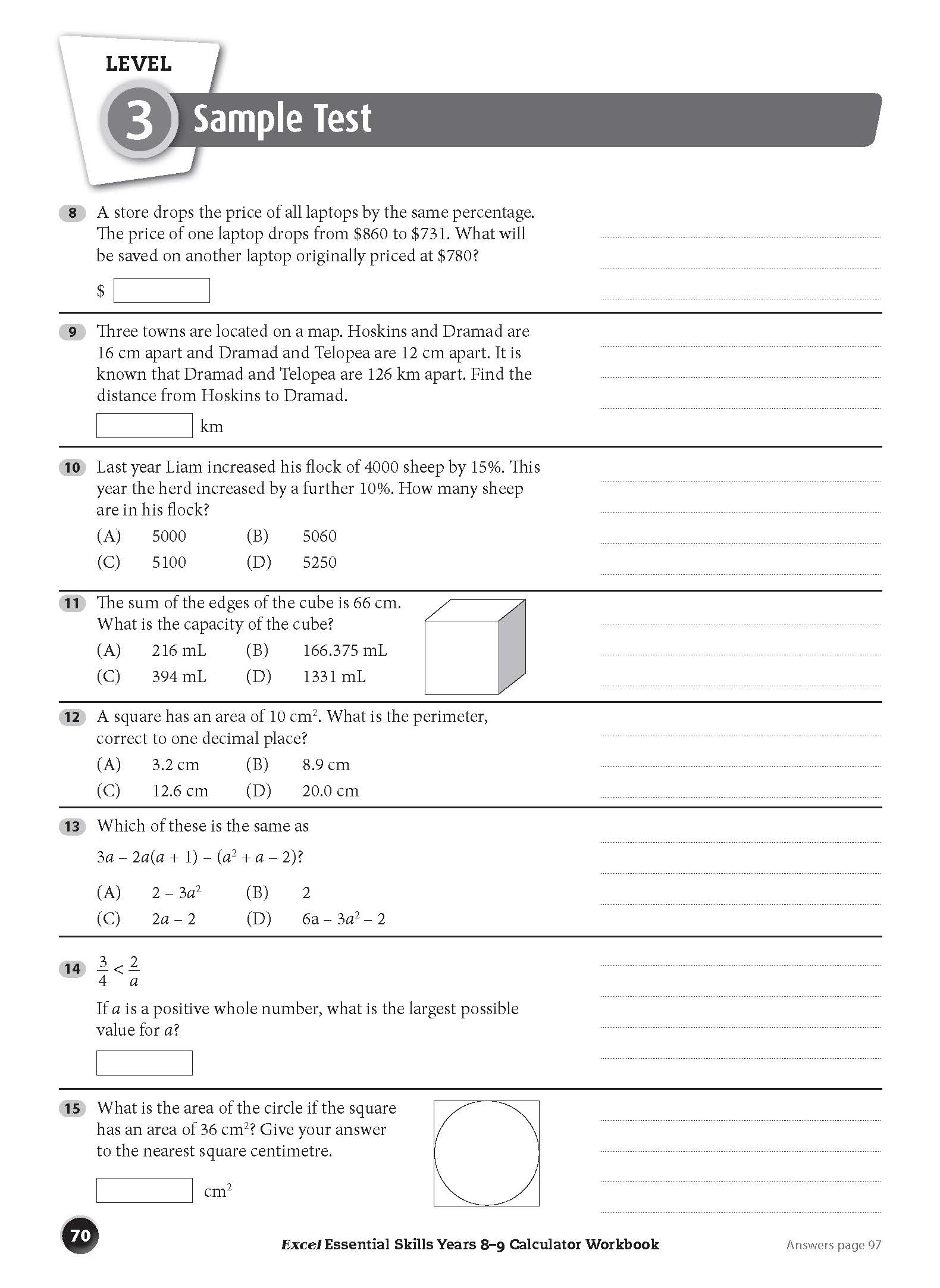 This is easy to use. Broken into six test papers in the different subject fields. Great opportunity for younger students to experience NAPLAN style questioning. Answers are provided and explanations to help improve understanding for future improvement.