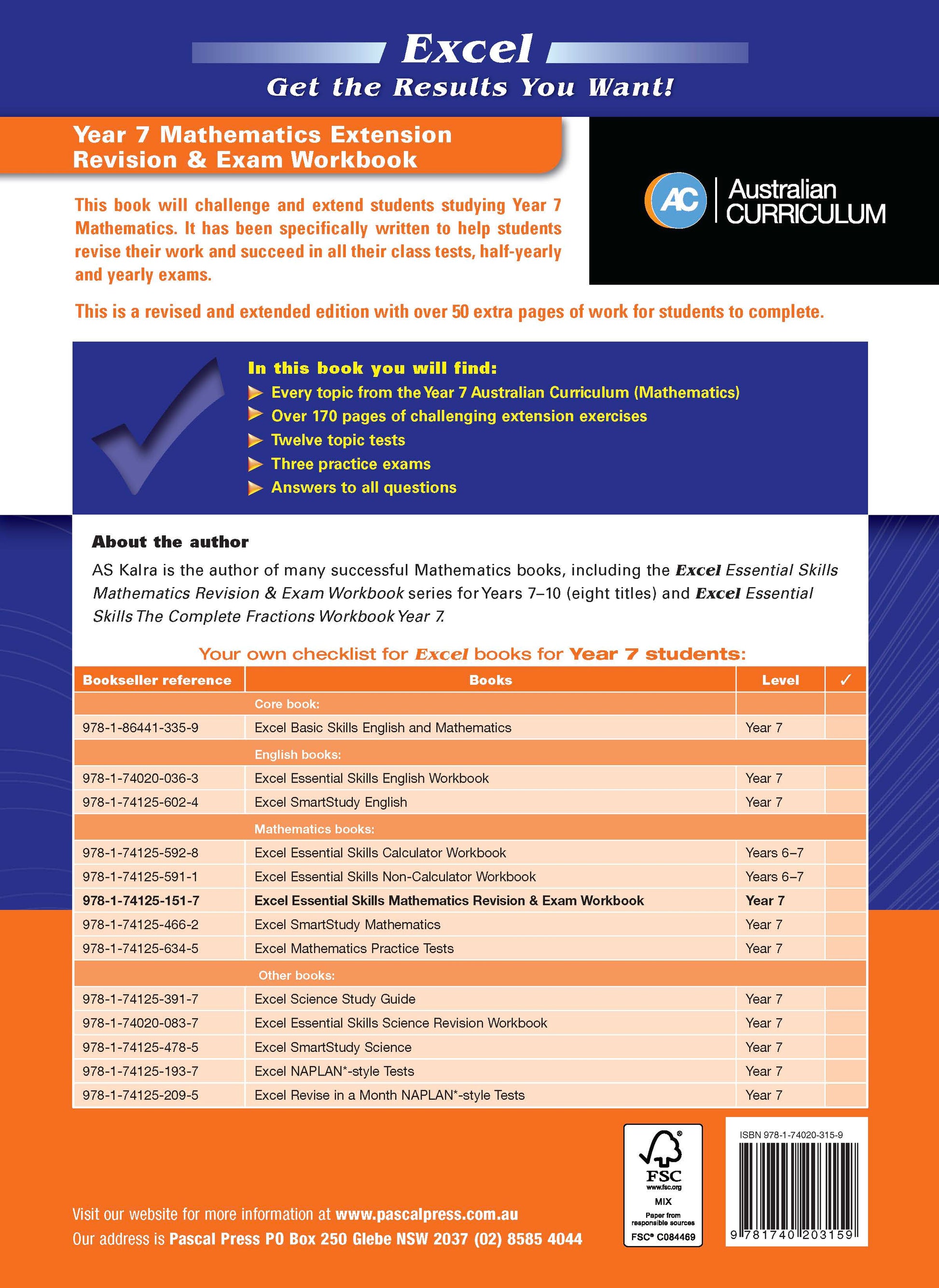 In Excel Mathematics Revision Exam Workbook 2 Year 7 you will find: