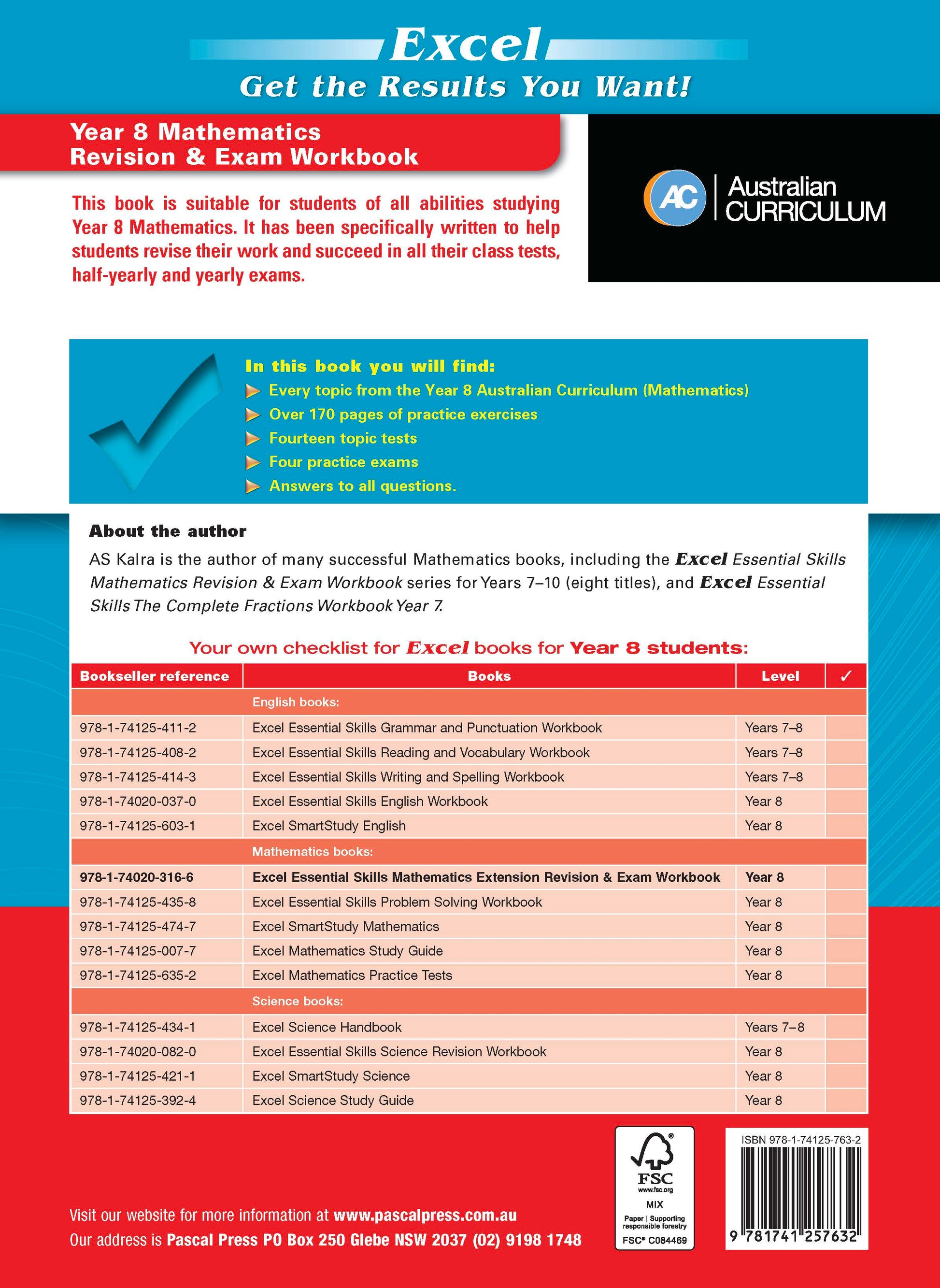 This is the brand-new Australian Curriculum Edition—a revised and extended edition with over fifty extra pages of work for students to complete. This book is suitable for students of all abilities studying Year 8 Mathematics. It has been specifically written to help students revise their work and succeed in all their class tests, half-yearly and yearly exams.