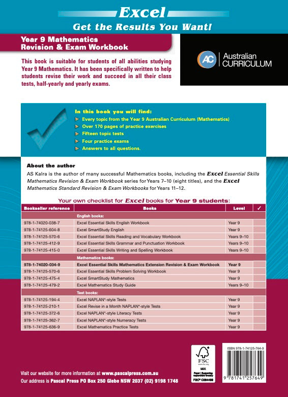 This book is suitable for all students studying Year 9 Mathematics. It has been specifically written to help students revise their work and succeed in all their class tests, half-yearly and yearly exams. This is the brand-new Australian Curriculum Edition—a revised and extended edition with over fifty extra pages of work for students to complete.