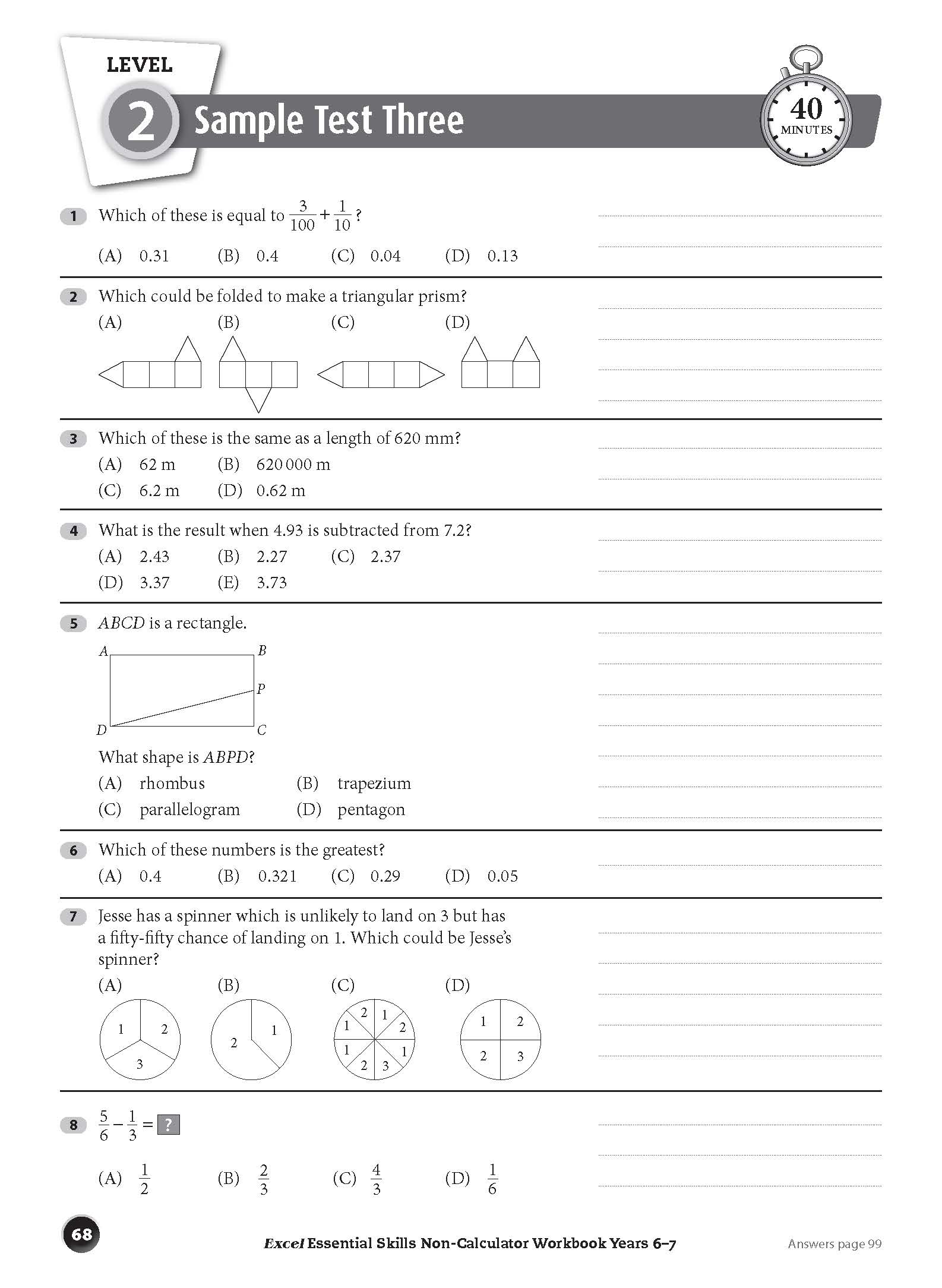 This is easy to use. Broken into six test papers in the different subject fields. Great opportunity for younger students to experience NAPLAN style questioning. Answers are provided and explanations to help improve understanding for future improvement.