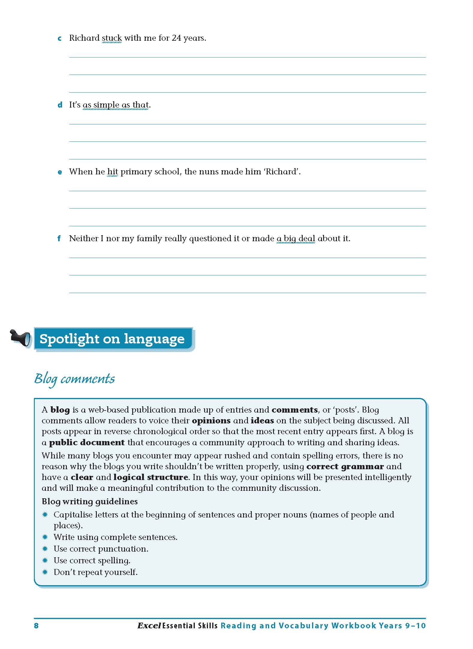 Specifically written for the Years 9–10 Australian Curriculum English course, this book will help students become better readers. Practical examples and sample texts will develop students’ reading and comprehension skills, and improve their understanding of the language and literary techniques that writers use to achieve a particular purpose for a particular audience.