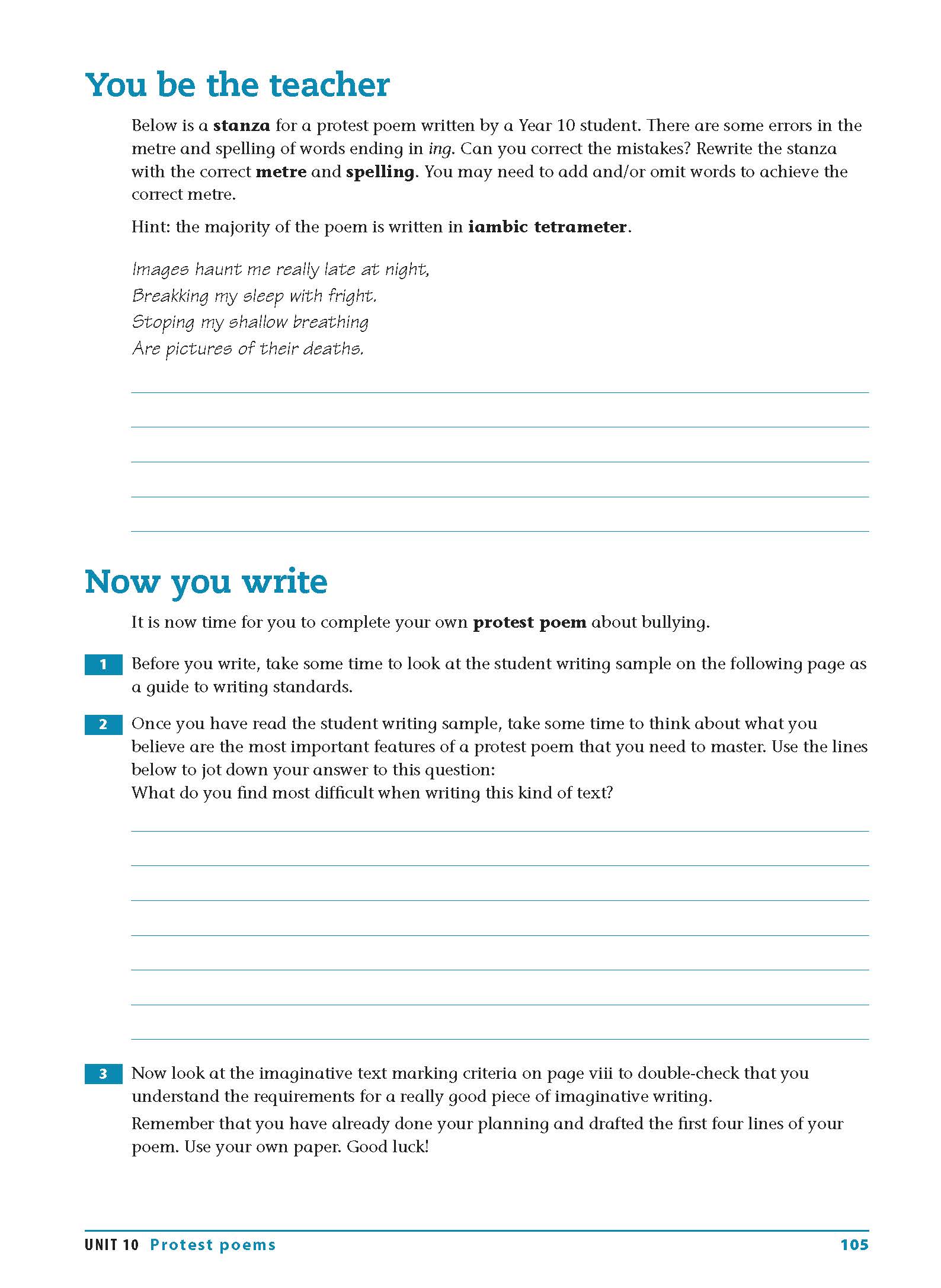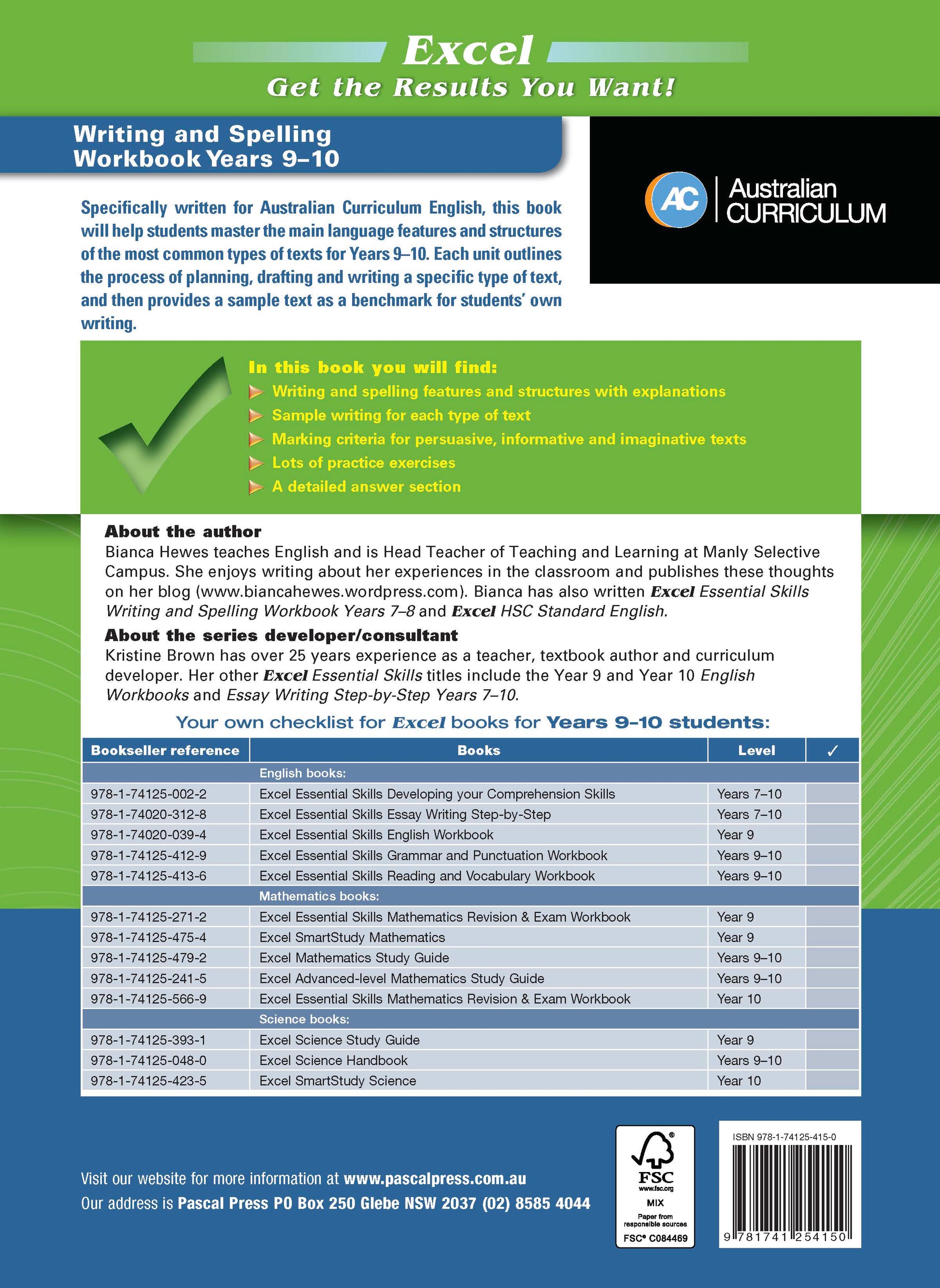 Specifically written for the Australian Curriculum English course, this book will help students master the main language features and structures of the most common types of texts for Years 9–10. Each unit outlines the process of planning, drafting and writing a specific type of text, and then provides a sample text as a benchmark for students’ own writing.