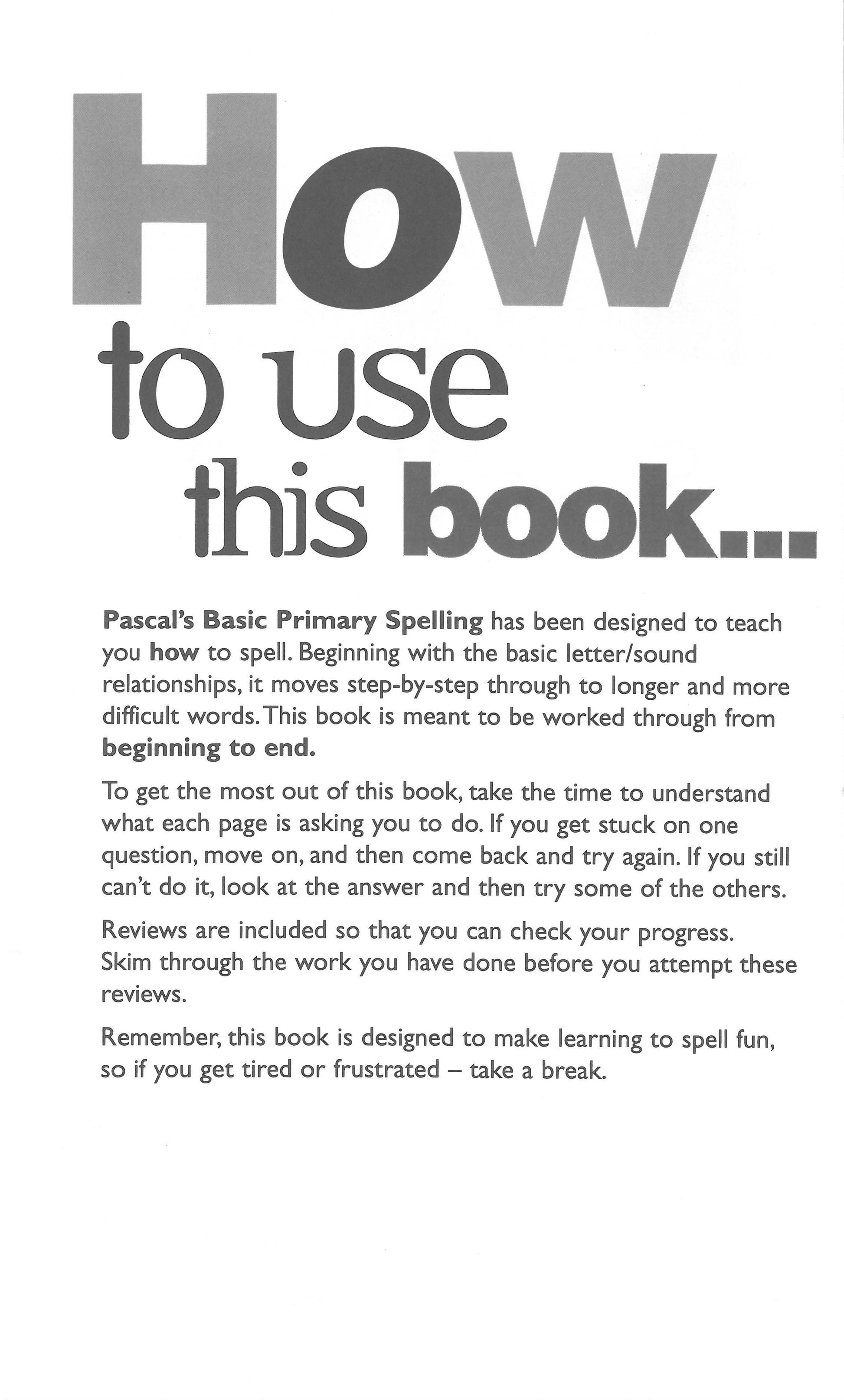 Pascal's Basic Primary Spelling Years 1–4 shows students how to master the basic letter/sound relationships that are the foundation of good spelling.