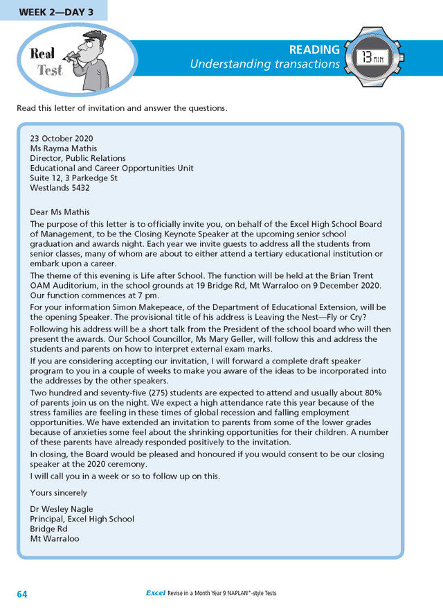 Excel Revise in a Month Year 9 NAPLAN*-style Tests includes: