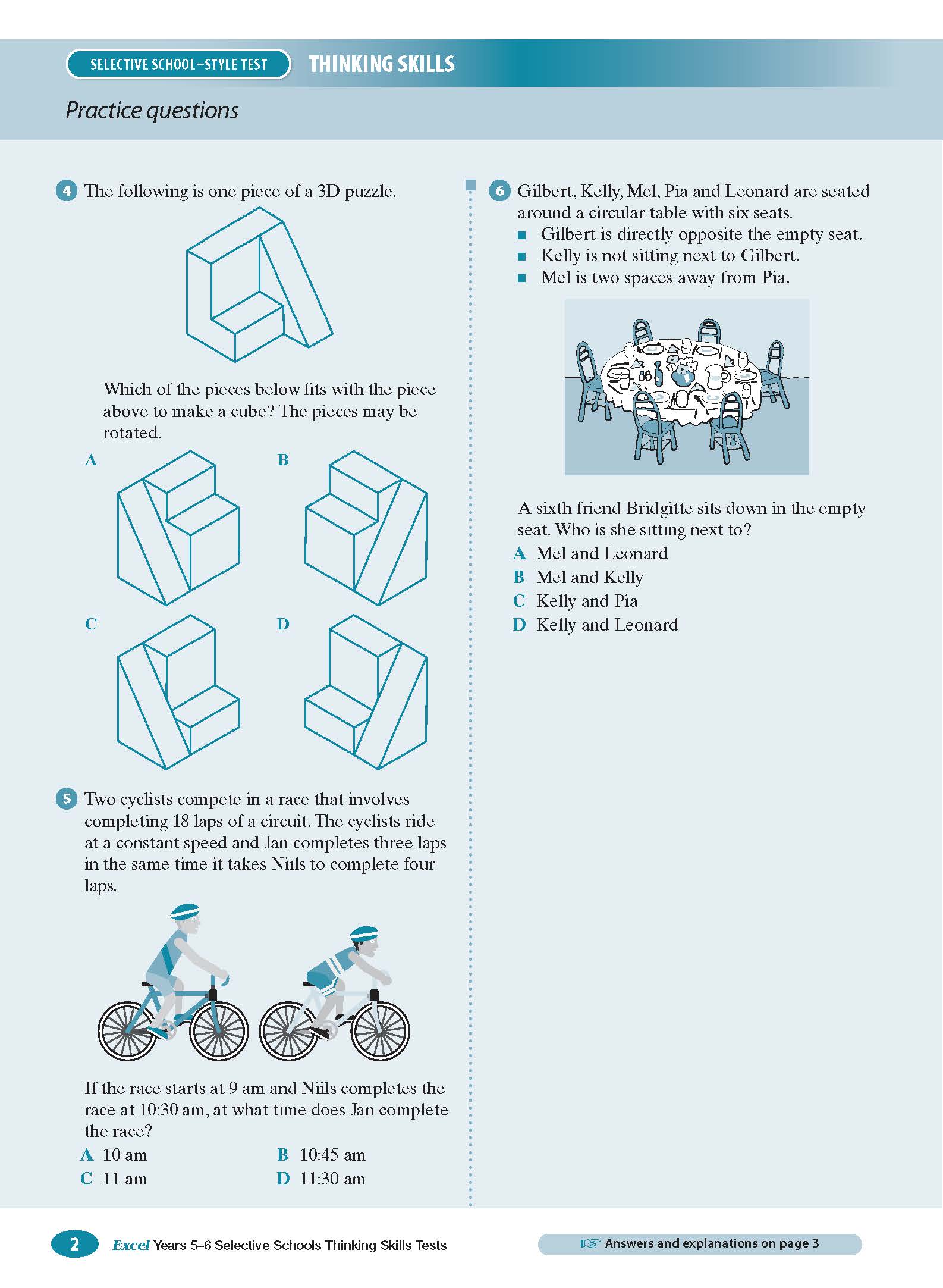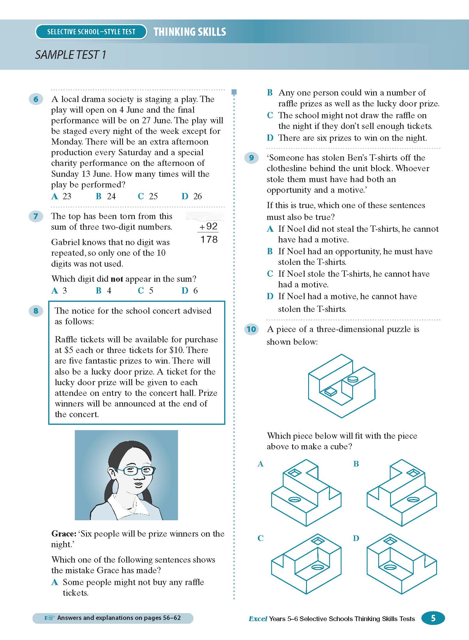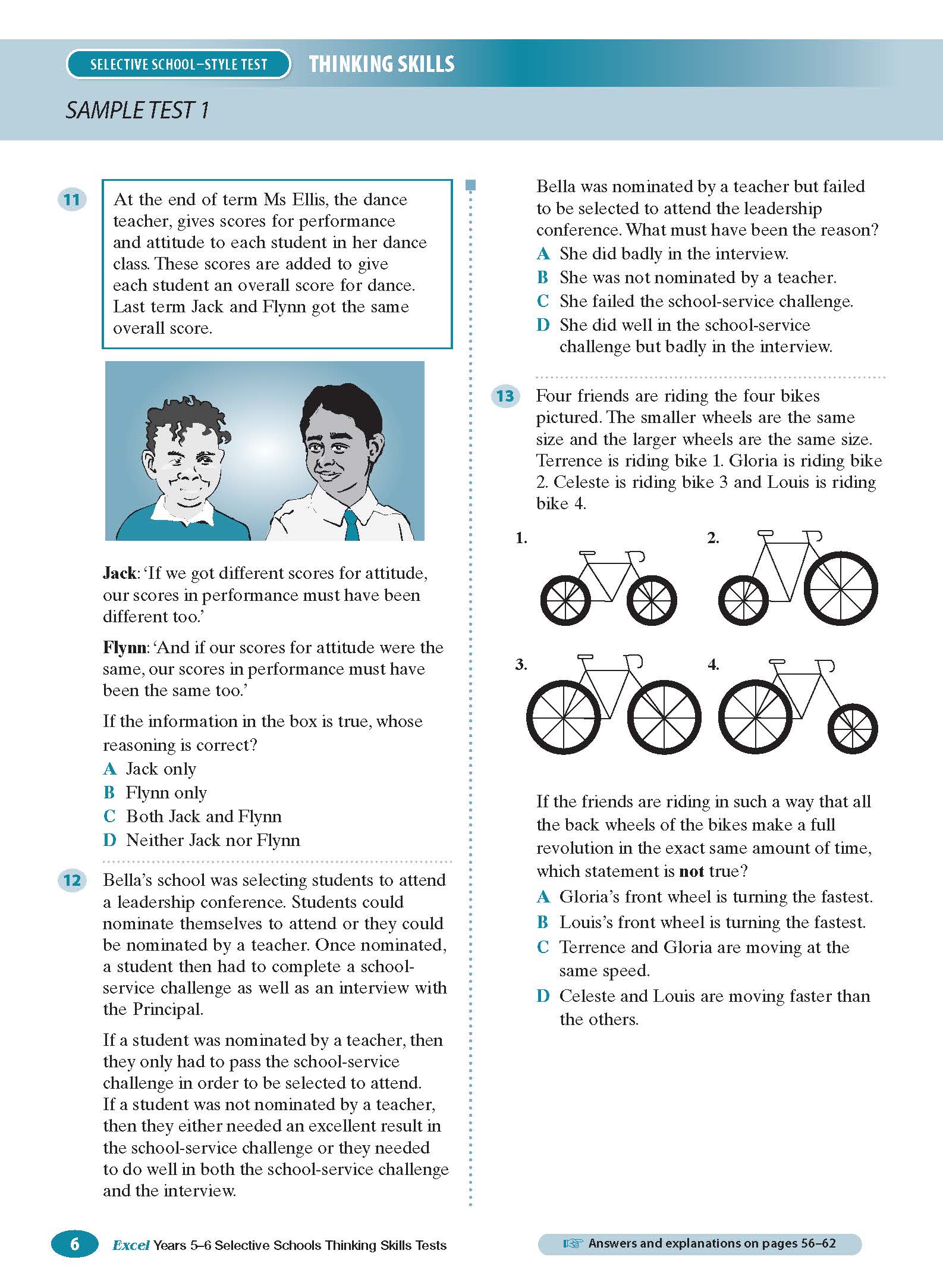 Excel Selective Schools Thinking Skills Tests Years 5-6 is a comprehensive study guide for the Thinking Skills part of the Selective Schools and Scholarship Tests. This title includes practice questions with helpful hints on tackling Thinking Skills questions