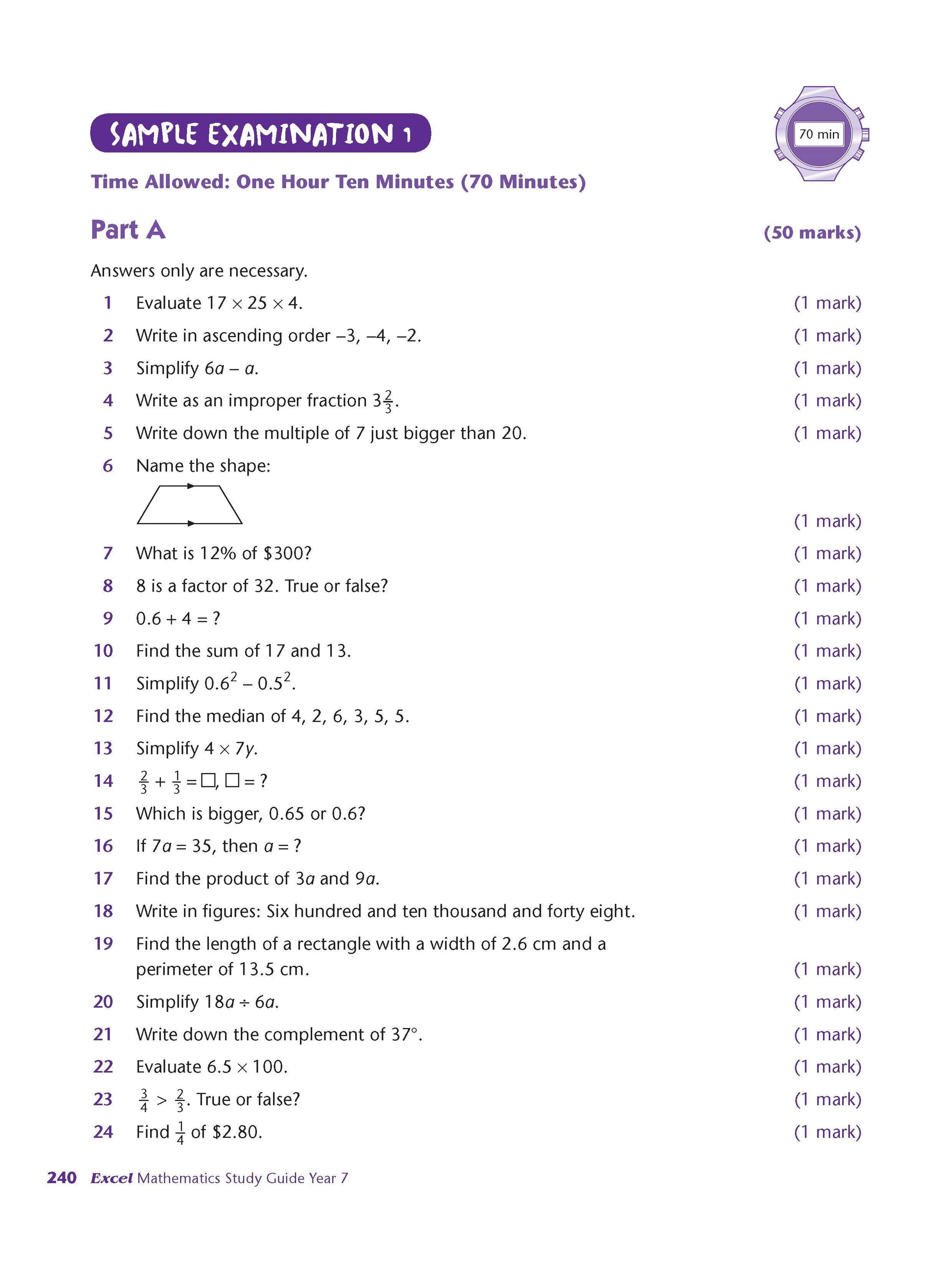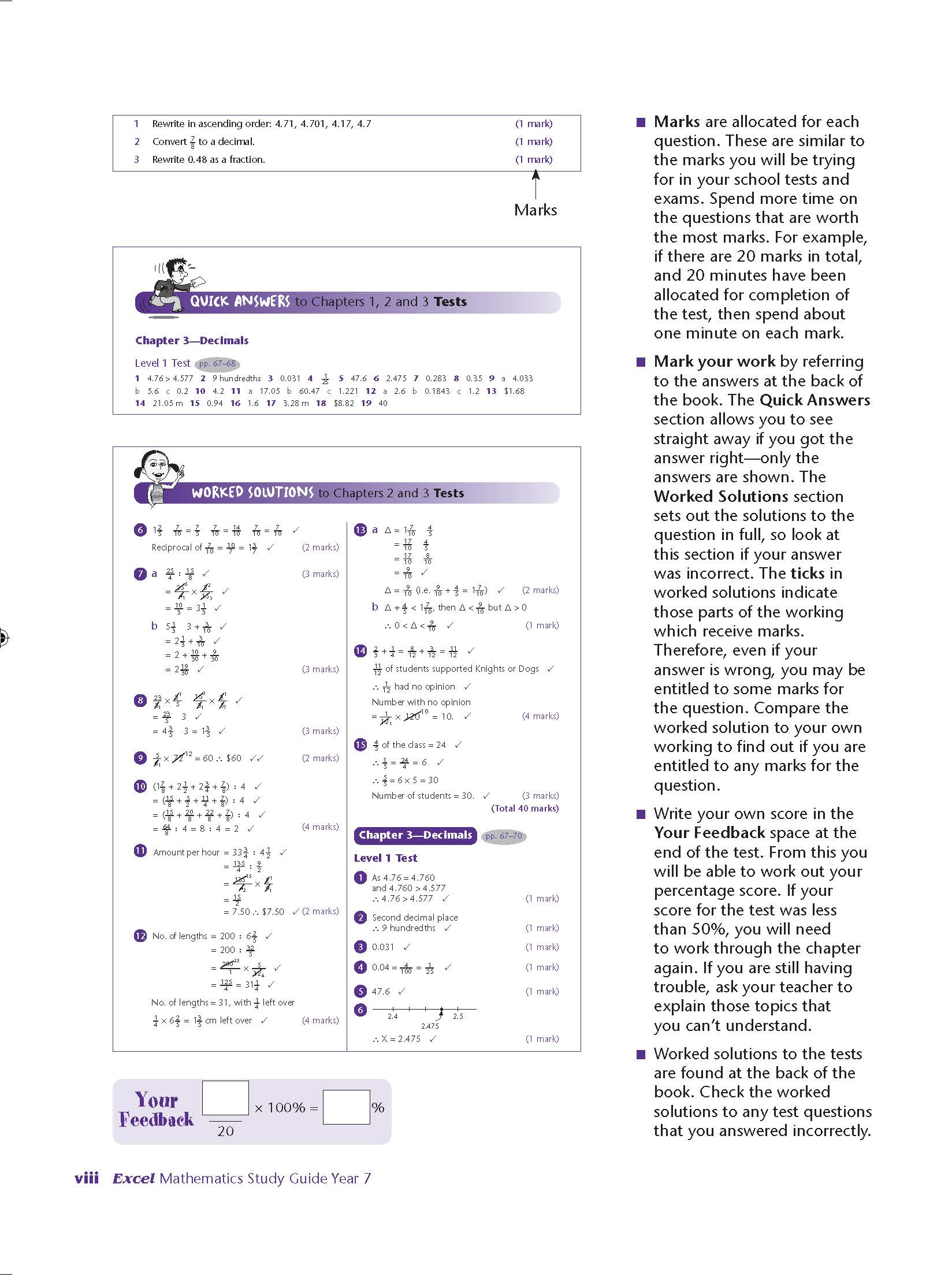 Excel Mathematics Study Guide Year 7 contains: